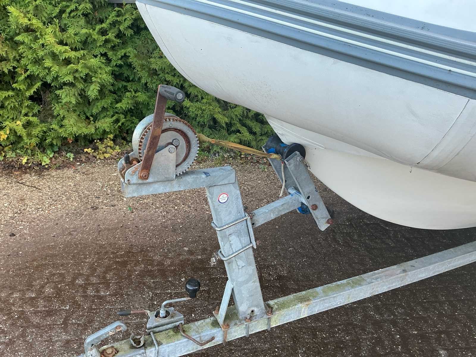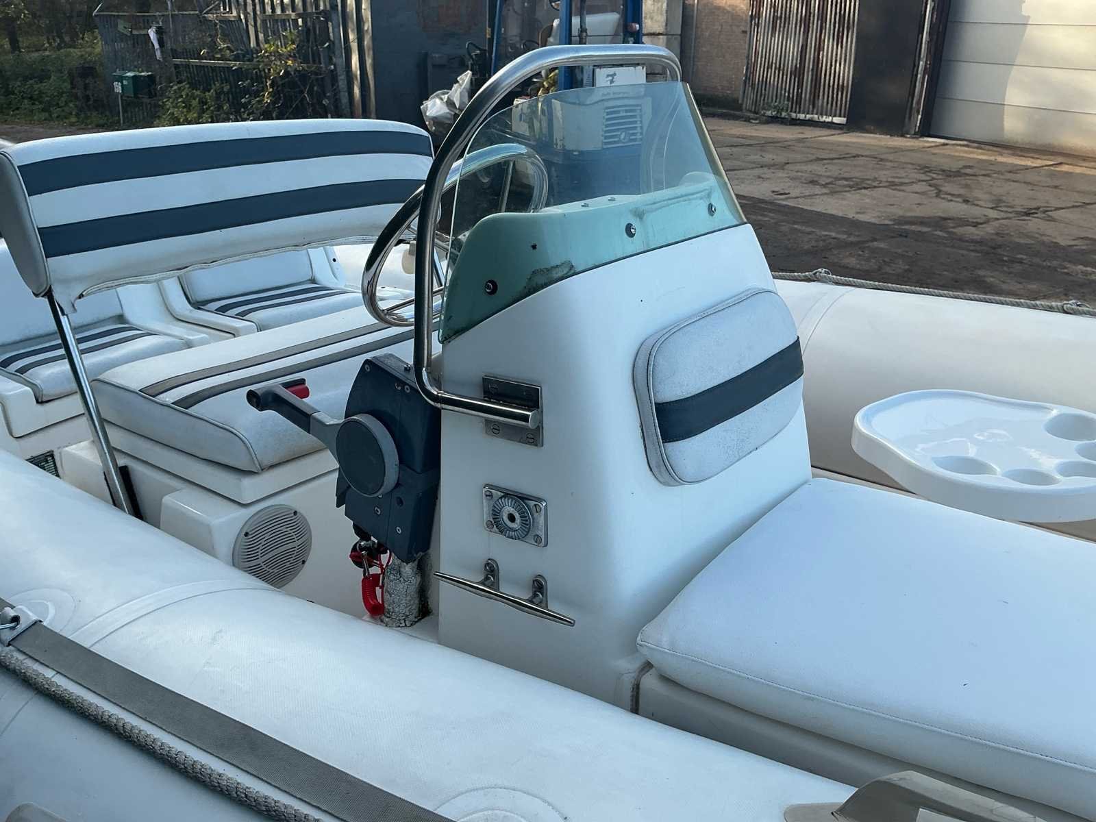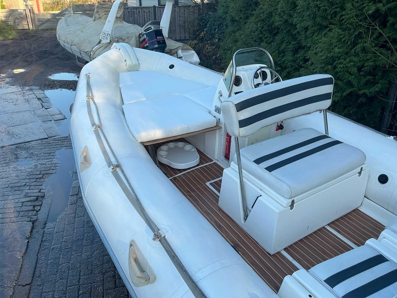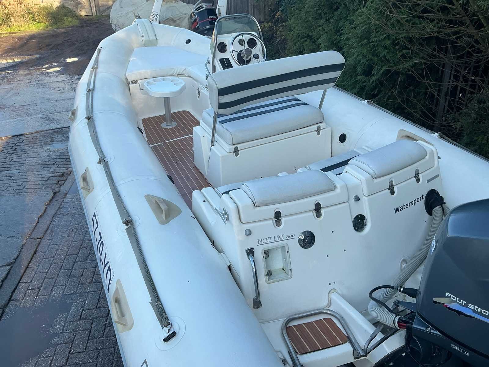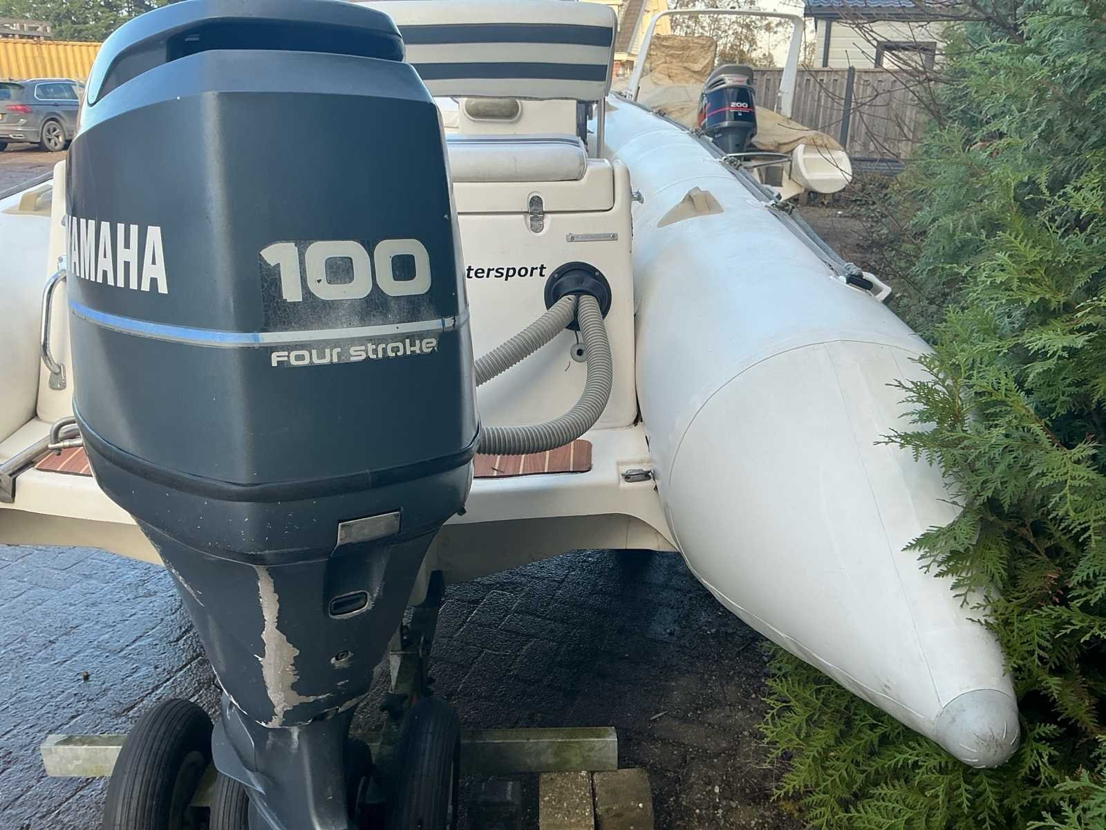 100pk Yamaha 4 takt Elektrische start Elektrische Powertrim Lengte over alles 6M Teak (look) inleg Zwemtrap Ruim zonnedek Tafel Interne bezinetank Radio + boxen (werking onbekend) Zelflozende kuip Afdekzeil Diverse tellers Vaste benzinetank Stallingstrailer Pomp Topsnelheid +-60kmph Nee Merk: Zodiac Type: Yacht Line 600 Rompmateriaal: Polyester Brandstof: Benzine