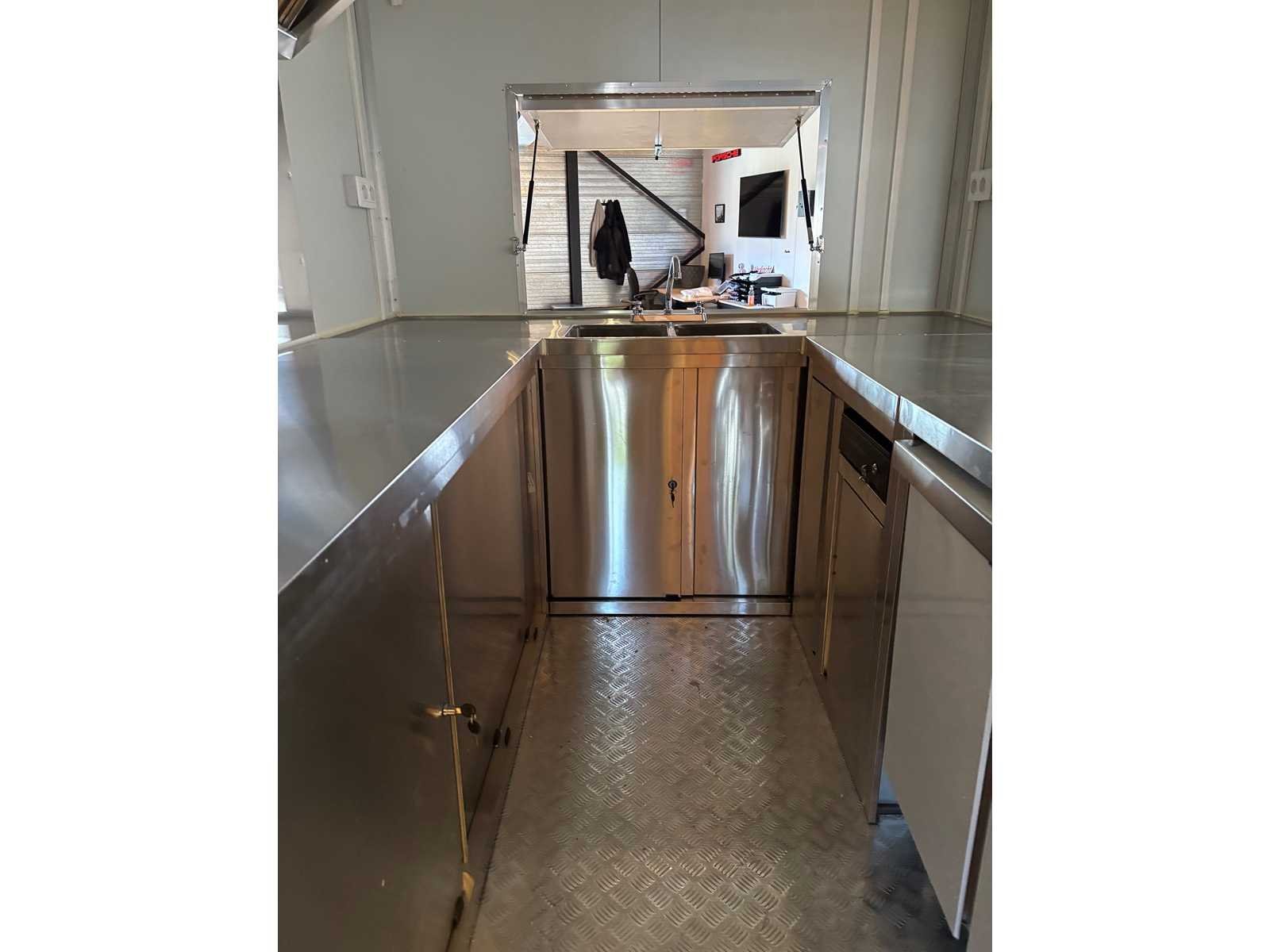 Lengte: 280cm Breedte: 200cm Hoogte: 240cm Gewicht: 675kg Max: 750KG Dubbele wasbak kraan ,vuil/schoon watertank met opvoerpomp Aluminium antislip vloer Geaarde stopcontacten 230v (eu standaard) Zekeringkast Ledverlichting binnen Stablilisatie poten kassalade Koel/ vrieskast Afzuigkap Nieuw! Nee Merk: Tune Type: Boxtrailer Model: Foodtruck Bouwjaar: 2025 Aantal assen: 1