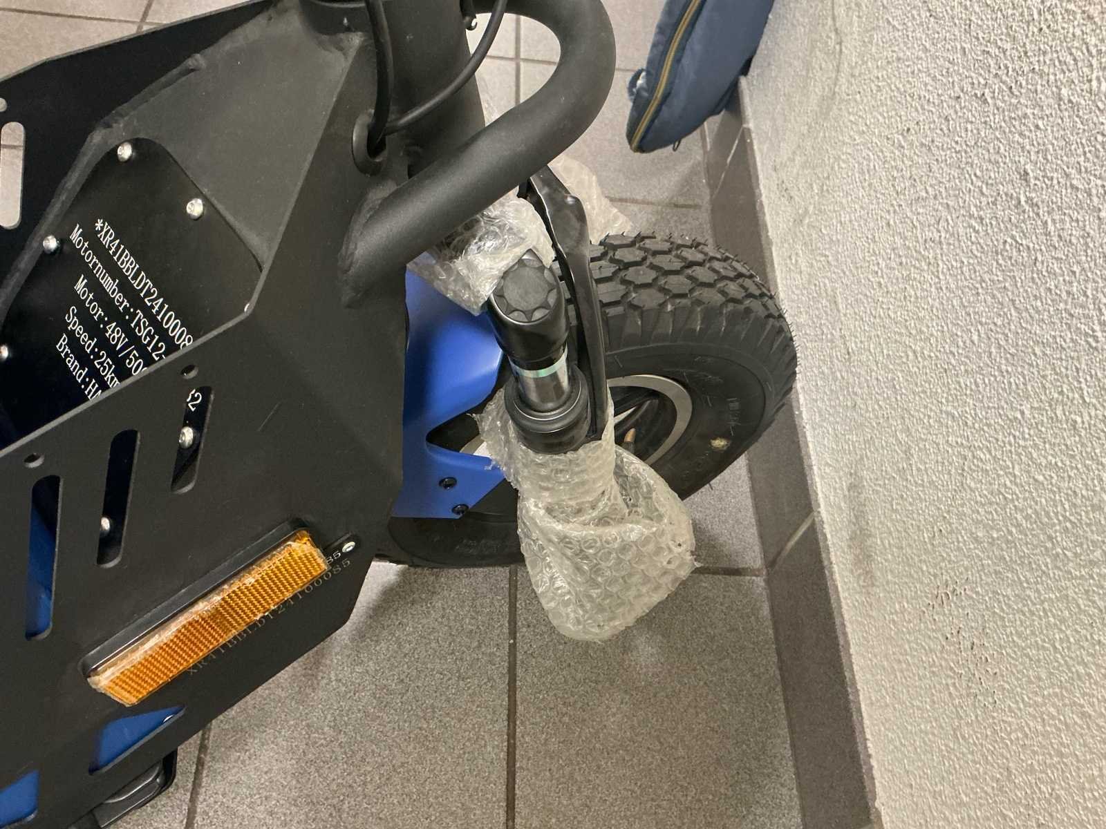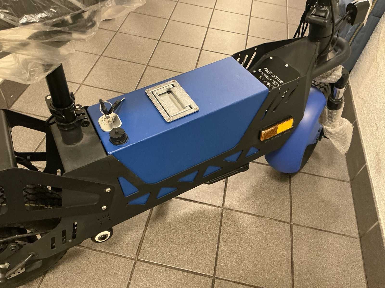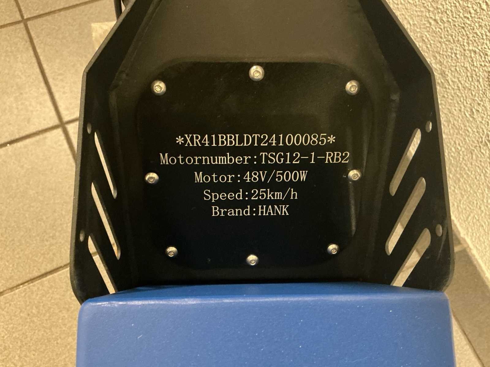 HANK e-Scoot Fabrikant: Hanksconcept Model: HANK Categorie: L1e-A / PMR (afhankelijk van keuring) Type voertuig: Compact elektrische e-scoot Afmetingen & Gewicht Lengte (zonder nummerplaat): 117 cm Lengte (met nummerplaat): 123 cm Hoogte (zonder zadel): 40,5 cm Hoogte (met zadel): 64 cm Breedte frame: 15 cm Breedte zadel: 17 cm Gewicht voertuig: 25 kg Gewicht accu: 13 kg Gewicht totaal: 38 kg Bandenmaat: 12 inch Bandbreedte achter: 8,5 cm Bandbreedte voor: 7,5 cm Elektrische Specificaties Motorvermogen: 500 W Motortype: Borstelloze DC-motor (Brushless) Batterijtype: Lithium-ion Batterijcapaciteit: 48V / 30Ah Laadtijd: max. 6 uur Maximale actieradius: tot 100 km Cruisecontrol: Ja Achteruitrijfunctie: Ja Prestaties Maximale snelheid: 25 km/h Maximale hellingshoek: 15° Geluidsniveau: n.v.t. (elektrisch) Remmen, Veiligheid & Besturing Remsysteem: Schijfrem voor + schijfrem achter Verlichting: LED voor / achter (ECE-compatibel) Accubeveiliging: BMS met bescherming tegen overvoltage, undervoltage, overtemperatuur Aandrijving: Direct-drive elektrisch Overige kenmerken • Compact ontwerp • Uitneembare accu • Vering voorvork en zadel • Kentekenhouder achter voor L1e-registratie • Duurzaam frame (staal/aluminium combinatie) Geschikt voor • PMR / mobiliteitsondersteuning (max 25 km/h) • Hotelverhuur (dagverhuur) • Stadsvervoer • Recreatief gebruik • EU-MDR registratie • L1e-A keuring (met individual approval) OEM- en Certificeringsopties • UNECE R75 (banden) • UNECE R78 (remsysteem) • UNECE R50 (verlichting) • UNECE R10 (EMC-test) • CE / EMC documentatie beschikbaar • Batterij voldoet aan UN38.3 transportnorm Nee Merk: HANK Kleur: Blauw/zwart Bouwjaar: 2025 Snelheid: 25km/h