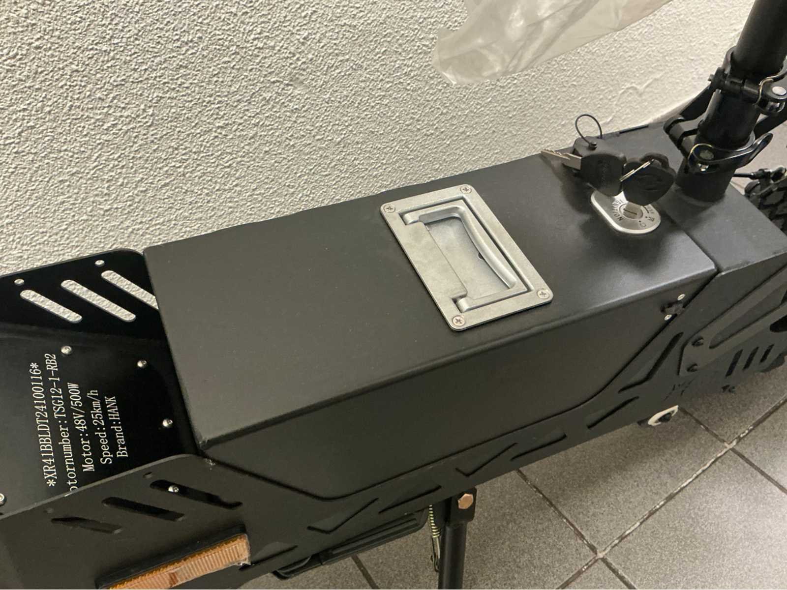 HANK e-Scoot Fabrikant: Hanksconcept Model: HANK Categorie: L1e-A / PMR (afhankelijk van keuring) Type voertuig: Compact elektrische e-scoot Afmetingen & Gewicht Lengte (zonder nummerplaat): 117 cm Lengte (met nummerplaat): 123 cm Hoogte (zonder zadel): 40,5 cm Hoogte (met zadel): 64 cm Breedte frame: 15 cm Breedte zadel: 17 cm Gewicht voertuig: 25 kg Gewicht accu: 13 kg Gewicht totaal: 38 kg Bandenmaat: 12 inch Bandbreedte achter: 8,5 cm Bandbreedte voor: 7,5 cm Elektrische Specificaties Motorvermogen: 500 W Motortype: Borstelloze DC-motor (Brushless) Batterijtype: Lithium-ion Batterijcapaciteit: 48V / 30Ah Laadtijd: max. 6 uur Maximale actieradius: tot 100 km Cruisecontrol: Ja Achteruitrijfunctie: Ja Prestaties Maximale snelheid: 25 km/h Maximale hellingshoek: 15° Geluidsniveau: n.v.t. (elektrisch) Remmen, Veiligheid & Besturing Remsysteem: Schijfrem voor + schijfrem achter Verlichting: LED voor / achter (ECE-compatibel) Accubeveiliging: BMS met bescherming tegen overvoltage, undervoltage, overtemperatuur Aandrijving: Direct-drive elektrisch Overige kenmerken • Compact ontwerp • Uitneembare accu • Vering voorvork en zadel • Kentekenhouder achter voor L1e-registratie • Duurzaam frame (staal/aluminium combinatie) Geschikt voor • PMR / mobiliteitsondersteuning (max 25 km/h) • Hotelverhuur (dagverhuur) • Stadsvervoer • Recreatief gebruik • EU-MDR registratie • L1e-A keuring (met individual approval) OEM- en Certificeringsopties • UNECE R75 (banden) • UNECE R78 (remsysteem) • UNECE R50 (verlichting) • UNECE R10 (EMC-test) • CE / EMC documentatie beschikbaar • Batterij voldoet aan UN38.3 transportnorm Nee Merk: HANK Kleur: Blauw/zwart Bouwjaar: 2025 Snelheid: 25km/h