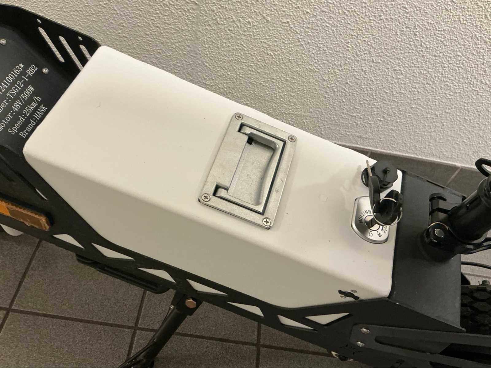HANK e-Scoot Fabrikant: Hanksconcept Model: HANK Categorie: L1e-A / PMR (afhankelijk van keuring) Type voertuig: Compact elektrische e-scoot Afmetingen & Gewicht Lengte (zonder nummerplaat): 117 cm Lengte (met nummerplaat): 123 cm Hoogte (zonder zadel): 40,5 cm Hoogte (met zadel): 64 cm Breedte frame: 15 cm Breedte zadel: 17 cm Gewicht voertuig: 25 kg Gewicht accu: 13 kg Gewicht totaal: 38 kg Bandenmaat: 12 inch Bandbreedte achter: 8,5 cm Bandbreedte voor: 7,5 cm Elektrische Specificaties Motorvermogen: 500 W Motortype: Borstelloze DC-motor (Brushless) Batterijtype: Lithium-ion Batterijcapaciteit: 48V / 30Ah Laadtijd: max. 6 uur Maximale actieradius: tot 100 km Cruisecontrol: Ja Achteruitrijfunctie: Ja Prestaties Maximale snelheid: 25 km/h Maximale hellingshoek: 15° Geluidsniveau: n.v.t. (elektrisch) Remmen, Veiligheid & Besturing Remsysteem: Schijfrem voor + schijfrem achter Verlichting: LED voor / achter (ECE-compatibel) Accubeveiliging: BMS met bescherming tegen overvoltage, undervoltage, overtemperatuur Aandrijving: Direct-drive elektrisch Overige kenmerken • Compact ontwerp • Uitneembare accu • Vering voorvork en zadel • Kentekenhouder achter voor L1e-registratie • Duurzaam frame (staal/aluminium combinatie) Geschikt voor • PMR / mobiliteitsondersteuning (max 25 km/h) • Hotelverhuur (dagverhuur) • Stadsvervoer • Recreatief gebruik • EU-MDR registratie • L1e-A keuring (met individual approval) OEM- en Certificeringsopties • UNECE R75 (banden) • UNECE R78 (remsysteem) • UNECE R50 (verlichting) • UNECE R10 (EMC-test) • CE / EMC documentatie beschikbaar • Batterij voldoet aan UN38.3 transportnorm Nee Merk: HANK Kleur: Blauw/zwart Bouwjaar: 2025 Snelheid: 25km/h