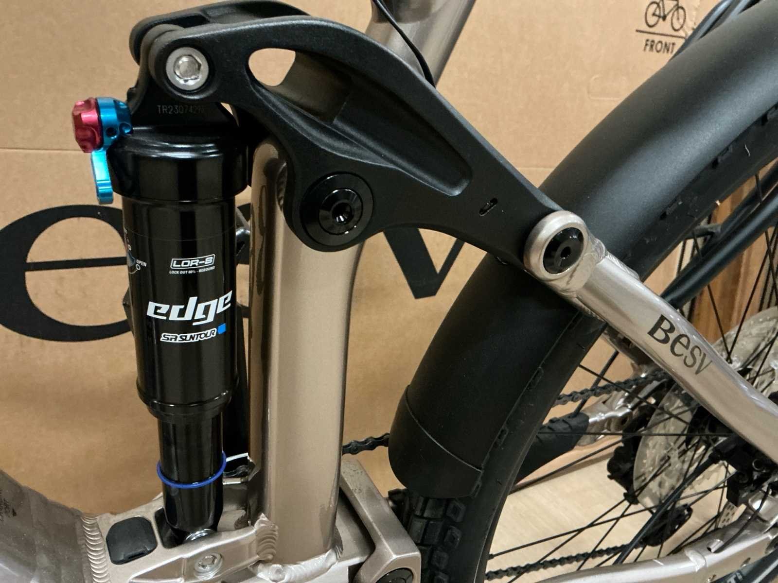 Voorzien van: volledig geveerd BESV TRS-serie aluminium frame, compatibel met Shimano Steps en interne accu, kleur metallic titanium met nachtzwart, maat heren: S (42,5 cm),SR Suntour Zeron35, 35 mm vorkpoten, lockout, luchtdemping, 1,1/8“-1,8” taps toelopende aluminium stuurbuis, veerweg 150 mm. achterdemper SR Suntour Edge LOR8, 230x65, luchtveer, buisvormige aluminium drager, met Snap-IT-platform en veerklem, H-Cargo-achterlichtbevestiging, geëxtrudeerde aluminium spatborden, voor en achter 3/4 lengte, roestvrijstalen bevestigingsmateriaal, Shimano EP600 middenmotor, 250 W nominaal vermogen, 85 Nm koppel, 25 km/u maximale ondersteuning, 720 Wh geïntegreerde lithium-ionaccu, goedgekeurd voor Shimano Service Program, met Smart 4-5,6A-oplader, Shimano SC-E5003, links gemonteerd, met LCD-display, Shimano Deore XT RD-M8100, 12 versnellingen, Shimano Deore CS-M6100, 12 versnellingen, 10-51T, KMC e12Turbo, met Quick-Link, Samox voor Shimano Steps, 34T kettingblad met ringbescherming, Shimano MT420, 4-zuiger hydraulische schijfrem, met 203 mm remschijven voor en achter, Shimano MT4100, 2-vinger hendel, E-MTB reis bar, 6066 legering, 15 mm rise, sweep: 7 graden naar achter, 35 mm klem, E-MTB 3D gesmede aluminium stuurpen, 35 mm klem, voor interne kabelgeleiding, Acros, AZX-581, 1,8" balhoofd, hoekcontactlagers, geïntegreerde kabelgeleiding, E-MTB gelhandvatten met padding en BESV-klem. Nee Merk: BESV Model: TRS 150 Urban 1.1 Frame type: Full-suspension BESV Afgelezen kilometerstand: 0km Motorpositie: Middenmoter Montage: Nog te monteren Remsysteem: Schijfremmen Achtervering: true Voorvering: true Versnellingen: 12 Framemaat: Size M Kleur: Metallic titanium with night black Gewicht: 28kg Lengte: 170cm Breedte: 26cm Hoogte: 90cm