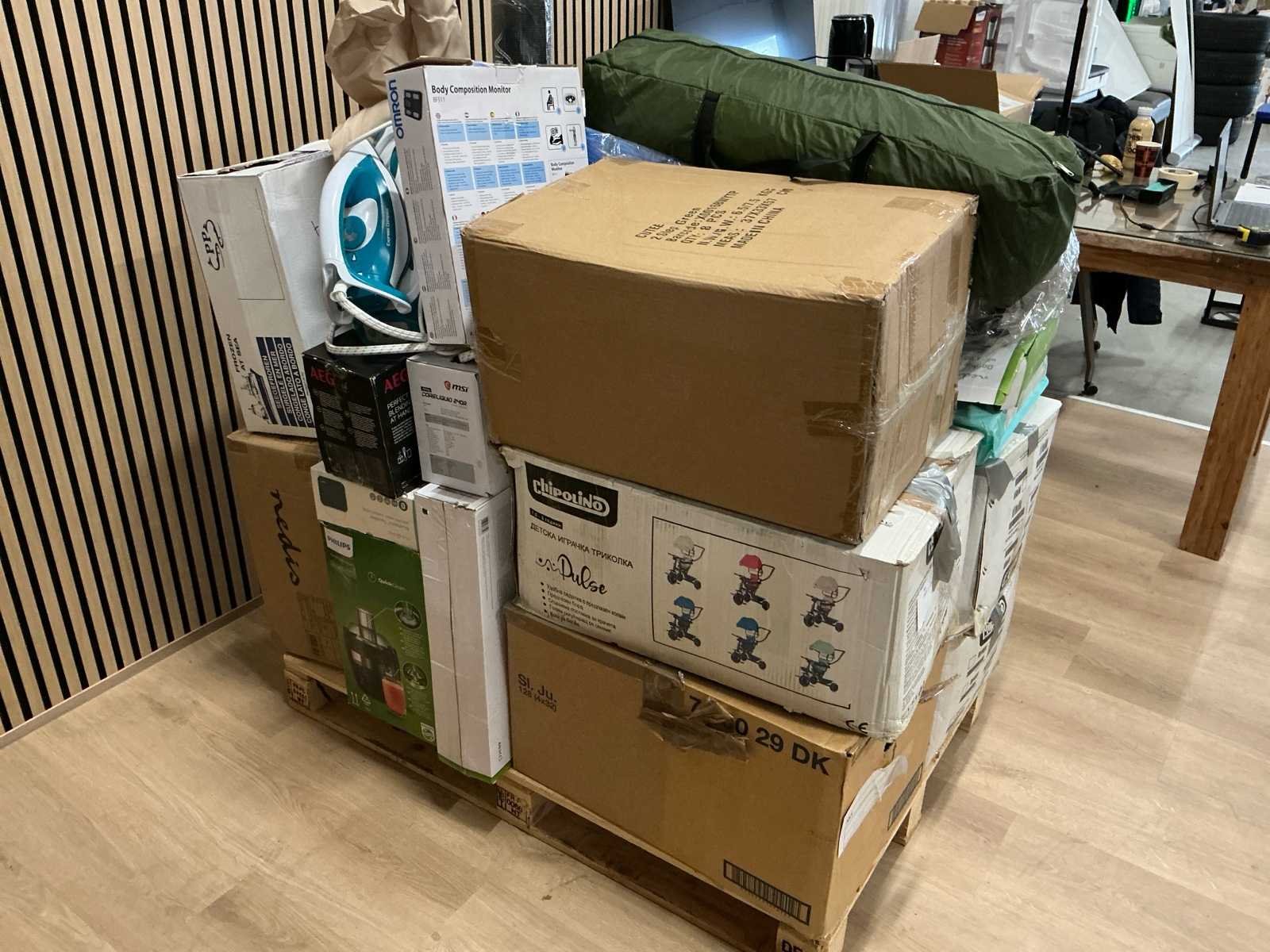 Bestaat uit: MIX-pallet 178: huishoudelijke apparaten, elektronica, kinderartikelen, retourzendingen, retourgoederen van A en B merken. Product voorbeelden: keukenmachines, grills, waterkoker, broodrooster, lektrische apparaten en tandenborstels, ventilatoren, stofzuigers en wanddecoraties, koffers, kinderwagens, beeldschermen / televisies, terrasheaters, telefoons / Laptops / Multimedia, keukenapparatuur enz. Nee Bestaande uit: MIX-pallets: huishoudelijke apparaten, elektronica, kinderartikelen, retourzendingen