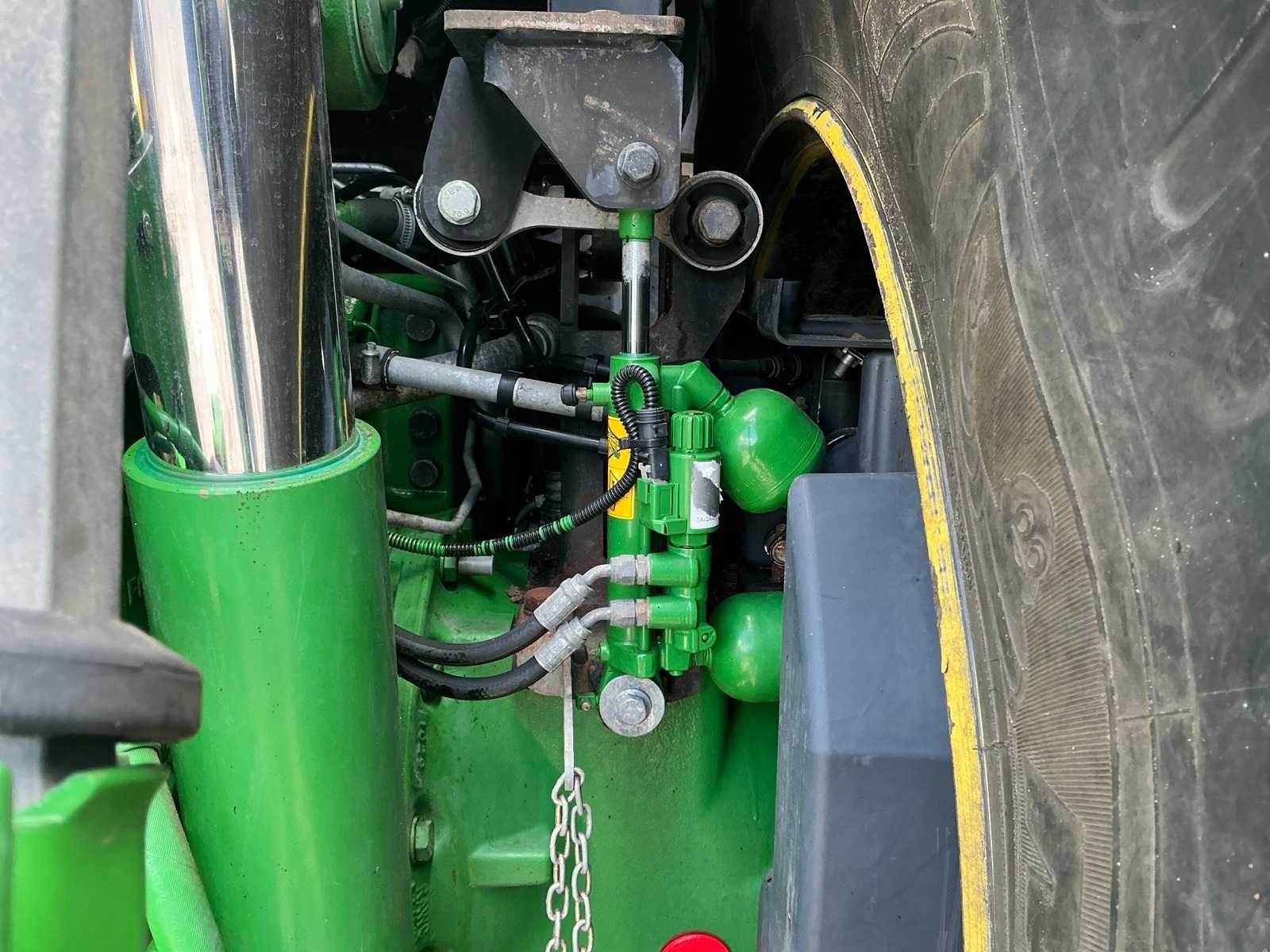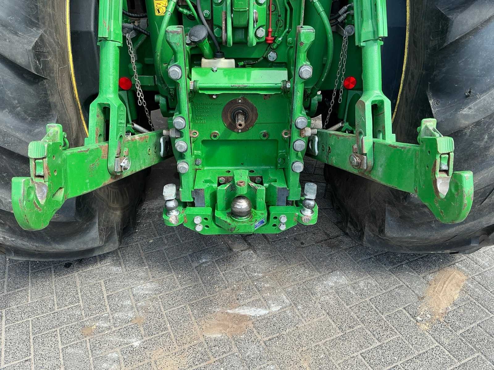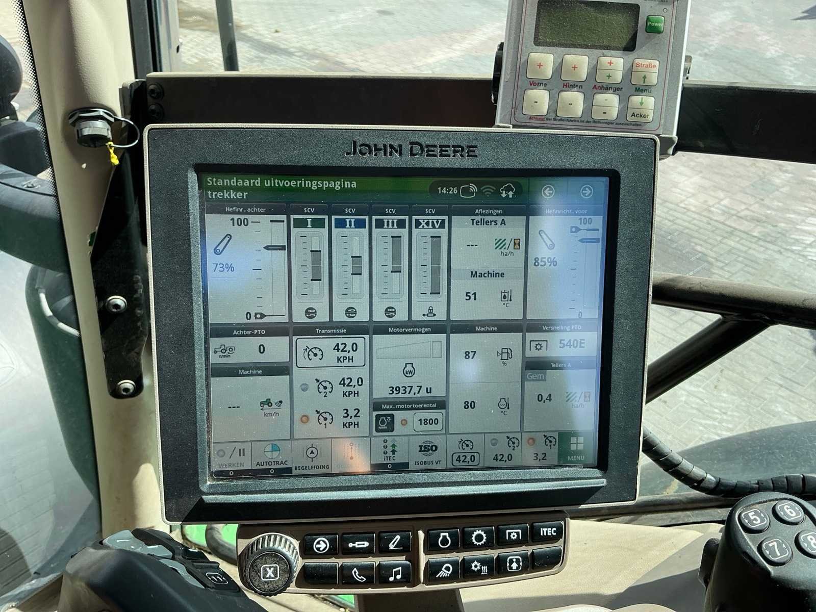 Voorzien van: Aftakas voor en achter, hef voor, 1x dubbele ventiel voor, 3 dubbele ventielen achter, 3 verschillende trekhaken achter 2x50 1x80, aftakas toerental: PTO: 540/540E/1000/1000E. banden lucht systeem, AutoPowr versnellingsbak. De John Deere 6230R (2021) is een vierwielaangedreven landbouwtractor met een 6,8 liter 6-cilinder PowerTech PSS-motor van 230 pk nominaal (tot 280 pk met IPM), een leeggewicht van ca. 9.300–9.500 kg, een toelaatbaar totaalgewicht van 15.000 kg (aslast voor 6.900 kg, achter 11.400 kg), een hefvermogen achter van 9.400 kg, een hydrauliekpomp van 114–155 l/min, PTO-standen 540/540E/1000/1000E, een brandstoftank van 390 liter + 25 liter AdBlue, een maximale trekhaakbelasting van 38.000 kg, transmissieunit AutoPowr (CVT), met een CommandView III cabine inclusief touchscreen en GPS/AutoTrac-voorbereiding. Nee Merk: John deere Type: 6230R Bouwjaar: 2021 Serienummer: 1L06230RCMP105835 Kenteken: TFR-80-B Motorvermogen (kW): 205kW Afgelezen urenstand: 4400 Versnellingsbaktype: AutoPowr Aantal hydraulische ventielen voor: 3 Aantal hydraulische ventielen achter: 9 Bandenmaat voor: 600/60R30 Bandenmaat achter: VF710/60R42 Load sensing: true Fronthefinrichting: true Frontaftakas: true Cabine: true Luchtgeveerde stoel: true Eigen gewicht: 9500kg Totale afmeting L: 5500mm Totale afmeting Breedte: 2600mm Totale afmeting Hoogte: 3050mm Kentekenpapieren compleet?: true Chassisnummer: 1L06230RCMP105835 Datum eerste toelating: 2021-04-13 Nationaliteit documenten: nederlands Zelf rijdend exporteren: ja