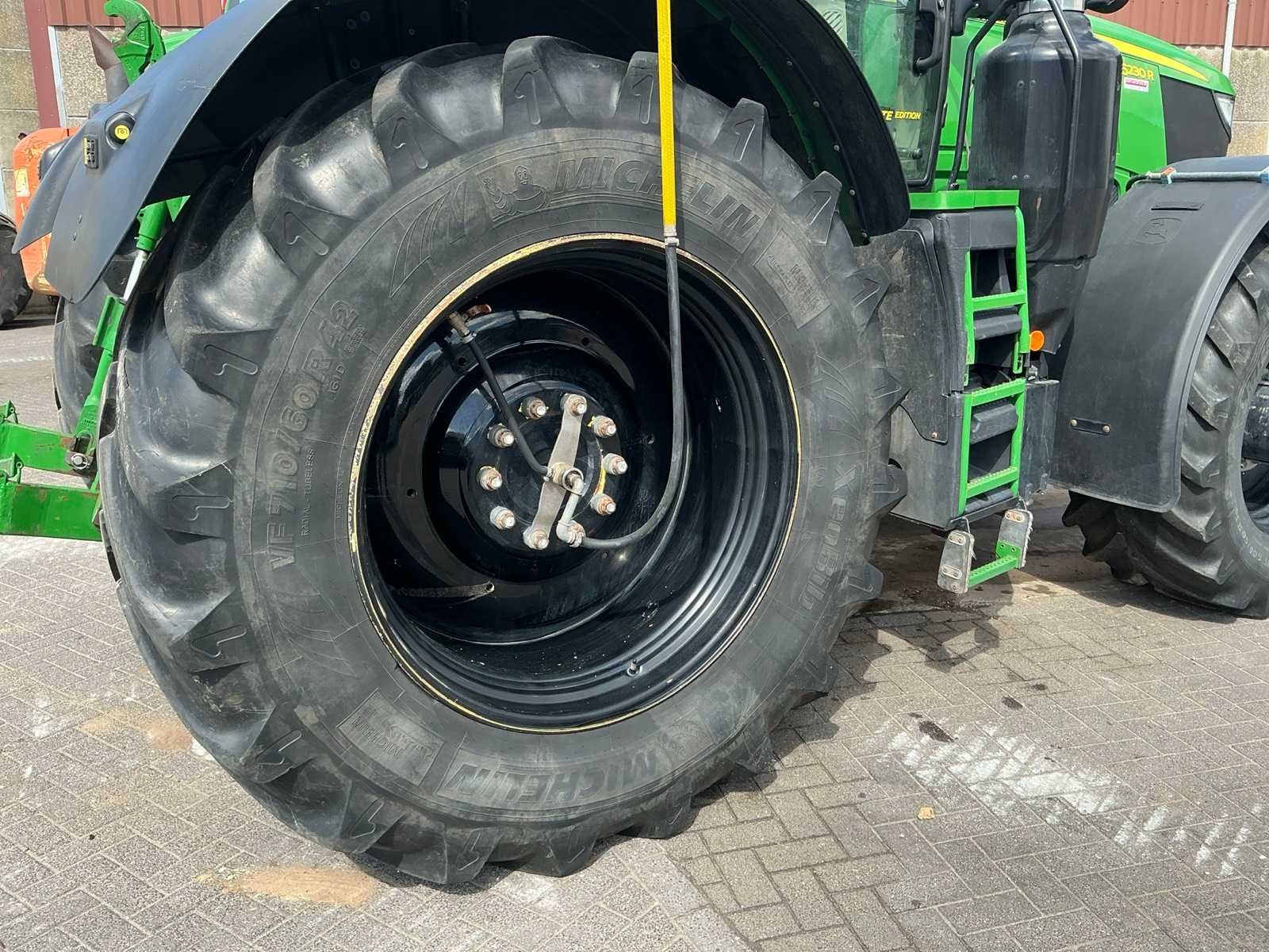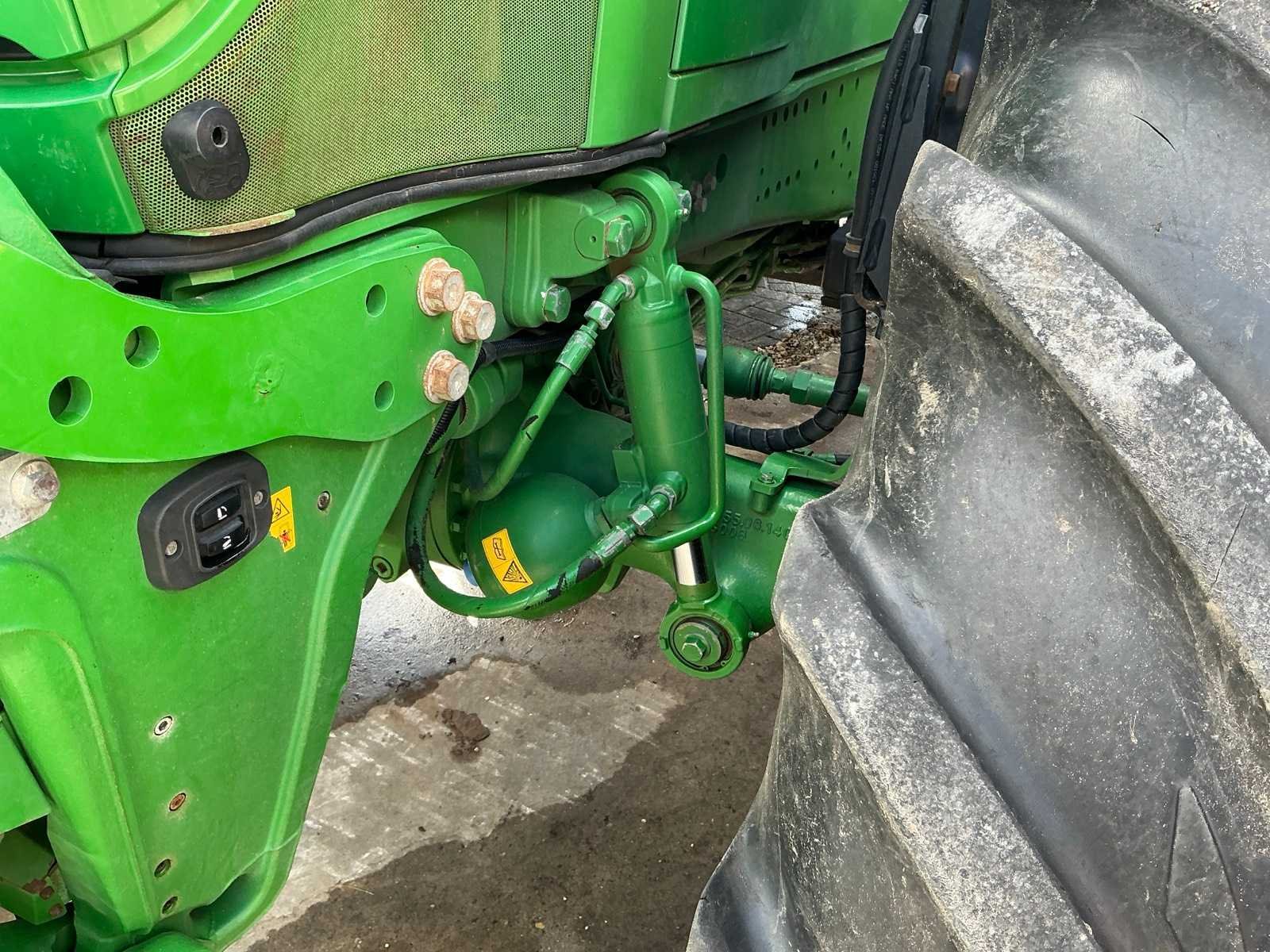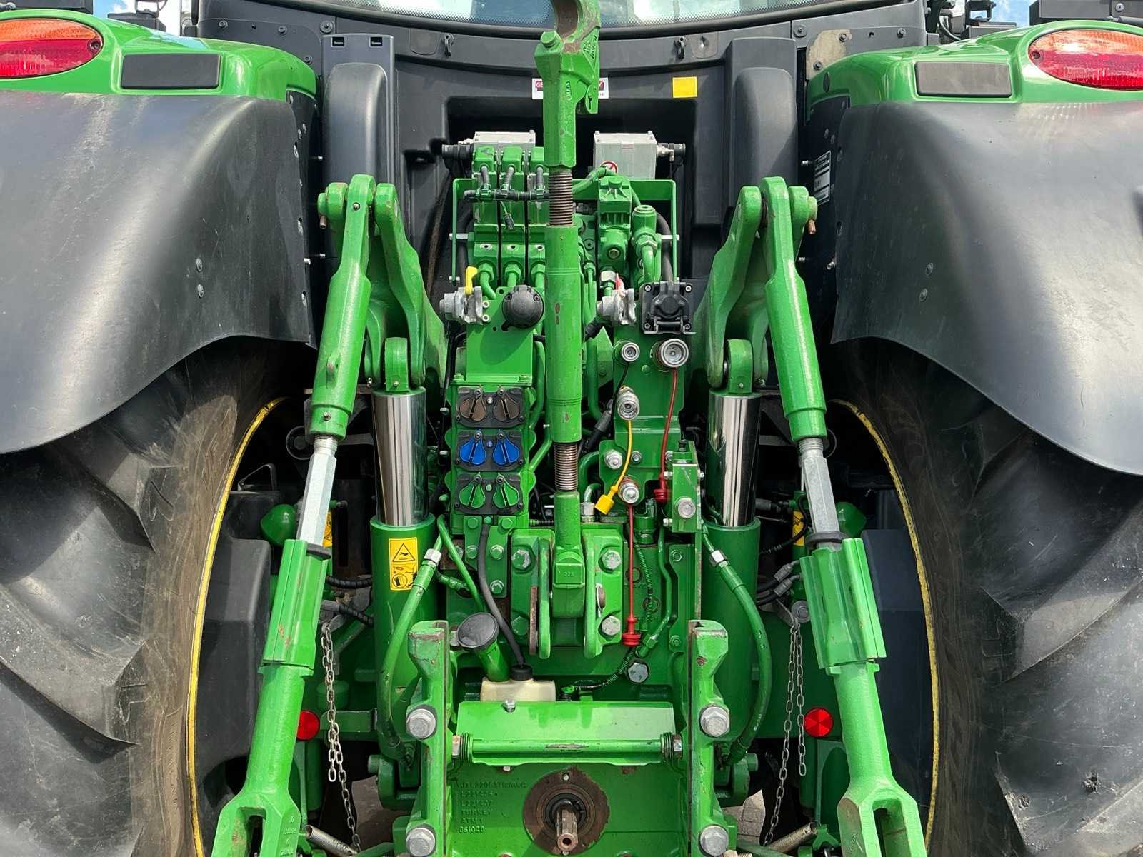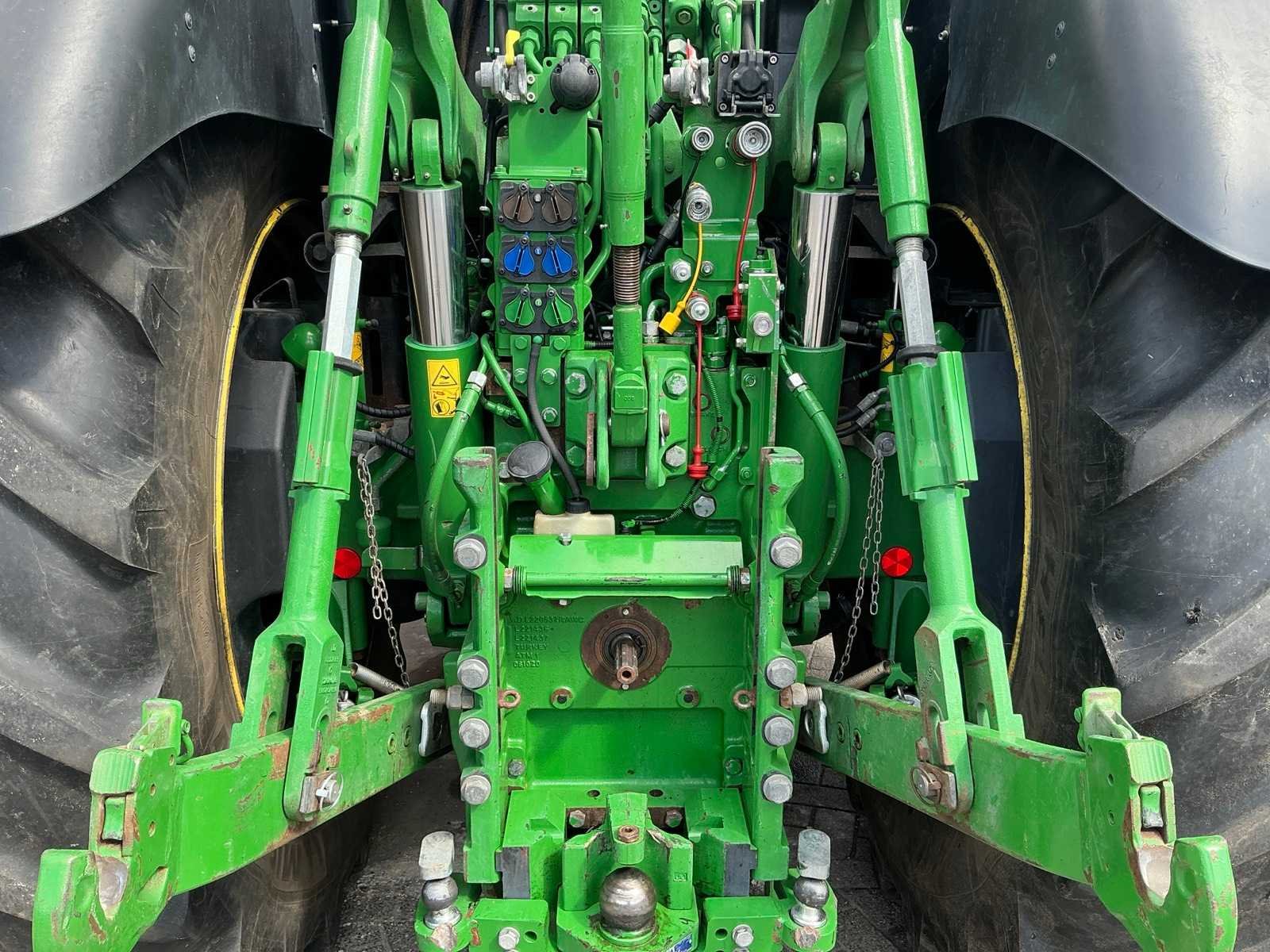 Voorzien van: Aftakas voor en achter, hef voor, 1x dubbele ventiel voor, 3 dubbele ventielen achter, 3 verschillende trekhaken achter 2x50 1x80, aftakas toerental: PTO: 540/540E/1000/1000E. banden lucht systeem, AutoPowr versnellingsbak. De John Deere 6230R (2021) is een vierwielaangedreven landbouwtractor met een 6,8 liter 6-cilinder PowerTech PSS-motor van 230 pk nominaal (tot 280 pk met IPM), een leeggewicht van ca. 9.300–9.500 kg, een toelaatbaar totaalgewicht van 15.000 kg (aslast voor 6.900 kg, achter 11.400 kg), een hefvermogen achter van 9.400 kg, een hydrauliekpomp van 114–155 l/min, PTO-standen 540/540E/1000/1000E, een brandstoftank van 390 liter + 25 liter AdBlue, een maximale trekhaakbelasting van 38.000 kg, transmissieunit AutoPowr (CVT), met een CommandView III cabine inclusief touchscreen en GPS/AutoTrac-voorbereiding. Nee Merk: John deere Type: 6230R Bouwjaar: 2021 Serienummer: 1L06230RCMP105835 Kenteken: TFR-80-B Motorvermogen (kW): 205kW Afgelezen urenstand: 4400 Versnellingsbaktype: AutoPowr Aantal hydraulische ventielen voor: 3 Aantal hydraulische ventielen achter: 9 Bandenmaat voor: 600/60R30 Bandenmaat achter: VF710/60R42 Load sensing: true Fronthefinrichting: true Frontaftakas: true Cabine: true Luchtgeveerde stoel: true Eigen gewicht: 9500kg Totale afmeting L: 5500mm Totale afmeting Breedte: 2600mm Totale afmeting Hoogte: 3050mm Kentekenpapieren compleet?: true Chassisnummer: 1L06230RCMP105835 Datum eerste toelating: 2021-04-13 Nationaliteit documenten: nederlands Zelf rijdend exporteren: ja