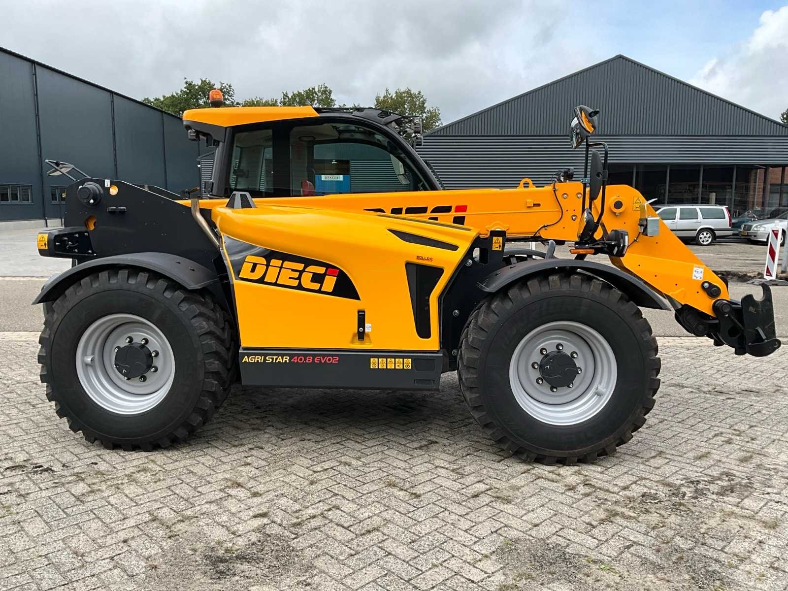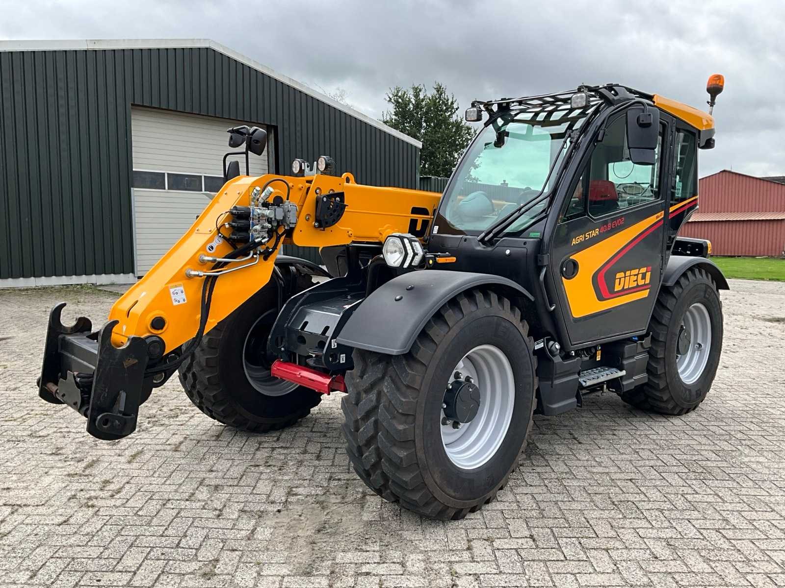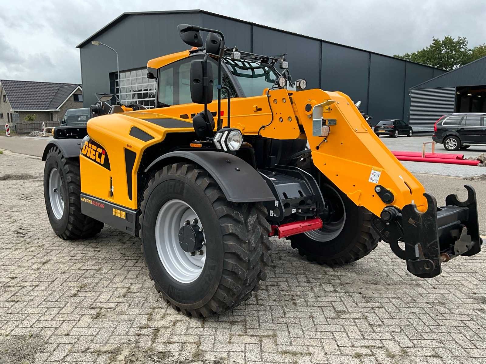 Voorzien van 4-Cil. “Perkins” Dieselmotor; 130 pk; 40km/h; hydraulische snelwissel; Manitou aansluiting;Vario transmissie; geveerde cabine; airco; uitlijnhulp; omkeerfan; geveerde mast; Vredestein: 460/70R24; Nee Merk: Dieci Type: Agristar 40.8 Bouwjaar: 2023 Kenteken: T85ftn Motorvermogen (kW): 95kW Hefvermogen: 4000kg Hefhoogte: 7200mm Cabine: true Vierwielaandrijving 4x4: true Luchtbanden: true Afgelezen urenstand: 476 Eigen gewicht: 8500kg
