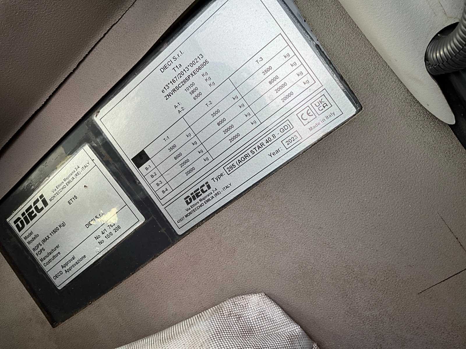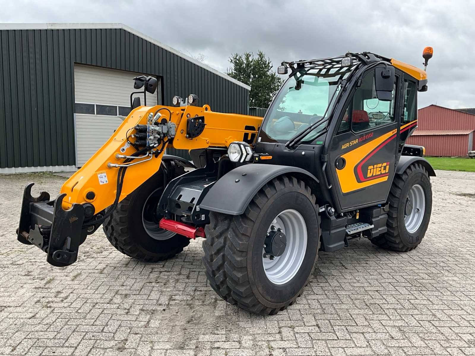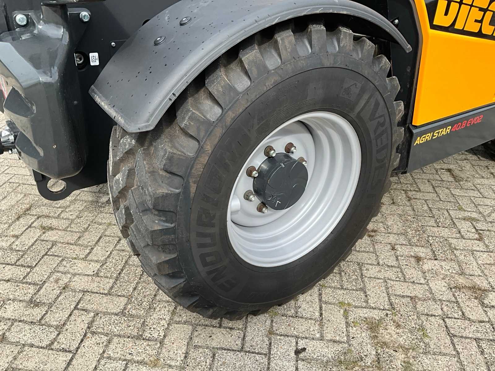 Voorzien van 4-Cil. “Perkins” Dieselmotor; 130 pk; 40km/h; hydraulische snelwissel; Manitou aansluiting;Vario transmissie; geveerde cabine; airco; uitlijnhulp; omkeerfan; geveerde mast; Vredestein: 460/70R24; Nee Merk: Dieci Type: Agristar 40.8 Bouwjaar: 2023 Kenteken: T85ftn Motorvermogen (kW): 95kW Hefvermogen: 4000kg Hefhoogte: 7200mm Cabine: true Vierwielaandrijving 4x4: true Luchtbanden: true Afgelezen urenstand: 476 Eigen gewicht: 8500kg