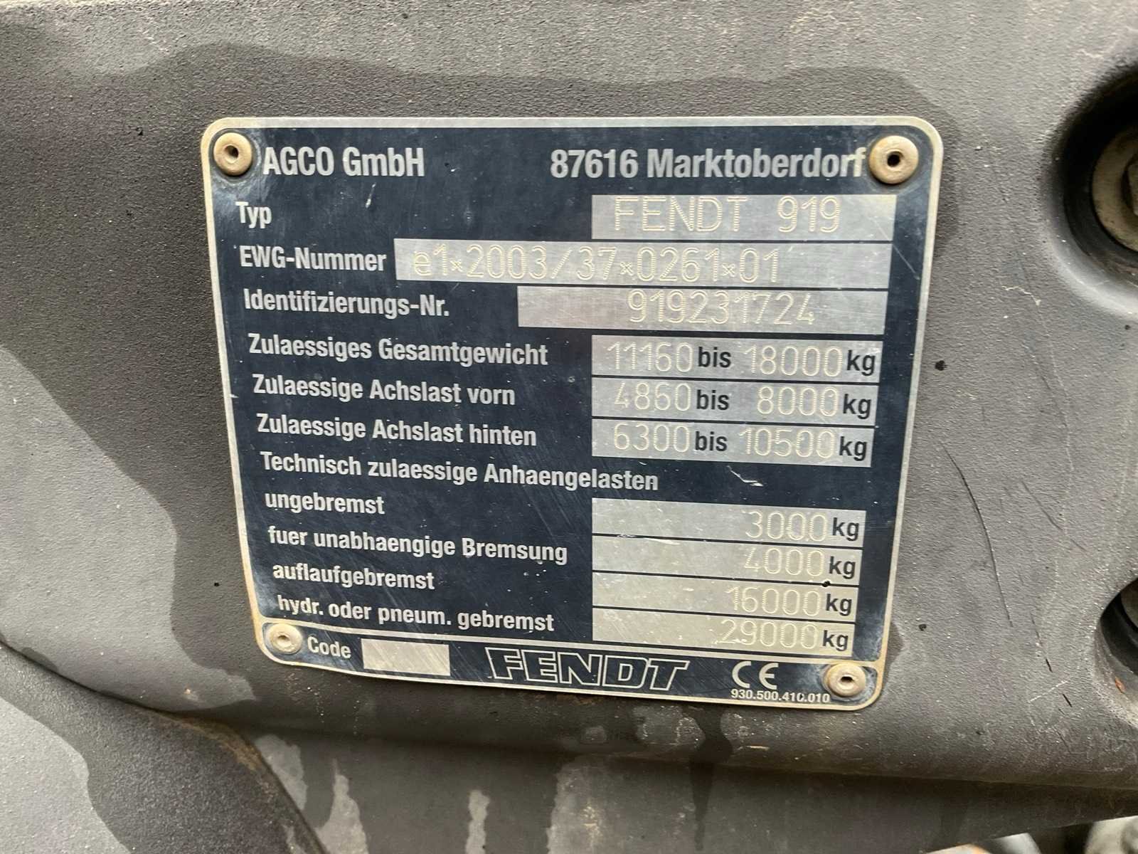 Voorzien van: 5x dubbelwerkend hydraulisch ventiel achter, load-sensing, luchtsysteem, luchtremaansluiting, 1x dubbelwerkend hydraulisch ventiel voor, 1x drukloze retour voor, Fronthefinrichting, geveerde vooras, hydraulische topstang, ondertrekhaak, luchtgeveerde cabine, spatbordbediening, Nee Merk: Fendt Type: 922 Vario Bouwjaar: 2008 Serienummer: 919231724 Afgelezen urenstand: 10423 Versnellingsbaktype: Vario Aantal hydraulische ventielen voor: 1 Aantal hydraulische ventielen achter: 5 Bandenmaat voor: Trelleborg 600/65R34 Bandenmaat achter: Trelleborg 710/70R42 Fronthefinrichting: true Cabine: true Luchtgeveerde stoel: true Totale afmeting L: 5550mm Totale afmeting Breedte: 2750mm Totale afmeting Hoogte: 3240mm Nationaliteit documenten: Spaans
