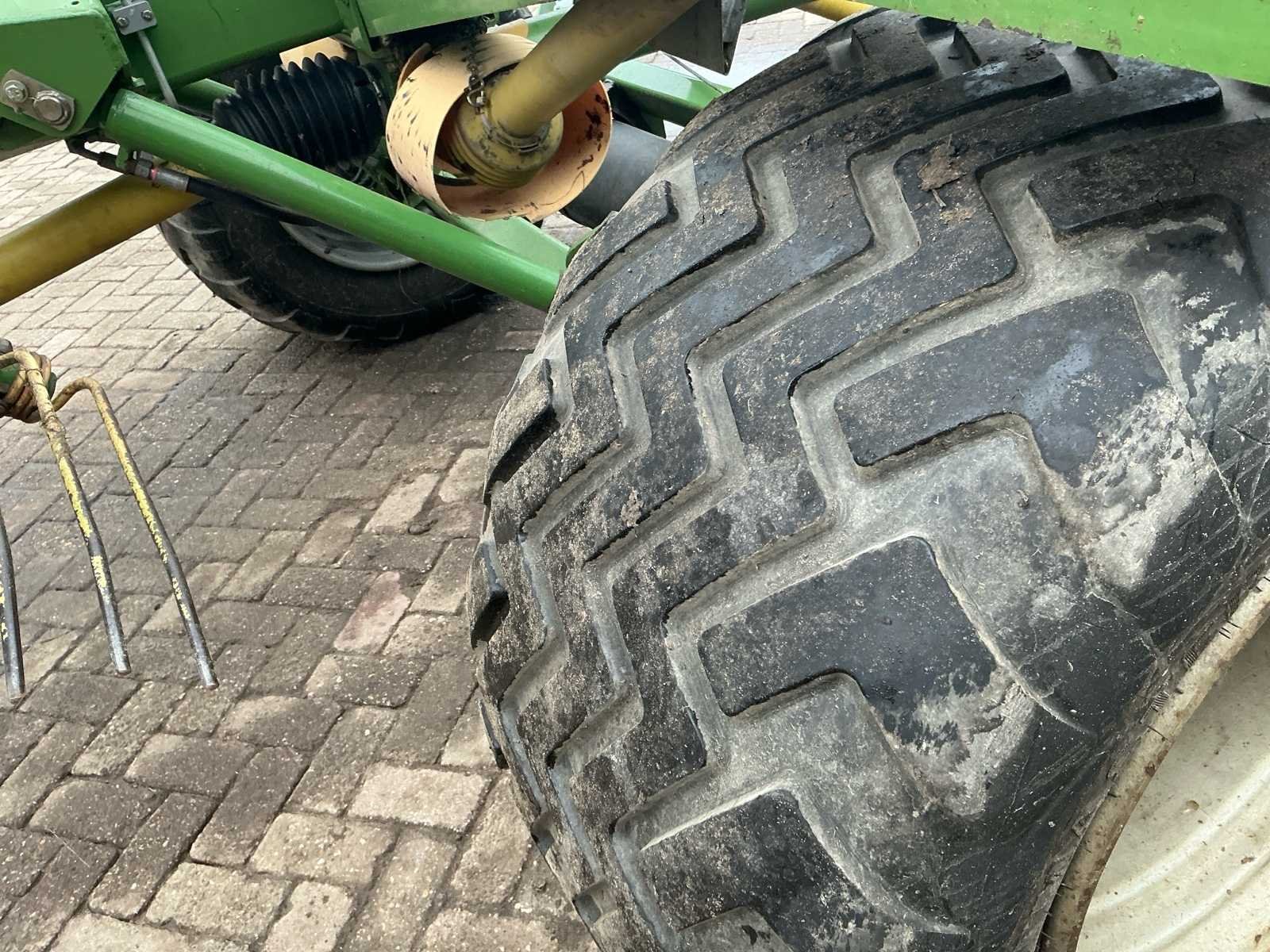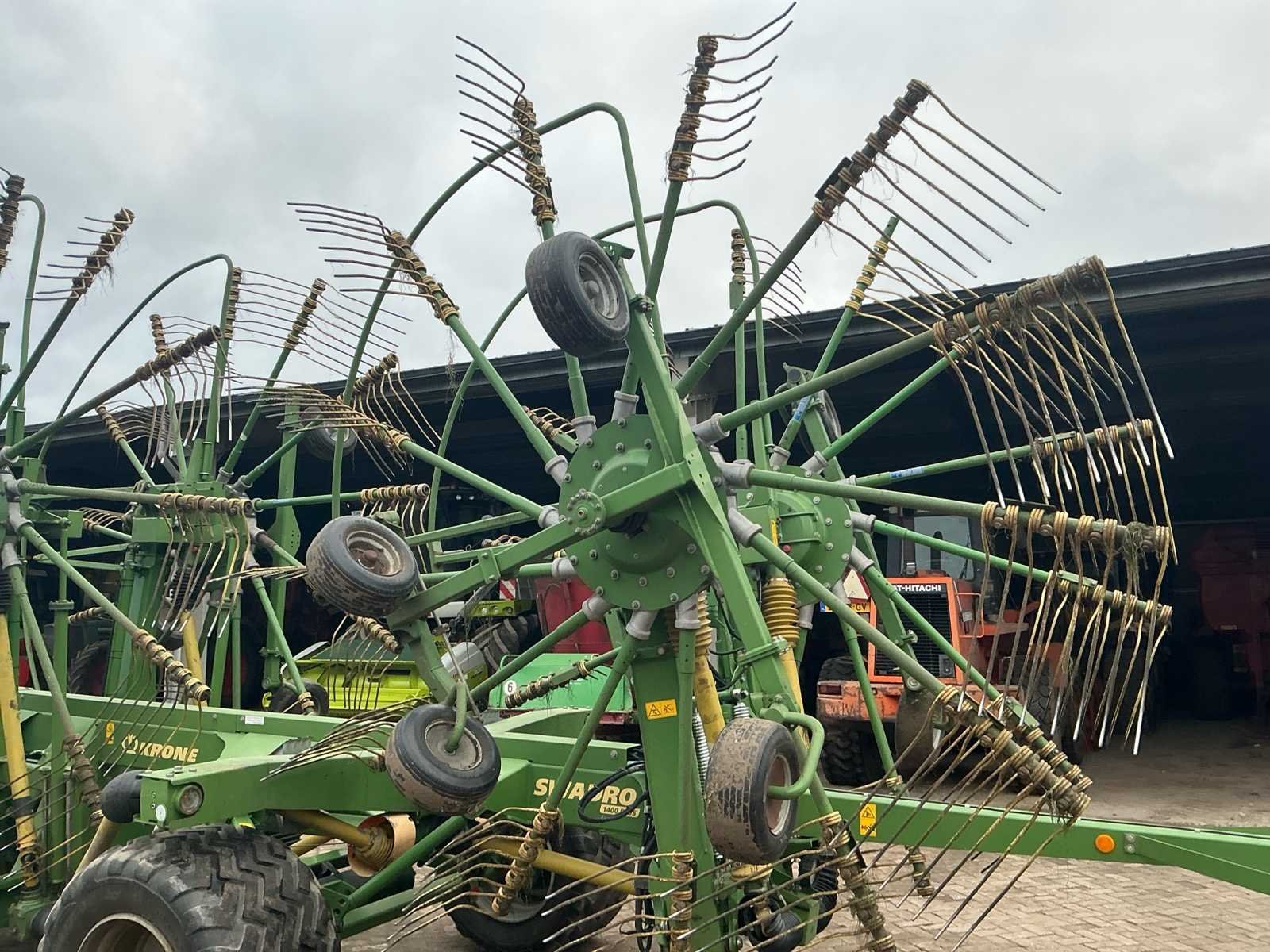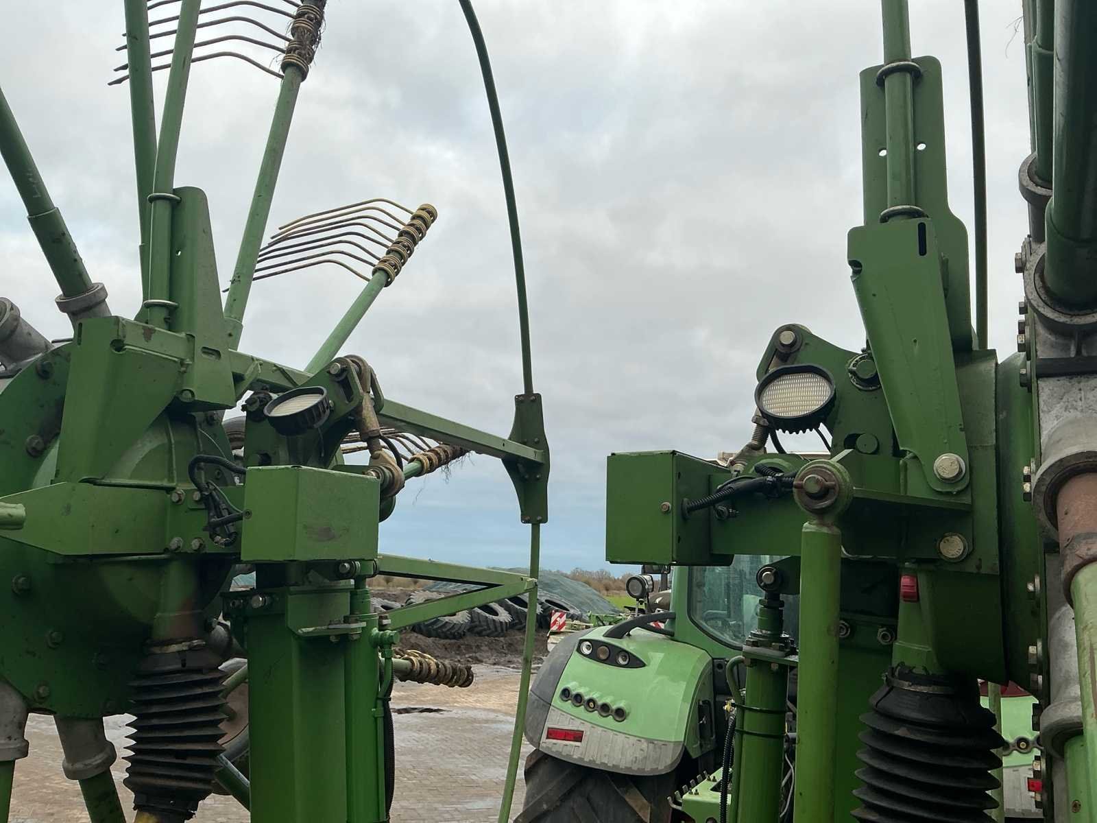 Voorzien van: De Krone Swadro 1400 Plus SW2E heeft een werkbreedte van 9,80–13,50 m, een zwadenbreedte van 1,40–2,20 m, 4 rotoren met 13–15 armen per rotor en 4 tanden per arm, en een capaciteit tot circa 15–20 hectare per uur afhankelijk van gewas en rijsnelheid. Instelbare curvebanen, vernieuwt in 2024. Elektrisch in hoogte te verstellen, rotors. Lucht remmen. Loadsensing en tractorhydroliek bediening. Werklampen. De Krone Swadro 1400 Plus is een vierrotor-zwadhark met een werkbreedte van 9,80–13,50 m, zwadenbreedte van 1,40–2,20 m, 4 rotoren met 13–15 armen en 4 tanden per arm, een capaciteit van 15–20 ha/uur, een eigen gewicht van circa 4.800–5.000 kg, transportafmetingen van ongeveer 3,0 m breed, 4,0 m hoog en 6,5–7,0 m lang, en een aanbevolen tractorvermogen van 120–150 pk. De Krone Swadro 1400 Plus heeft een transportbreedte van circa 3,0 meter, een transporthoogte van ongeveer 4,0 meter, een transportlengte van 6,5–7,0 meter en een eigen gewicht van circa 4.800–5.000 kg. Nee Merk: Krone Type: Swadro 1400 Plus Bouwjaar: 2016 Serienummer: SWE945233 Bouwjaar: 2016 Eigen gewicht: 5900kg Werkbreedte: 14000mm