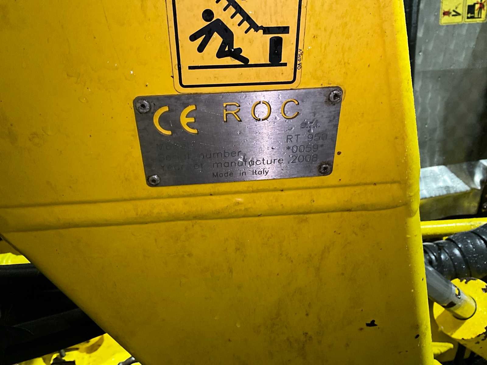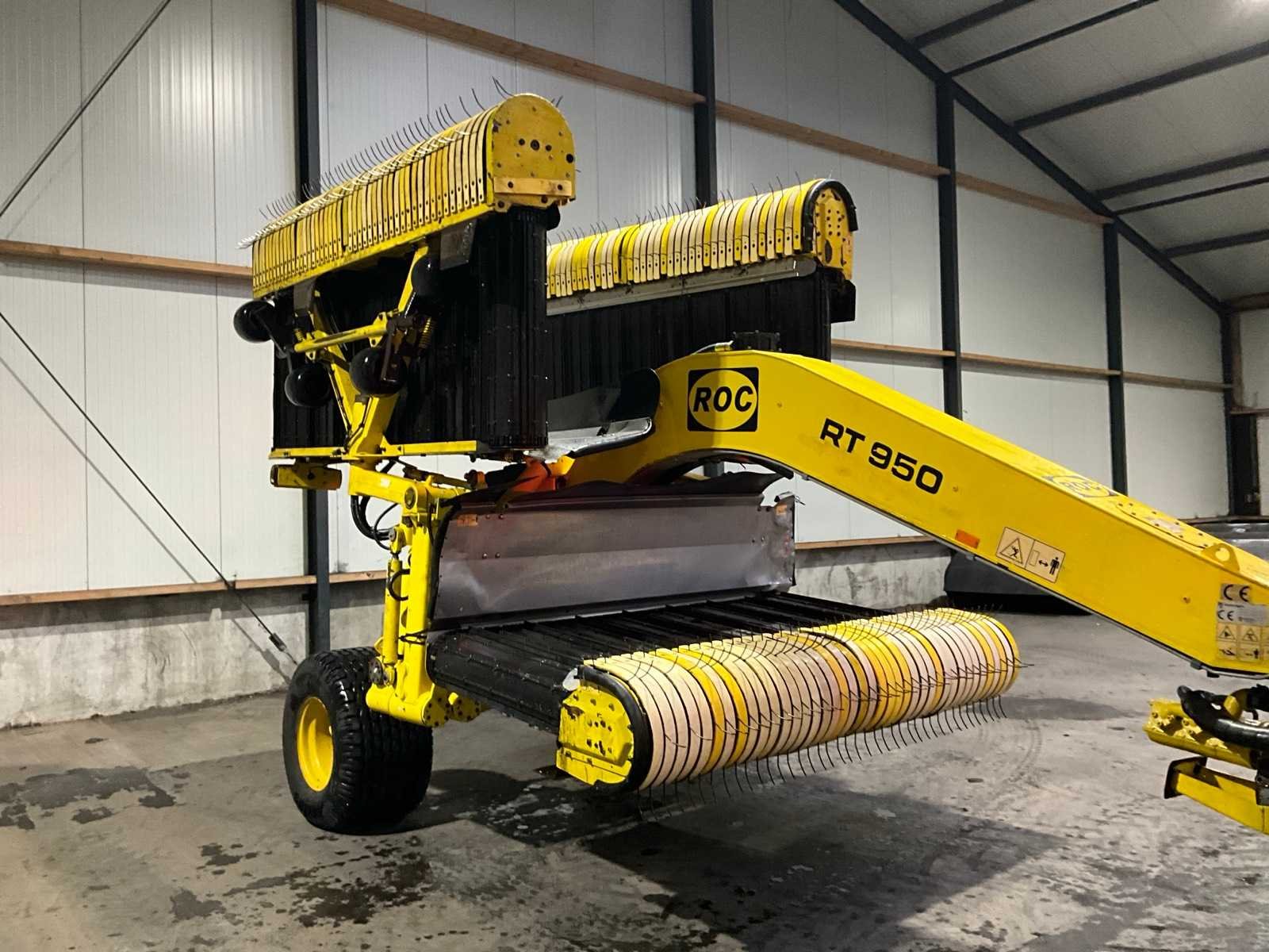 Voorzien van dubbelzijdige afleg; afgooi ca. 50 cm; hydraulisch opklapbaar; getrokken model; bandenmaat: 500/50R17; inclusief bedieningskast; Let op, Curvebanen vervangen in begin 2025; Nee Merk: ROC Type: RT950 Bouwjaar: 2008 Serienummer: S9867 Werkbreedte: 8500