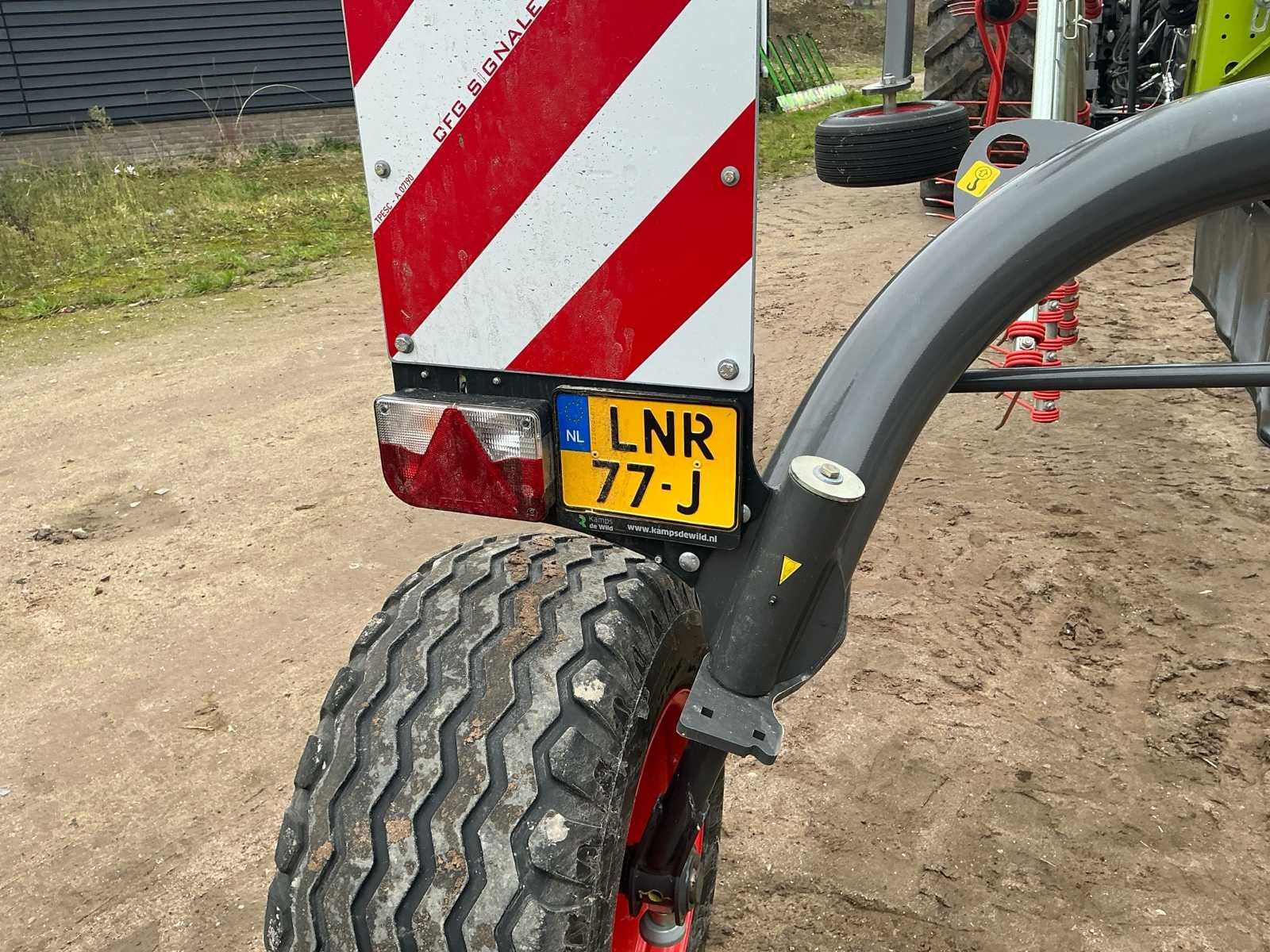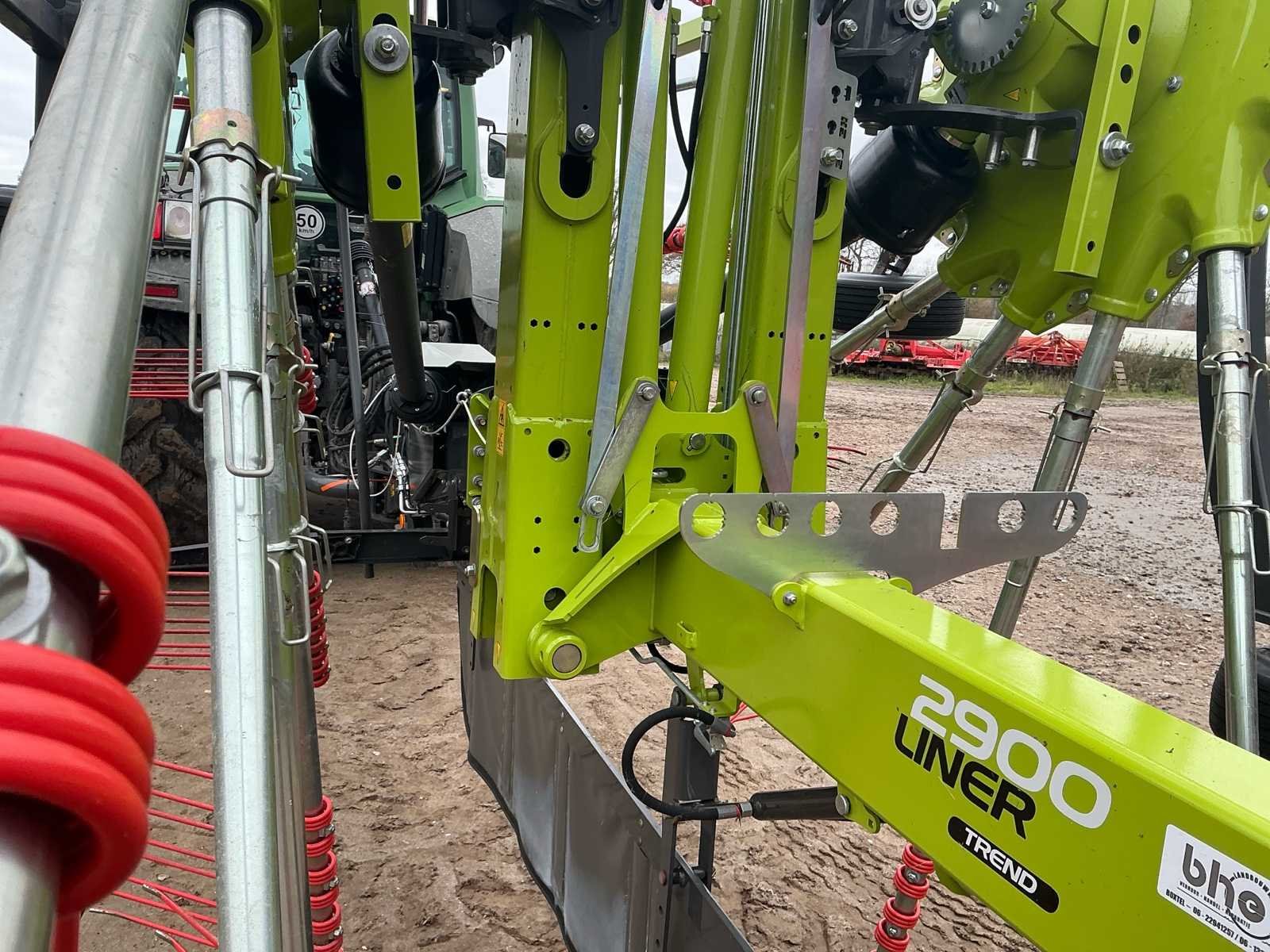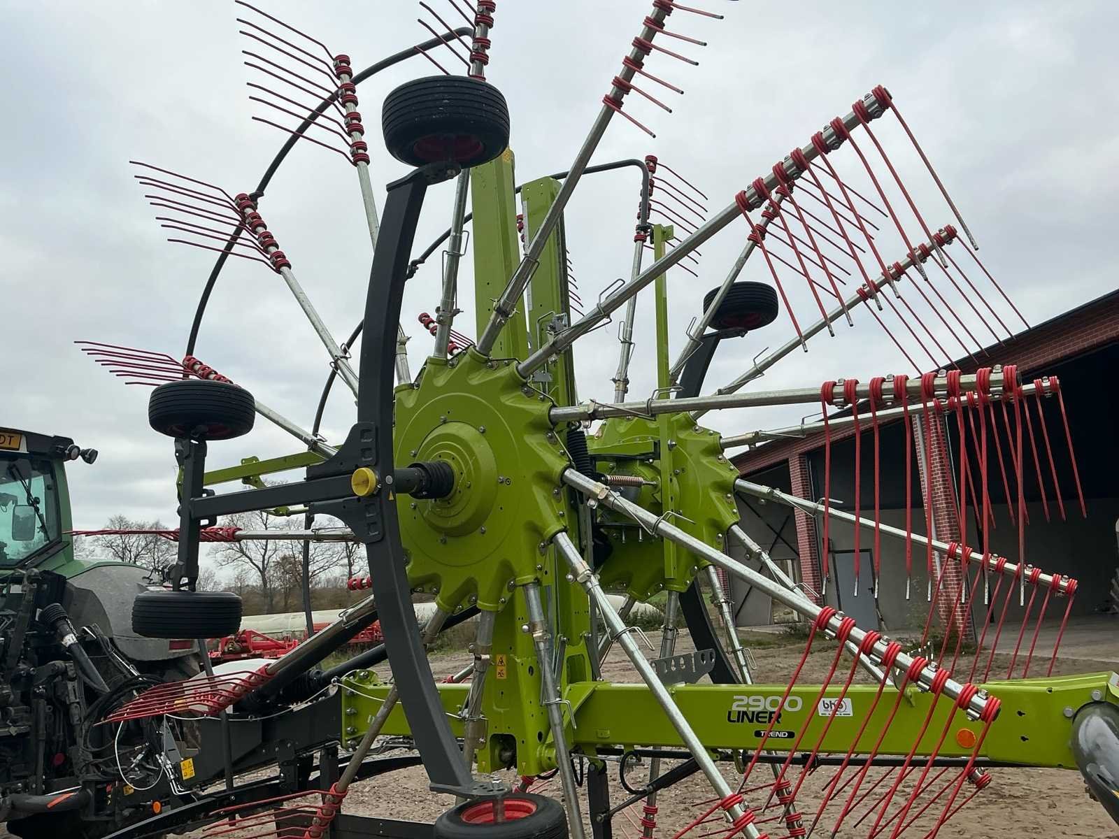 Voorzien van: De CLAAS LINER 2900 Trend is een dubbelrotor-zwadhark met een werkbreedte van 8,80–9,40 m, zwadenbreedte 1,40–2,20 m, 12 armen per rotor met 4 tanden per arm, totaalgewicht circa 1.910 kg, benodigd tractorvermogen 60–90 pk, cardanische rotorophanging, hermetisch afgesloten onderhoudsarme rotorhuizen, transportbreedte onder 3 m en bouwjaar 2021/2022. No Merk: Claas Type: 2900 Liner Bouwjaar: 2022 Serienummer: WCBSG2500G2501120 Bouwjaar: 2022 Kenteken: LNR-77-J Eigen gewicht: 1910kg Werkbreedte: 9400mm Totale afmeting L: 6530mm Totale afmeting Breedte: 3000mm Totale afmeting Hoogte: 4000mm