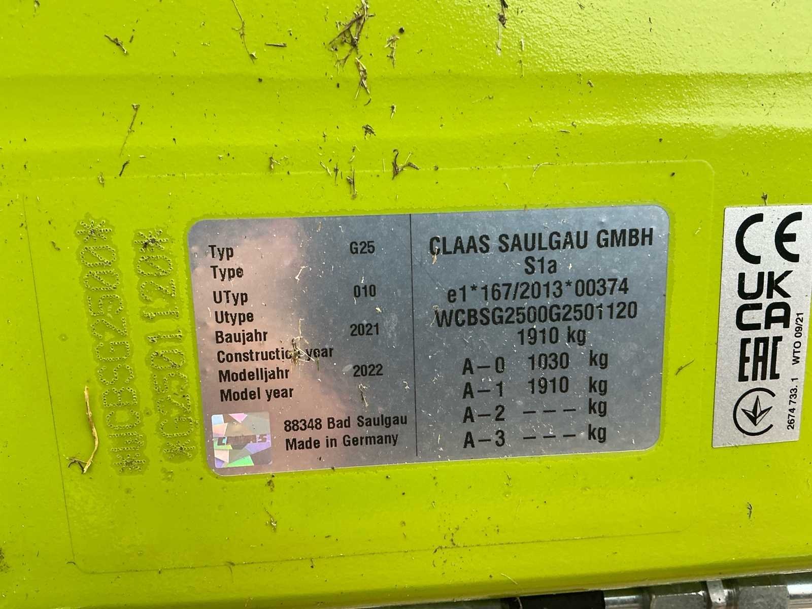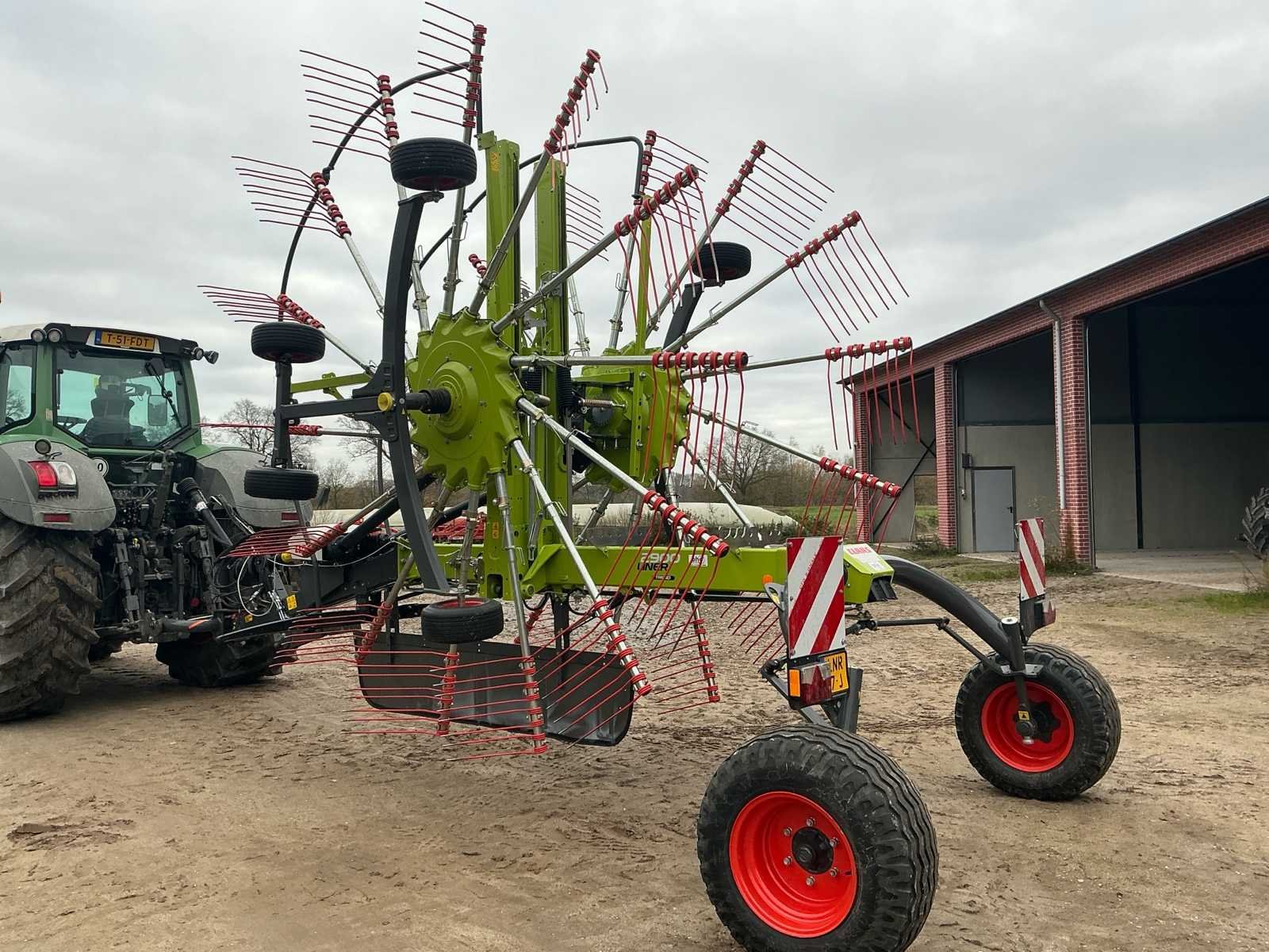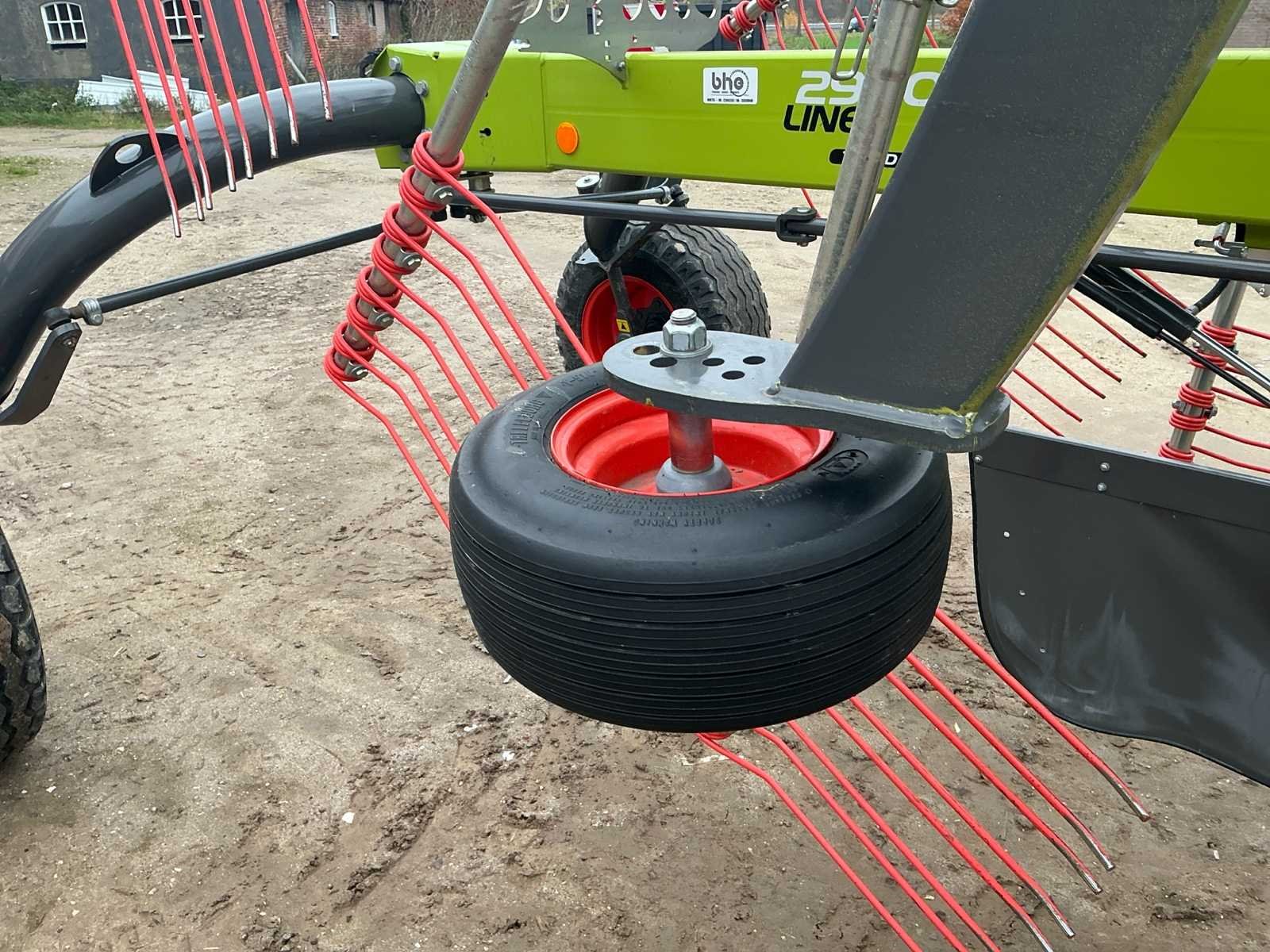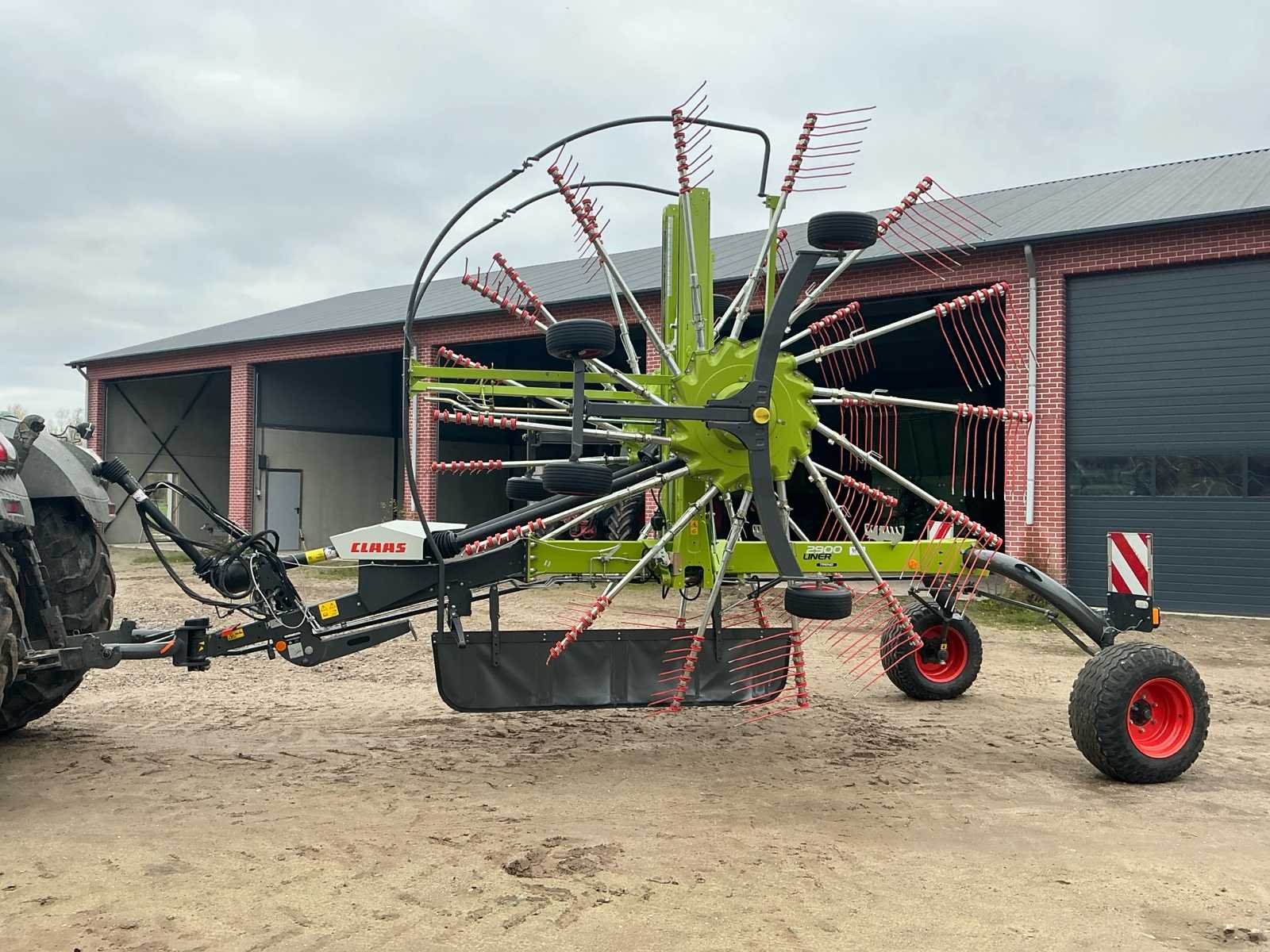Voorzien van: De CLAAS LINER 2900 Trend is een dubbelrotor-zwadhark met een werkbreedte van 8,80–9,40 m, zwadenbreedte 1,40–2,20 m, 12 armen per rotor met 4 tanden per arm, totaalgewicht circa 1.910 kg, benodigd tractorvermogen 60–90 pk, cardanische rotorophanging, hermetisch afgesloten onderhoudsarme rotorhuizen, transportbreedte onder 3 m en bouwjaar 2021/2022. No Merk: Claas Type: 2900 Liner Bouwjaar: 2022 Serienummer: WCBSG2500G2501120 Bouwjaar: 2022 Kenteken: LNR-77-J Eigen gewicht: 1910kg Werkbreedte: 9400mm Totale afmeting L: 6530mm Totale afmeting Breedte: 3000mm Totale afmeting Hoogte: 4000mm