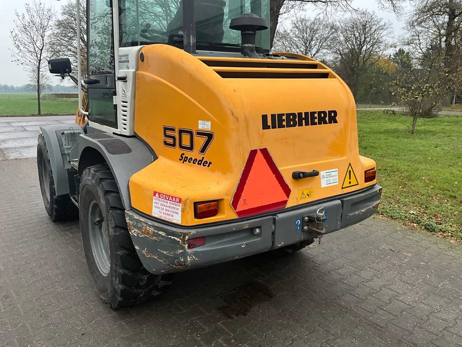 Voorzien van 4-Cil. “Deutz” Dieselmotor; 30 km/h; automatische centrale smering; hydraulische Snelwissel; extra hydraulische functies; werkverlichting; knik / wiel besturing! Nee Merk: Liebherr Type: L507 Speeder Bouwjaar: 2014 Serienummer: VATZ1110HZB035659 Merk motor: Deutz Kenteken: TKH-59-F Motorvermogen (kW): 48kW Aantal cilinders: 4 Brandstof: diesel Bedrijfsgewicht: 6500kg Bandenmaat: 400/70R20 Cabine: true Afgelezen urenstand: 8694