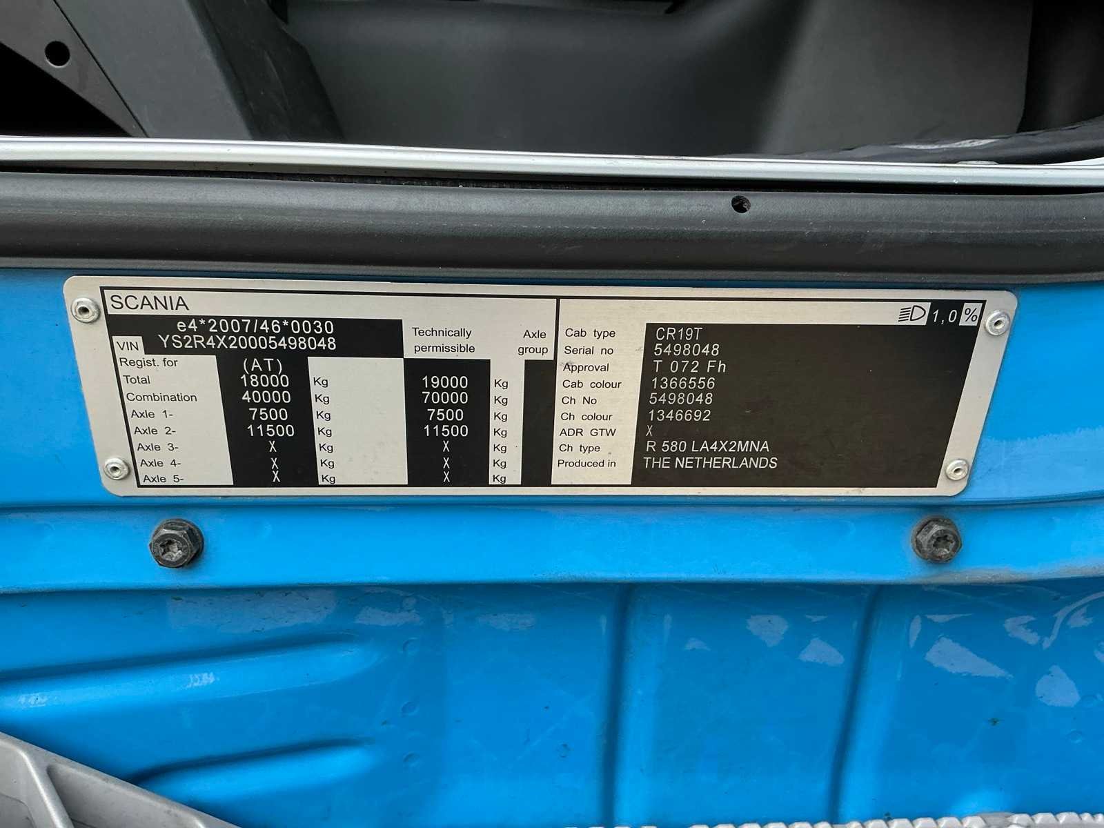 Voorzien van: 27-mc zendbak, dubbele brandstoftank (700L + 400L), luchtgeveerde stoelen, handgeschakelde versnellingsbak, zwaaibalk, cabine met bovenslaper (2 bedden), standairco, standkachel, koelvak Nee Kenteken: BB-528-D Merk: Scania Type: R580 Bouwjaar: 2018 Chassisnummer VIN: YS2R4X20005498048 Cilinderinhoud: 16353cc Kilometerstand bij opname: 885217km APK vervaldatum: 2026-01-31 Datum eerste toelating: 2018-01-24 Datum eerste toelating (NL): 2025-03-21 Type transmissie: Dubbele koppeling (DCT) Aantal assen: 2 Asconfiguratie: 4x2 Fuel Type: Diesel Laadvermogen: 10537kg Emissieklasse: 6 Slaapcabine: true Totale afmeting L: 6200mm Totale afmeting Breedte: 2450mm Afgelezen kilometerstand: 885217km Kentekenpapieren compleet?: true Aantal zitplaatsen: 2 Zelf rijdend exporteren: Mogelijk Handgeschakelde versnellingsbak: true Diesel: true