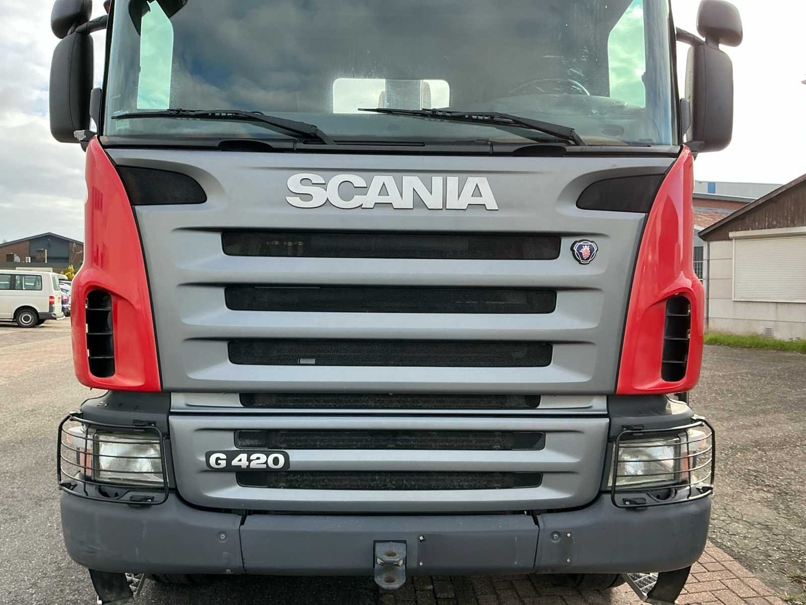 904 uur op de kraan. (LET OP! dit voertuig heeft een kenteken registratie, bij afhalen dient u dit ter plaatste bij een derde partij te naam te stellen of te exporteren, hier zijn extra kosten aan verbonden) Nee Merk: Scania Type: G420 Bouwjaar: 2009 Cilinderinhoud: 11700cc Kilometerstand bij opname: 160862km APK vervaldatum: Nvt Datum eerste toelating: 09-09-2008 Type transmissie: Handmatig Aantal assen: 3 Asconfiguratie: 6x4 Fuel Type: Diesel Laadvermogen: 12160kg Aantal sleutels: 3 Emissieklasse: Euro 4 Laadkraan: true Eigen gewicht: 13840kg Totale afmeting L: 8770mm Totale afmeting Breedte: 2500mm Totale afmeting Hoogte: 3500mm Startinformatie: Start en rijdt Afgelezen kilometerstand: 160862km Kentekenpapieren compleet?: true Aantal zitplaatsen: 2 Zelf rijdend exporteren: Mogelijk Handgeschakelde versnellingsbak: true Diesel: true