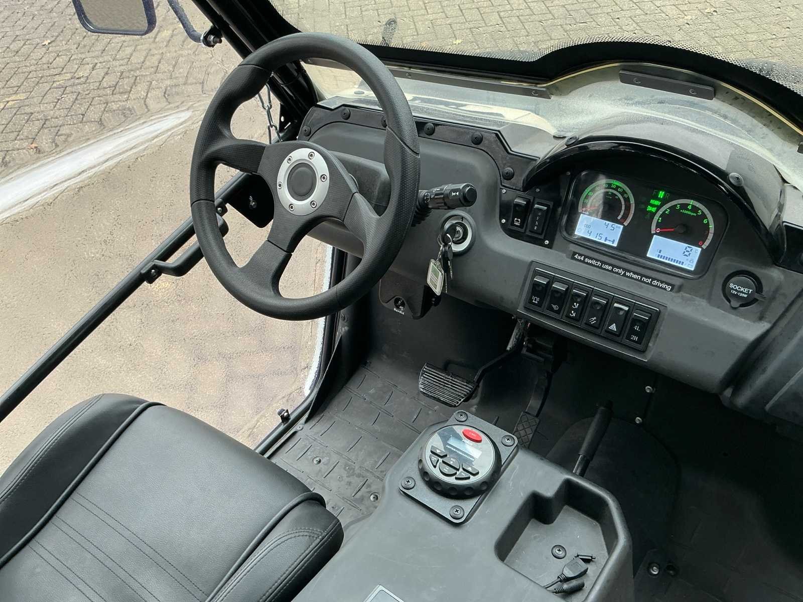 T-12-FNF 44km Voorzien van: 4 wiel en 2 wiel aandrijving Lier met afstandsbediening 3 rij snelheden Radio met Bluetooth Verwarming Maximum snelheid 30km/h (LET OP! dit voertuig heeft een kenteken registratie, bij afhalen dient u dit ter plaatste bij een derde partij te naam te stellen of te exporteren, hier zijn extra kosten aan verbonden) Nee Merk: Frisian Type: FM-90 Bouwjaar: 2023 Aantal personen: 4 Elektrisch: true Kleur: Zwart Gewicht: 1030kg Lengte: 300cm Breedte: 150cm Hoogte: 195cm Materiaal: Plastic