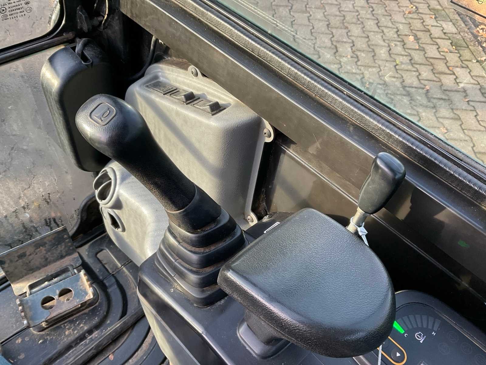 Voorzien van: 2-delige zwenkgiek, hydraulisch verstelbare rupsen, schaafblad, hydraulische functie op giek, 2 rijsnelheden, digitaal display, Nee Merk: Hyundai Type: Robex 18-9AK Bouwjaar: 2022 Serienummer: HHKHMJ08AE0000379 Merk motor: Kubota Motorvermogen (kW): 12kW Aantal cilinders: 3 Brandstof: diesel Bedrijfsgewicht: 1991kg Inclusief graafbak: Yes Rups breedte: 220mm Afgelezen urenstand: 2081 Totale afmeting L: 3600mm Totale afmeting Breedte: 1050mm Totale afmeting Hoogte: 2250mm