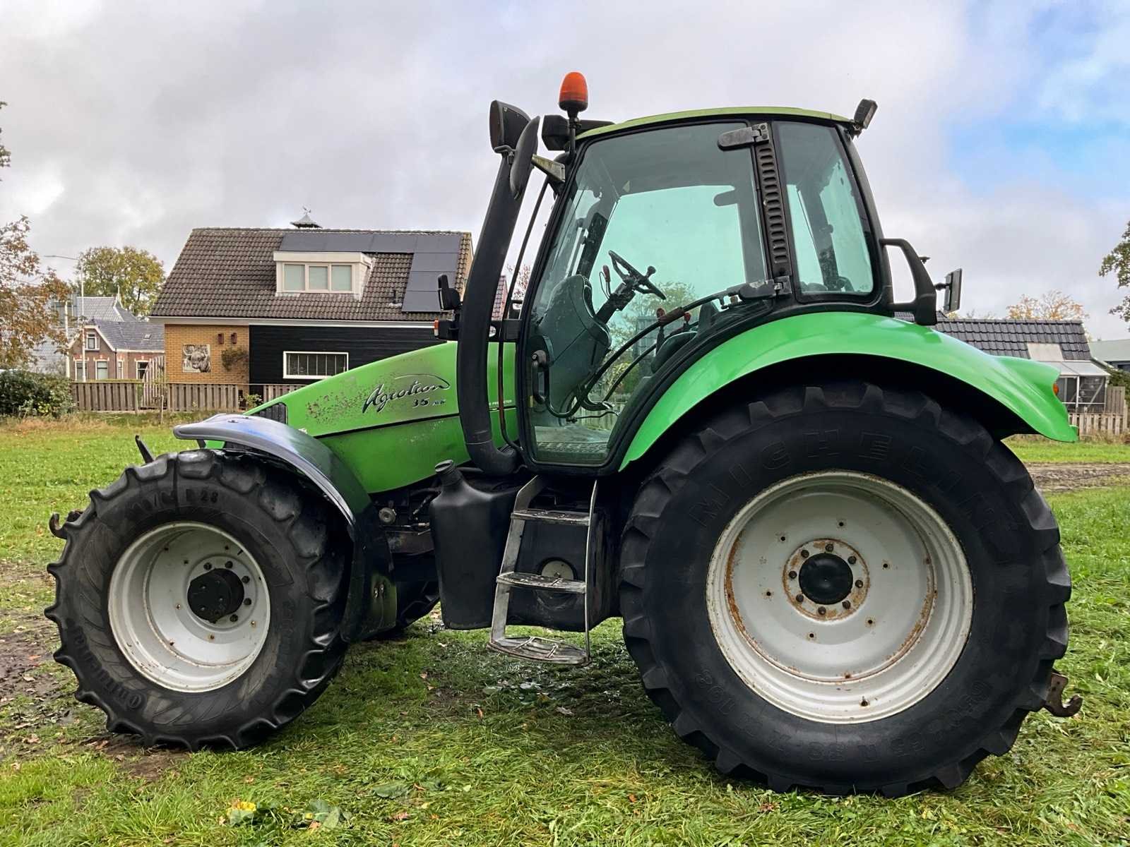 Voorzien van 6-Cil “Deutz” dieselmotor; aftakas: 540/540E/1000; kipperknobbel; 4 dubbelwerkende hydraulische ventielen; loadsensing; remventiel; spatbord bediening; fronthefinrichting; front PTO; 1 hydraulisch ventiel voor; dakraam; radio; Let op, luchtgeveerde stoel defect; Nee Merk: Deutz-Fahr Type: Agrotron 135 MK Bouwjaar: 2002 Kenteken: TXN-81-F Afgelezen urenstand: 3855 Bandenmaat voor: 540/65R28 Bandenmaat achter: 650/65R38 Fronthefinrichting: true Frontaftakas: true Cabine: true Kentekenpapieren compleet?: true Datum eerste toelating: 2002-06-30 Nationaliteit documenten: NL