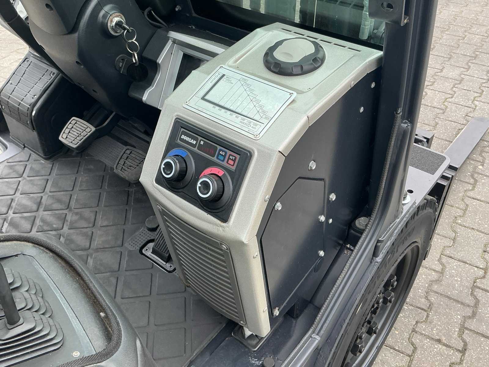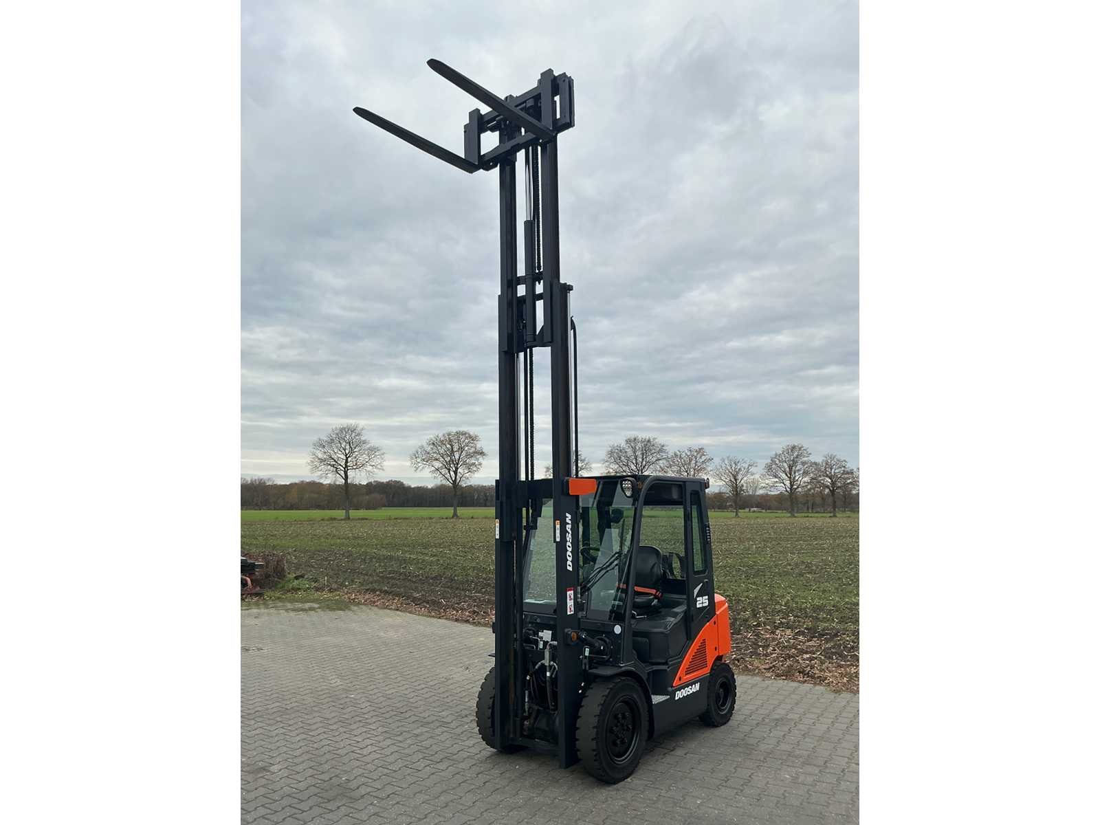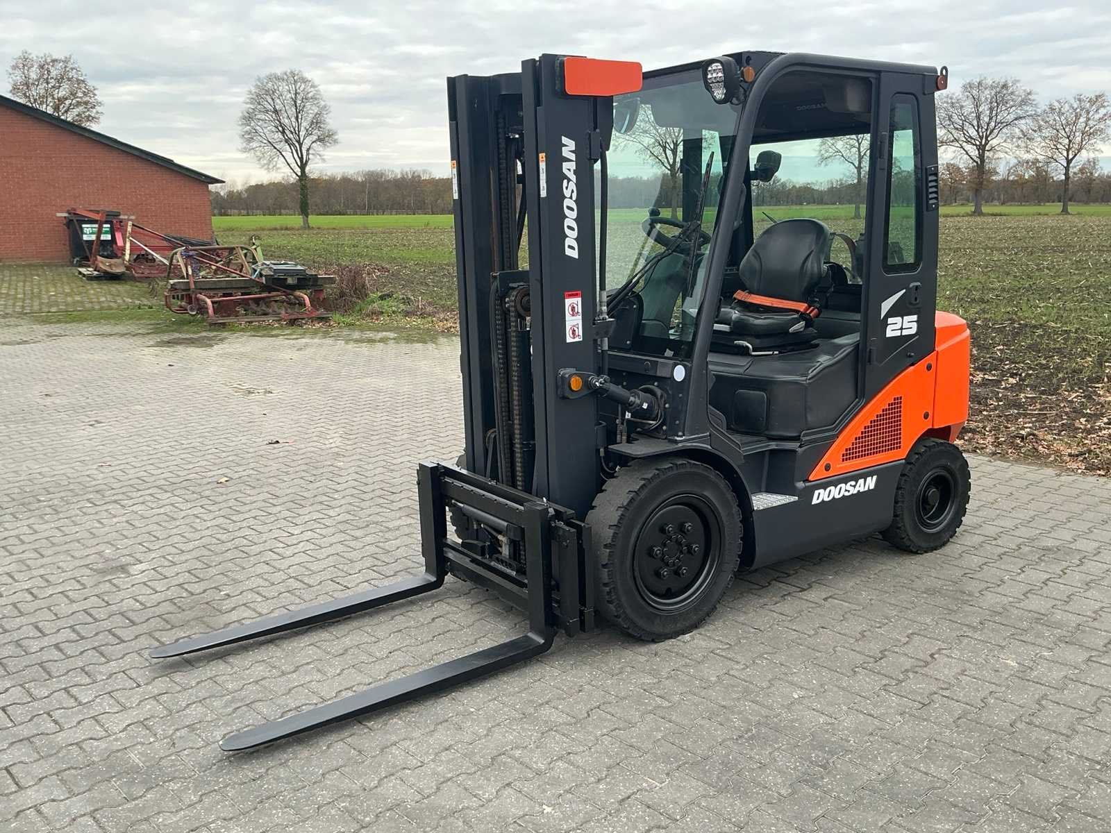 Werkverlichting, massaslot, vol opties. Nee Merk: Doosan Type: G25N-7 Bouwjaar: 2018 Brandstof: LPG Mast: Triple Soort band: Volrubber banden Aantal wielen: 4 Afgelezen urenstand: 419 Free-lift: true Side-shift: true Triple mast: true Eigen gewicht: 4266kg Hefvermogen: 2500kg Lepellengte: 1150mm Max. hefhoogte: 4730mm Vol rubber banden: true Totale afmeting L: 3800mm Totale afmeting Breedte: 1150mm Totale afmeting Hoogte: 2180mm LPG: true