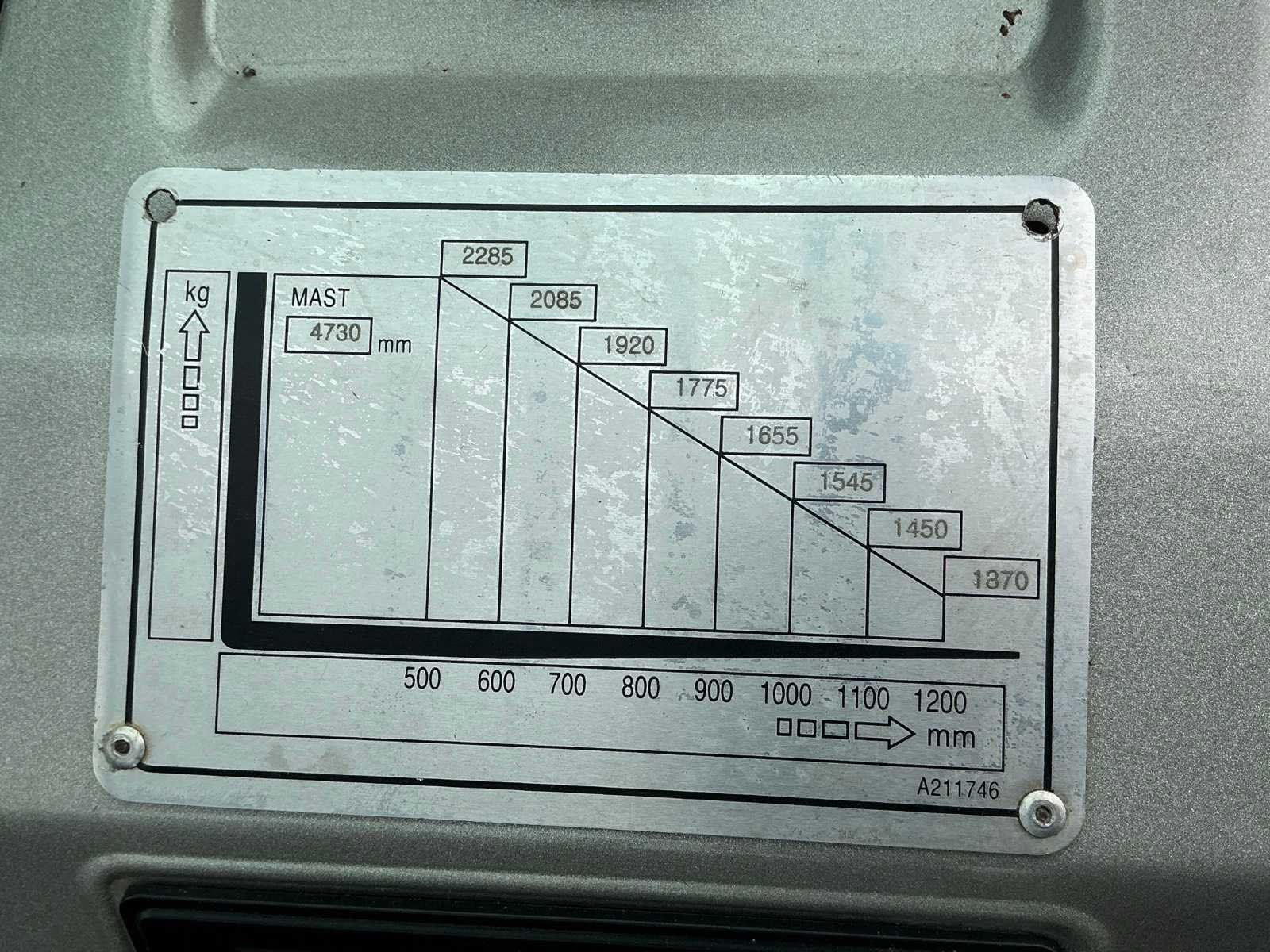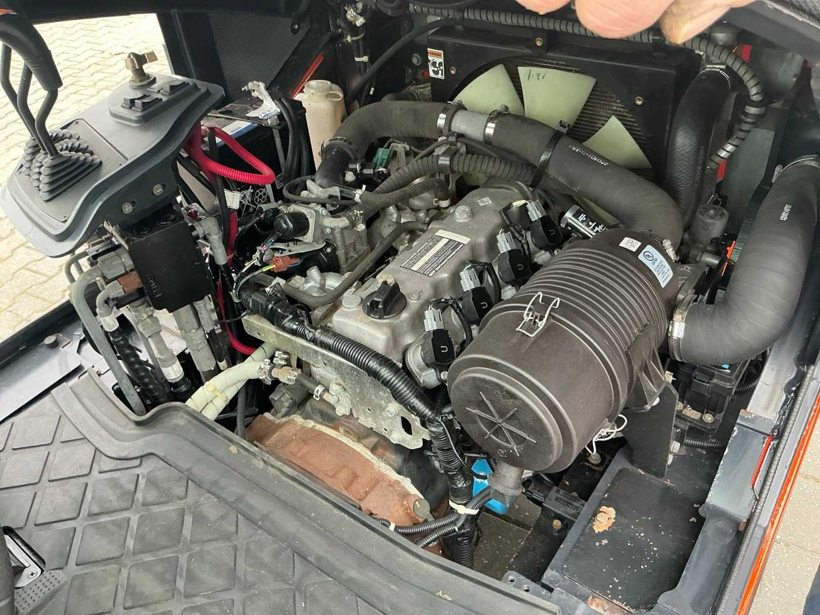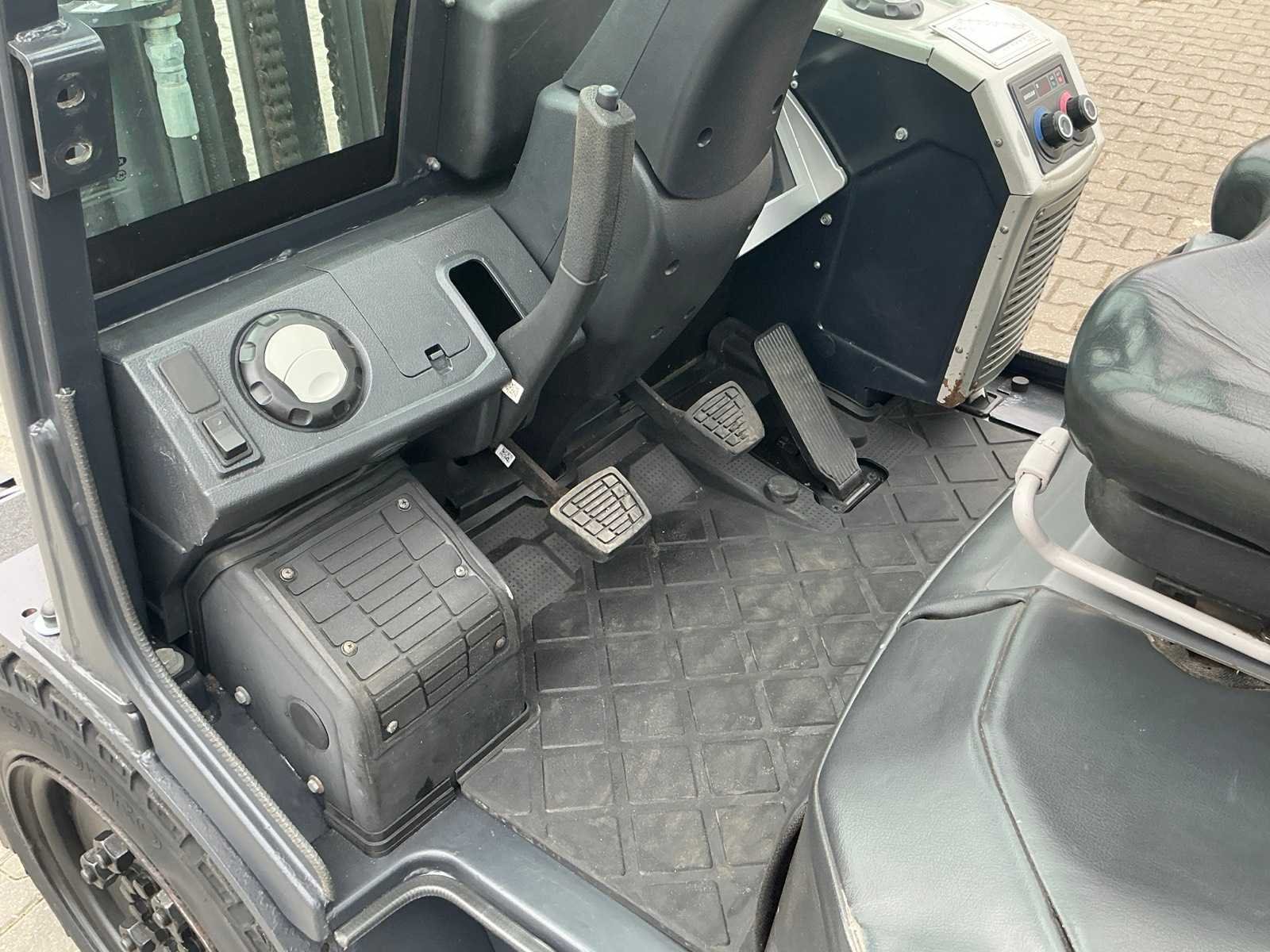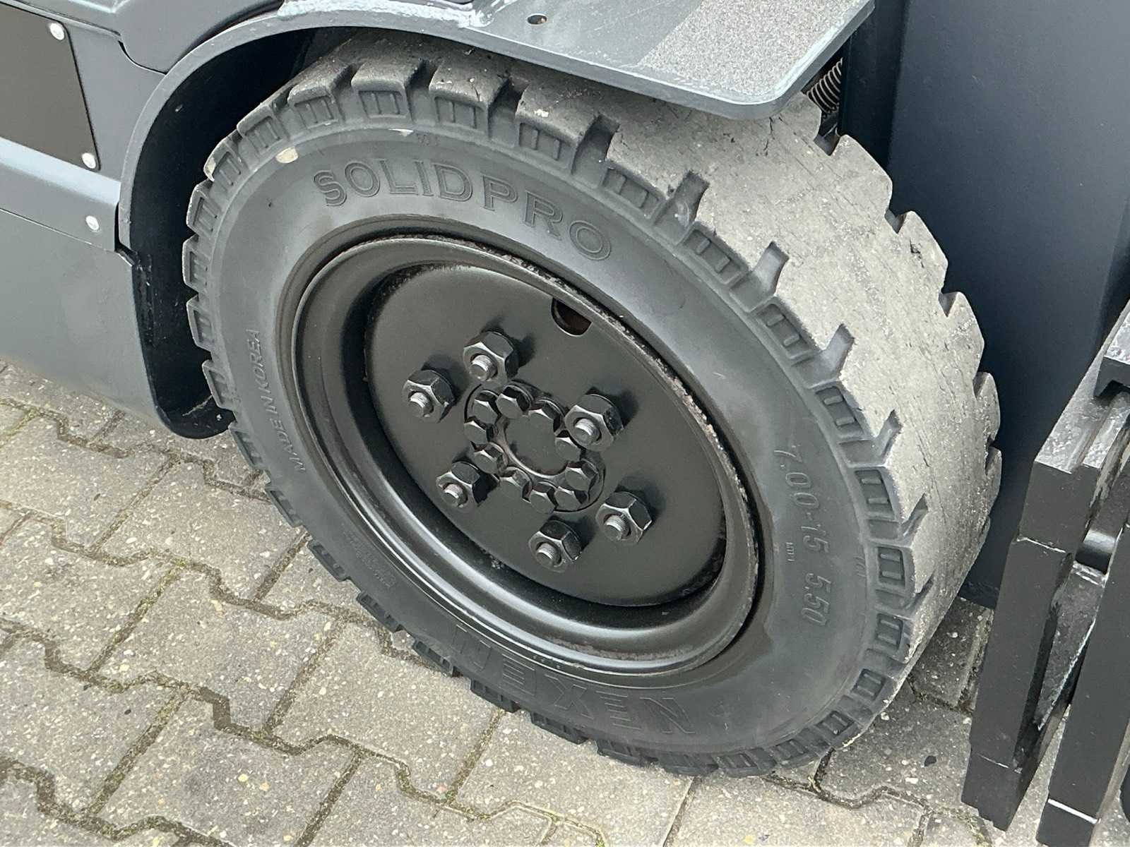Werkverlichting, massaslot, vol opties. Nee Merk: Doosan Type: G25N-7 Bouwjaar: 2018 Brandstof: LPG Mast: Triple Soort band: Volrubber banden Aantal wielen: 4 Afgelezen urenstand: 419 Free-lift: true Side-shift: true Triple mast: true Eigen gewicht: 4266kg Hefvermogen: 2500kg Lepellengte: 1150mm Max. hefhoogte: 4730mm Vol rubber banden: true Totale afmeting L: 3800mm Totale afmeting Breedte: 1150mm Totale afmeting Hoogte: 2180mm LPG: true