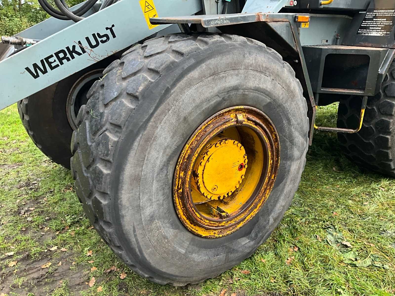 Voorzien van 6-Cil. “Cummins” Dieselmotor; luchtsysteem; trekhaak; extra hydraulische functie’s; hydraulische snelwissel; urenstand onbekend! (Display defect) Let op, versnellingsbak heeft bijgeluid; Nee Merk: Werklust Type: WG-18C Bouwjaar: 1999 Serienummer: 26875 / 16818003 Merk motor: Cummins Kenteken: TXH-36-B Aantal cilinders: 6 Brandstof: diesel Bedrijfsgewicht: 10200kg Bandenmaat: 25/65R25 Cabine: true