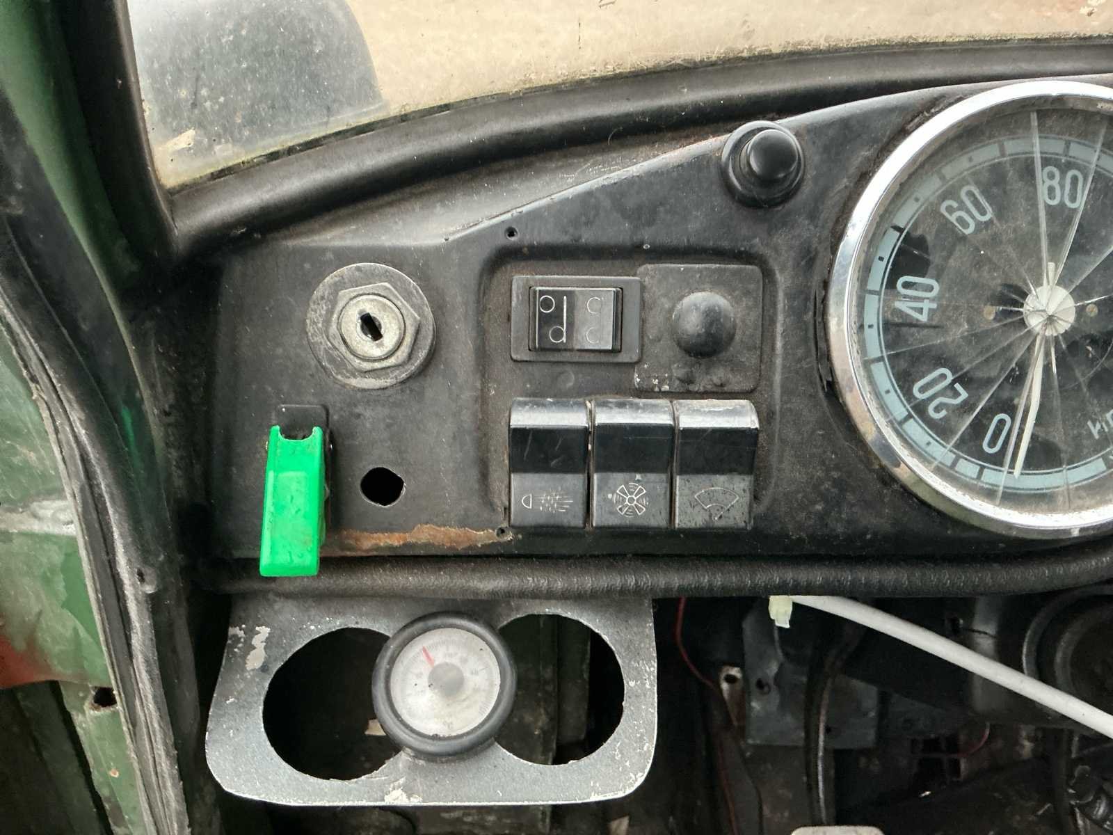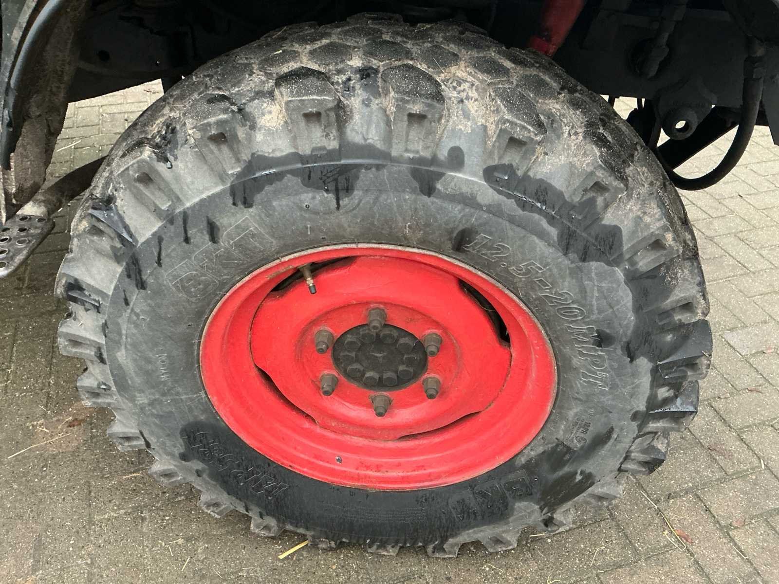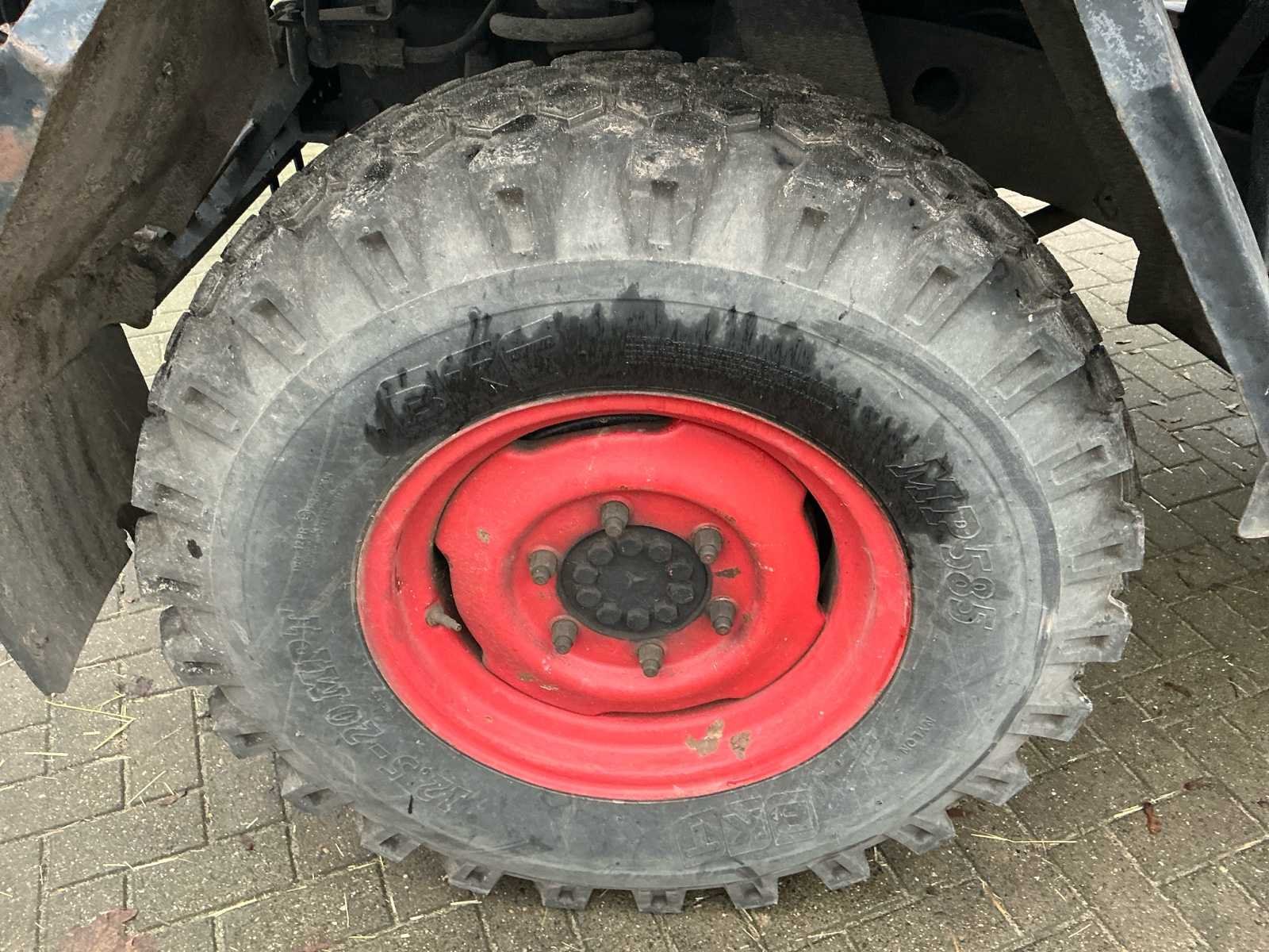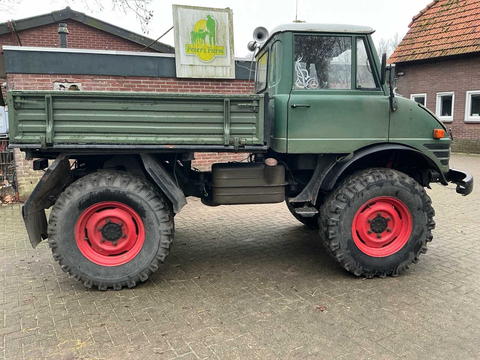 Voorzien van: trekhaak, vangmuil, werkverlichting, luchthoorn, laadbak met zijschotten, trekhaak voor, Accu's zijn zwak Nee Merk: Mercedes-Benz Type: Unimog 406 Bouwjaar: 1972 Serienummer: 121 Bouwjaar: 1972 Kenteken: T-84-DHK Type motor: Mercedes-Benz Brandstof: Diesel Eigen gewicht: 5000kg Afgelezen urenstand: 16506hr Totale afmeting L: 4000mm Totale afmeting Breedte: 2050mm Totale afmeting Hoogte: 2400mm