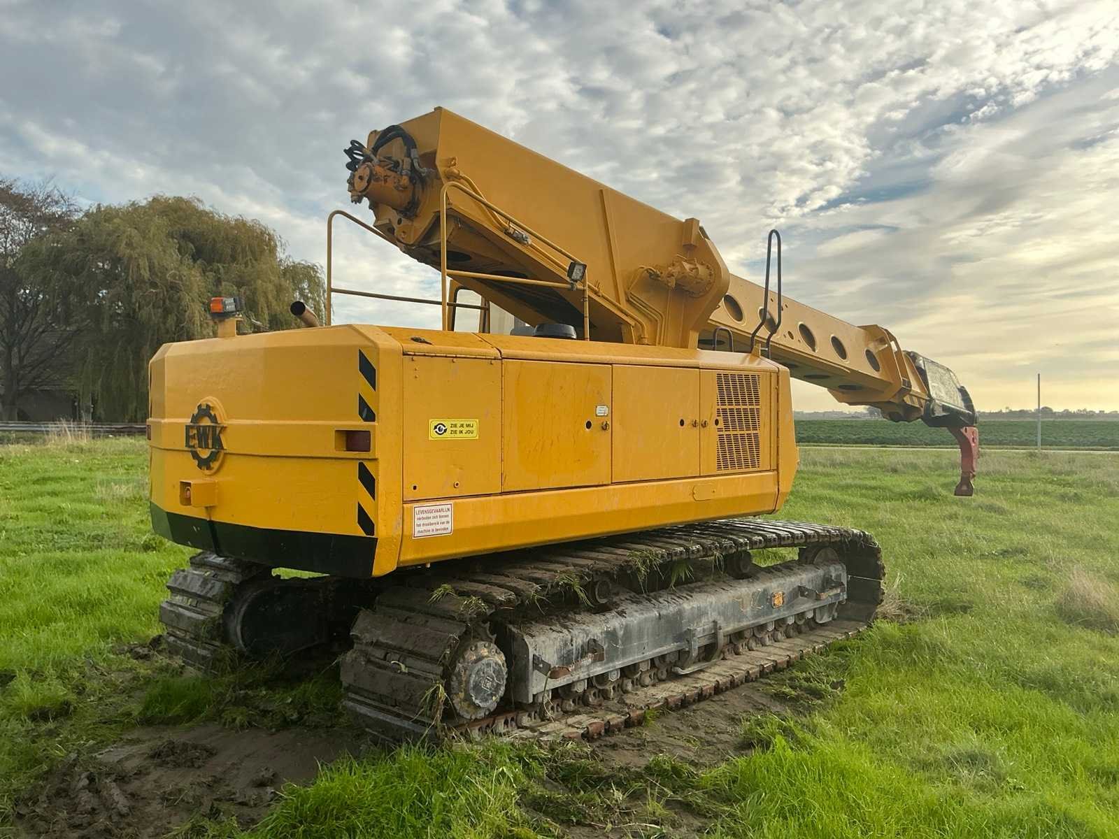 EWK TR2212 rupsgraafmachine uit 1994, geproduceerd door Eisenwerke Kaiserslautern GmbH. Voorzien van Deutz dieselmotor met zes cilinders en een vermogen van 174 kW. De machine heeft een bedrijfsgewicht van 23 500 kg, is uitgerust met cabine en graafbak, en heeft een gieklengte van 10 500 mm. Maximale graafdiepte 6 700 mm en maximaal werkbereik 11 000 mm. Rupsbreedte 600 mm, afgelezen urenstand 18 111. Totale afmetingen 10 800 × 3 000 × 3 300 mm. Serienummer 027, CE-gemarkeerd. Inclusief CW40 snelwissel voor een graafbak en een reserve schuifmast Nee Merk: EWK Type: TR2212 Bouwjaar: 1994 Serienummer: 027 Merk motor: Deutz Motorvermogen (kW): 174kW Aantal cilinders: 6 Brandstof: Diesel Bedrijfsgewicht: 23500kg Gieklengte: 10500mm Max. werkbereik: 11000mm Max. graafdiepte: 6700mm Met graafbak: true Rups breedte: 600mm Cabine: true Afgelezen urenstand: 18111 Eigen gewicht: 23500kg Totale afmeting L: 10800mm Totale afmeting Breedte: 3000mm Totale afmeting Hoogte: 3300mm