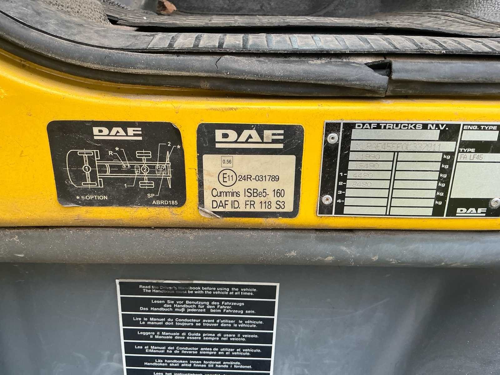Voorzien van: Airco, cruisecontrol, Euro 5, elektrische ramen, dubbel lucht, 12 ton, luchtvering, 117kw, 160pk, laadplatform 580x250x90cm. Alarm lichten, instructie boekjes. Nee Kenteken: BT-TF-58 Merk: DAF Type: LF45 Oprijwagen Bouwjaar: 2008 Chassisnummer VIN: XLRAE45FFOL337911 Cilinderinhoud: 4462cc Kilometerstand bij opname: 510886km APK vervaldatum: 2026-04-04 Datum eerste toelating: 2008-02-21 Datum eerste toelating (NL): 2008-02-21 Aantal assen: 2 Asconfiguratie: 2x2 Fuel Type: Diesel Laadvermogen: 5720kg Aantal sleutels: 2 Emissieklasse: 5 Eigen gewicht: 6380kg Totale afmeting Breedte: 2500mm Nationaliteit documenten: Nederlands Kentekenpapieren compleet?: true Aantal zitplaatsen: 2 Automaat: true Diesel: true