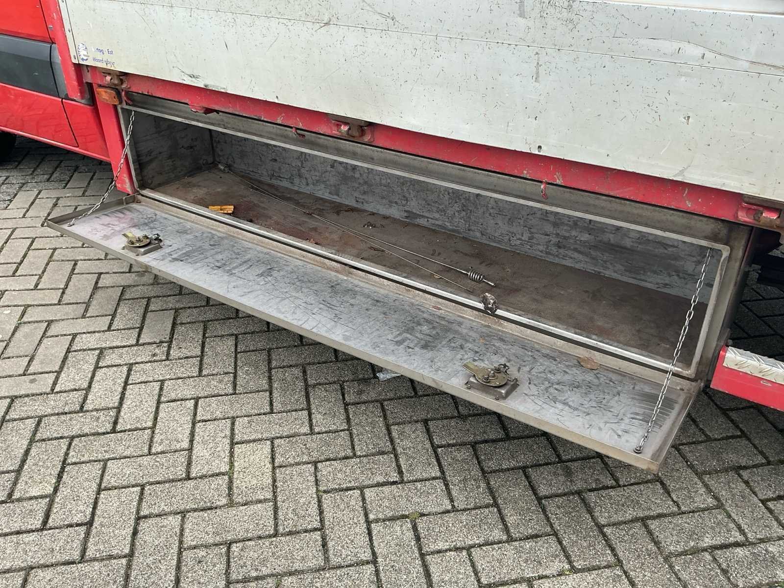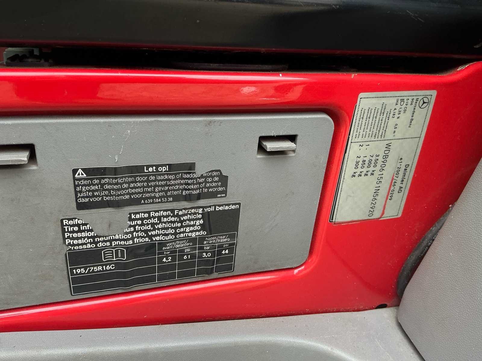 Laadruimte 220cm breed; 450cm lang; borders 36,5cm hoog laadruimte +-83cm van de grond; 3 dichte opbergklemmen en een half open opbergplek; werkverlichting en zwaaibalk op het dak Nee Kenteken: VF097X Merk: Mercedes-Benz Type: 319 3.0 CDI 432 Model: Sprinter Bouwjaar: 2013 Chassisnummer: WDB9061551N562920 Afgelezen kilometerstand: 328576km Cilinderinhoud: 2987cc Vermogen (kW): 140kW Brandstof: Diesel Datum eerste toelating: 2013-10-07 Datum eerste toelating (NL): 2013-10-07 APK vervaldatum: 2026-03-19 Transmissie: Automaat Aantal zitplaatsen: 2 Kleur: niet van toepassing Nationaliteit documenten: Nederlandsche Stuurwiel: Links Bruto BPM (NL): 14725 Aantal deuren: 0 Aantal sleutels: 1 Ledig gewicht: 2960kg Laadvermogen: 540kg Vermogen (pk): 190 Aantal cilinders: 6 Velgmaat: R16C Carrosserie: neerklapbare zijschotten Emissieklasse: 6 Kentekenpapieren compleet?: true