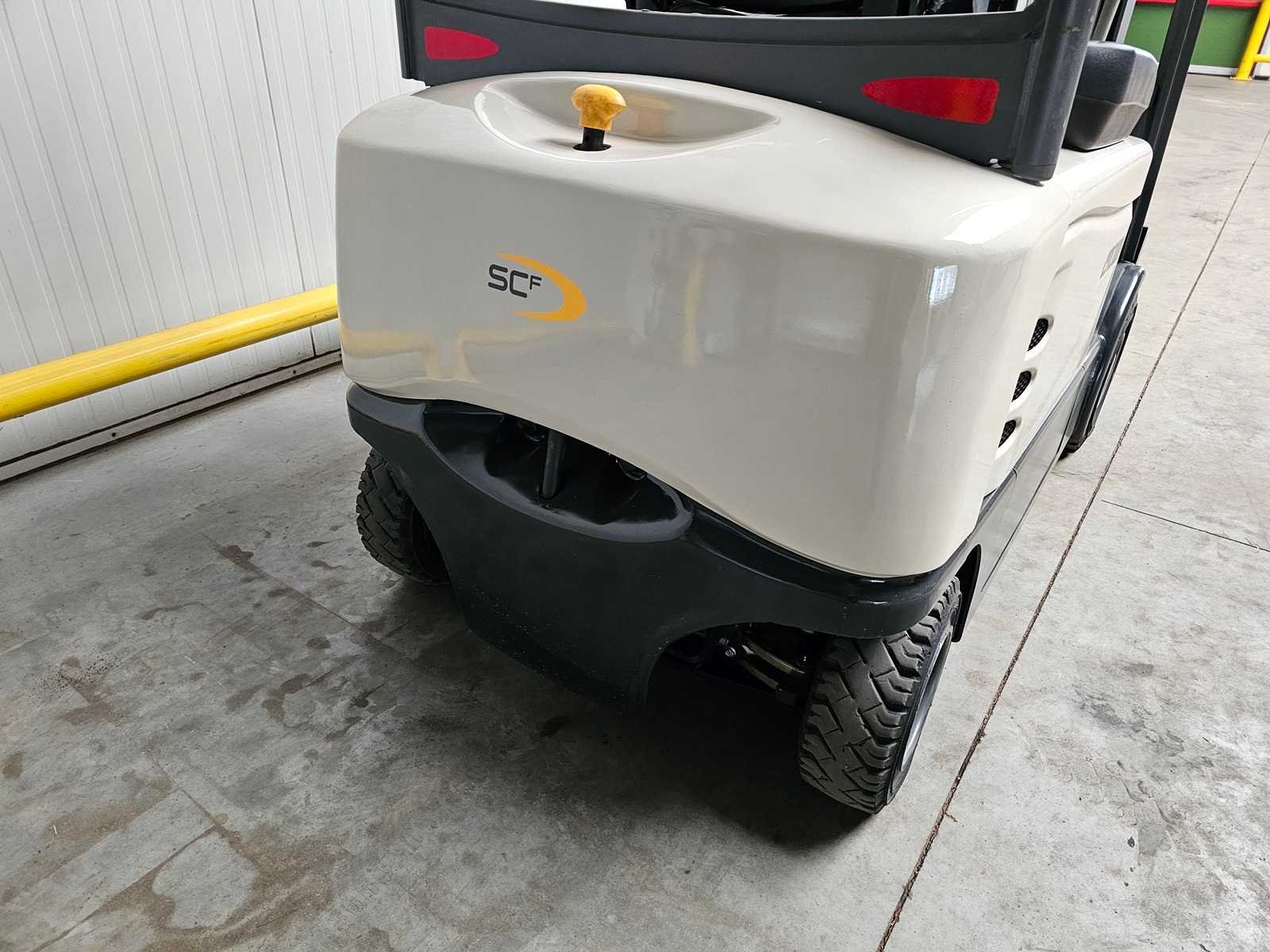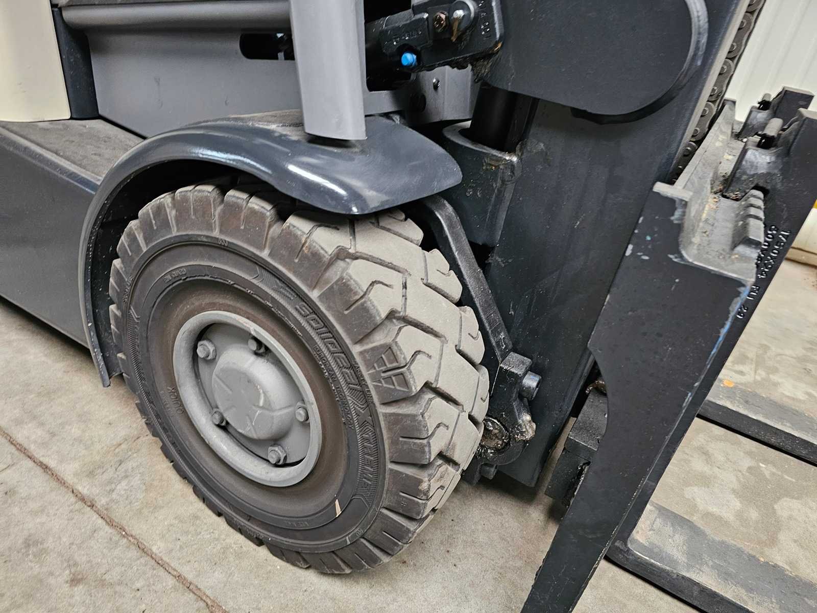 Voorzien van: Side shift, Triplo Mast, Acculader met 380V aansluiting. Nee Merk: Crown Type: SCT6040-1.6 Bouwjaar: 2018 Serienummer: 10090675 Brandstof: Elektrisch Mast: Triplo Soort band: Volrubber banden Aantal wielen: 4 Afgelezen urenstand: 952 Accu lader: true Side-shift: true Triple mast: true Eigen gewicht: 3999kg Hefvermogen: 1575kg Lepellengte: 1145mm Hefhoogte: 6120mm Vol rubber banden: true Totale afmeting L: 3200mm Totale afmeting Breedte: 1100mm Totale afmeting Hoogte: 2550mm Leveringsvoorwaarden: Geladen op vrachtwagen