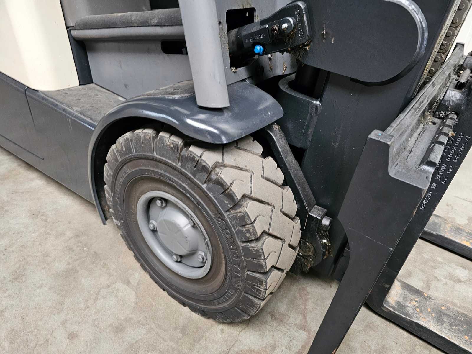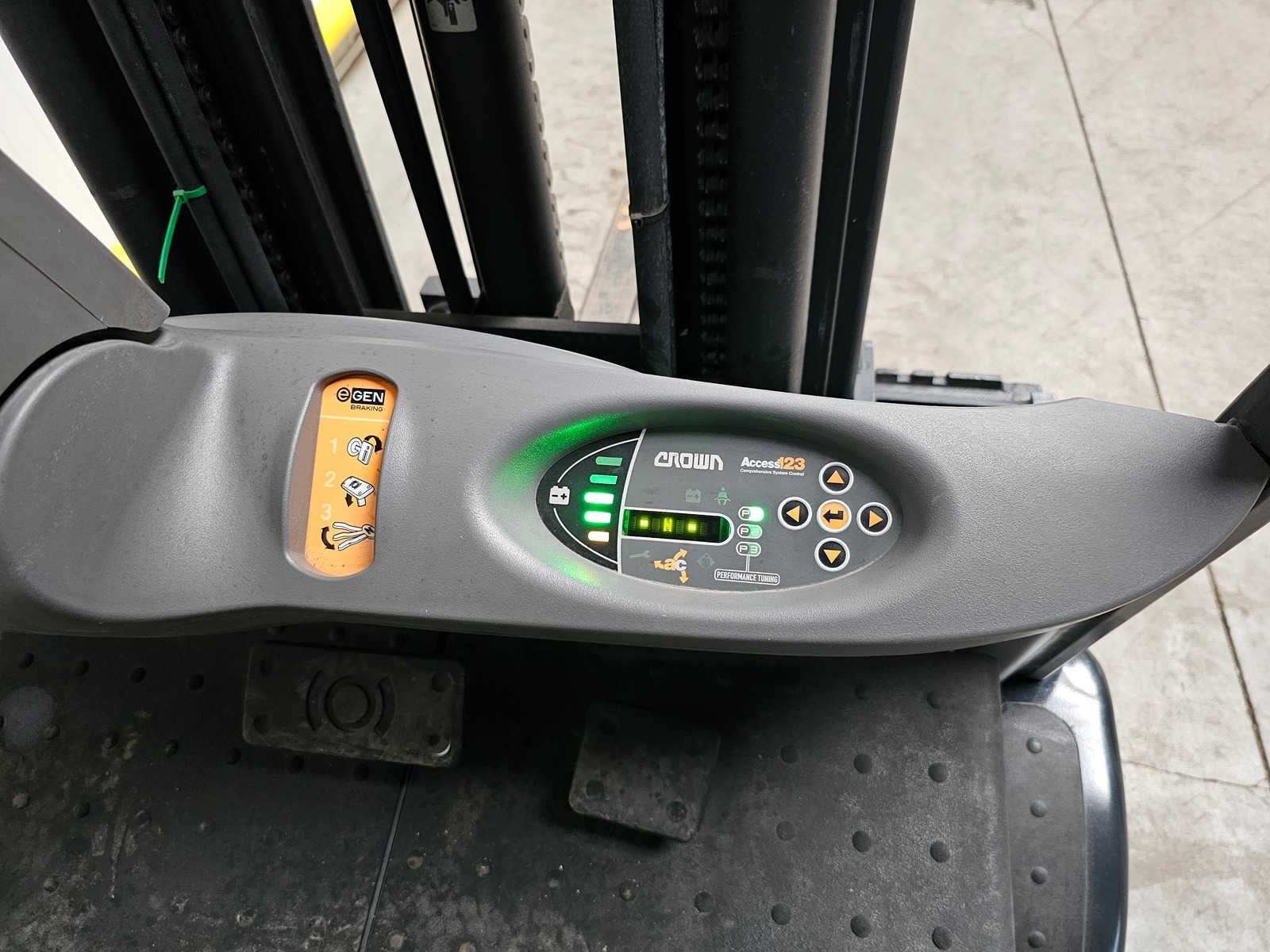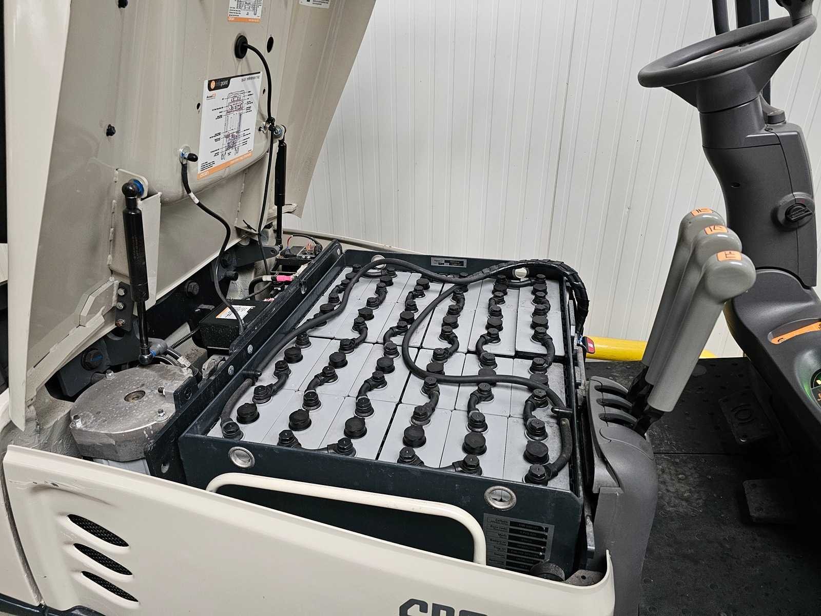 Voorzien van: Side shift, Triplo Mast, Acculader met 380V aansluiting. Nee Merk: Crown Type: SCT6040-1.6 Bouwjaar: 2018 Serienummer: 10090674 Brandstof: Elektrisch Mast: Triplo Soort band: Volrubber banden Aantal wielen: 4 Afgelezen urenstand: 1743 Accu lader: true Side-shift: true Triple mast: true Eigen gewicht: 3999kg Hefvermogen: 1575kg Lepellengte: 1145mm Hefhoogte: 6120mm Vol rubber banden: true Totale afmeting L: 3200mm Totale afmeting Breedte: 1100mm Totale afmeting Hoogte: 2550mm Leveringsvoorwaarden: Geladen op vrachtwagen
