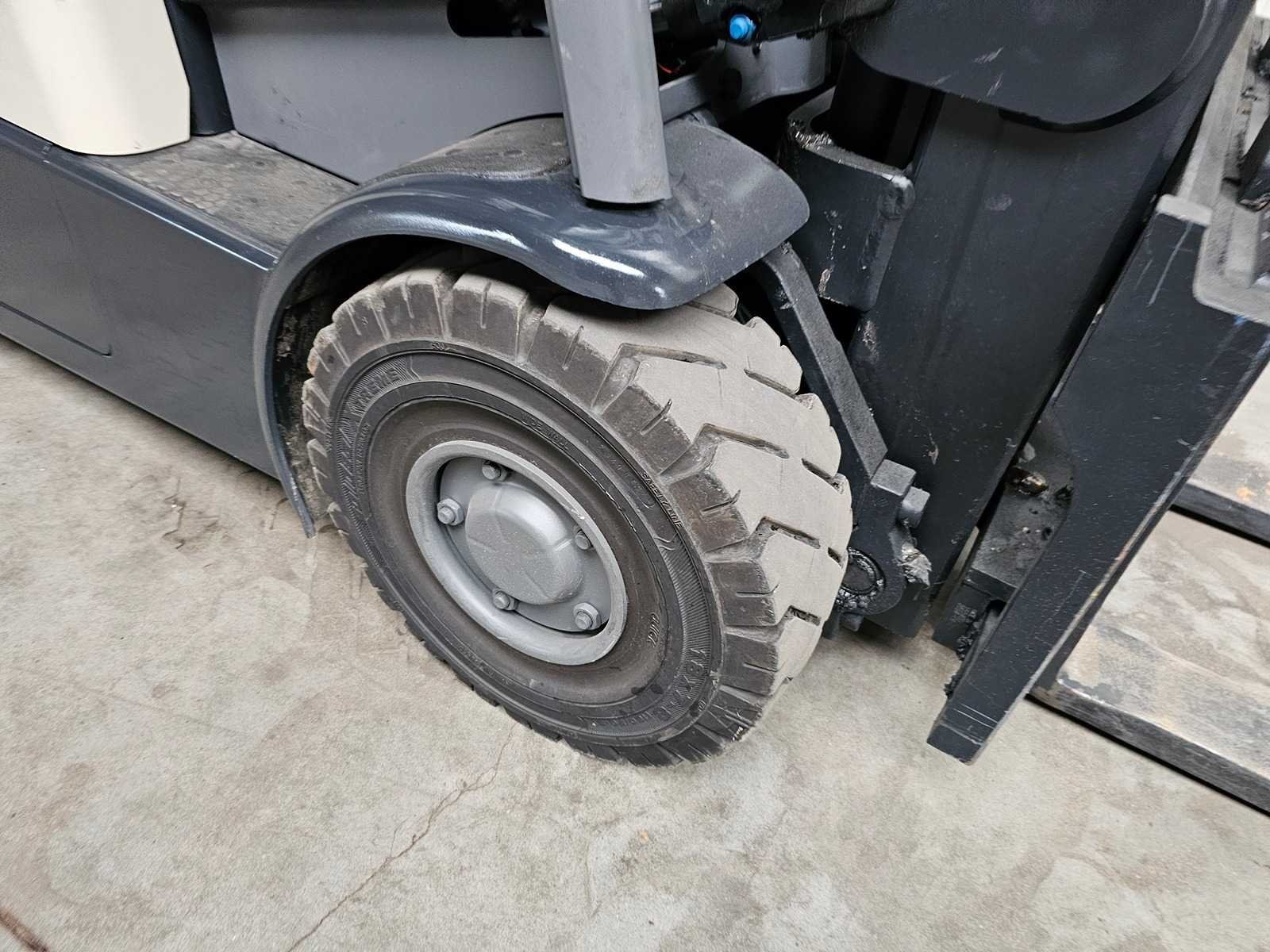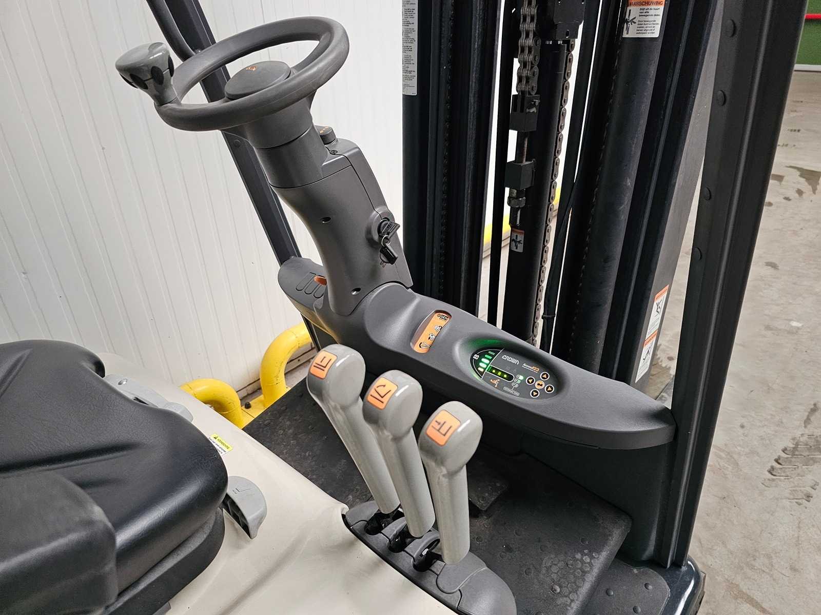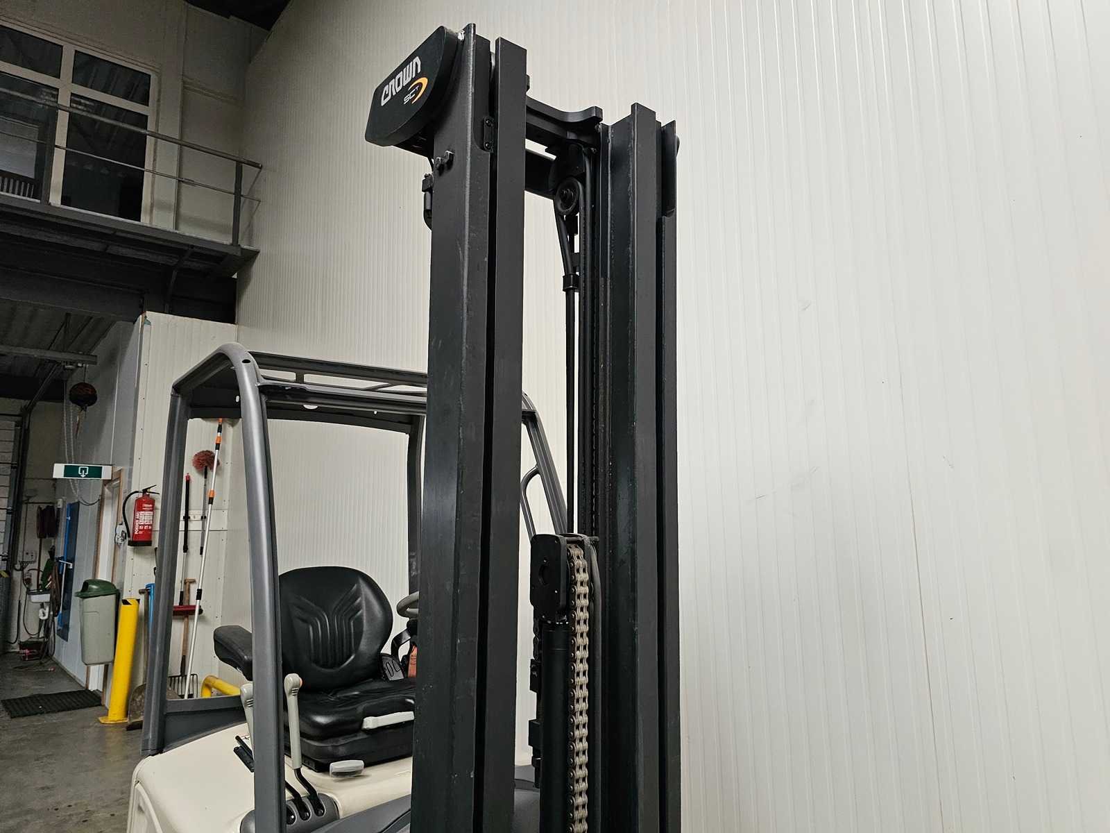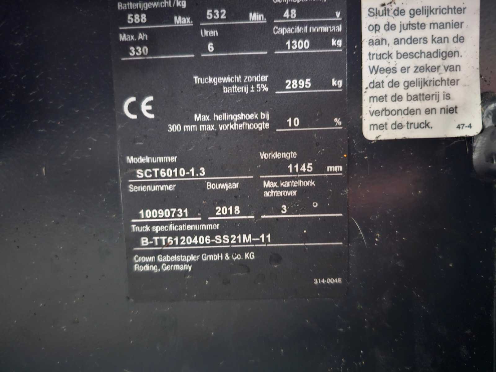 Voorzien van: Side shift, Triplo Mast, Acculader met 380V aansluiting. Nee Merk: Crown Type: SCT6010-1.3 Bouwjaar: 2018 Serienummer: 10090731 Brandstof: Elektrisch Mast: Triplo Soort band: Volrubber banden Aantal wielen: 3 Afgelezen urenstand: 3024 Accu lader: true Side-shift: true Triple mast: true Eigen gewicht: 3440kg Hefvermogen: 1275kg Lepellengte: 1145mm Hefhoogte: 6120mm Vol rubber banden: true Totale afmeting L: 2900mm Totale afmeting Breedte: 1100mm Totale afmeting Hoogte: 2550mm Leveringsvoorwaarden: Geladen op vrachtwagen