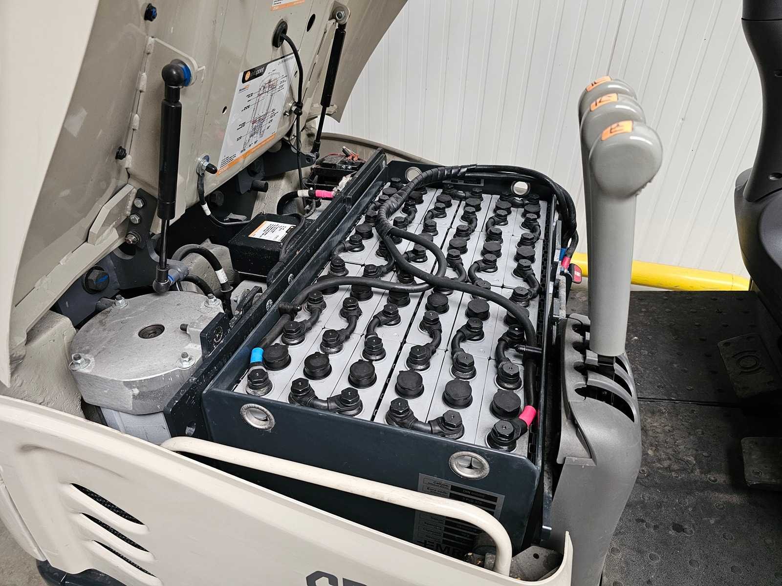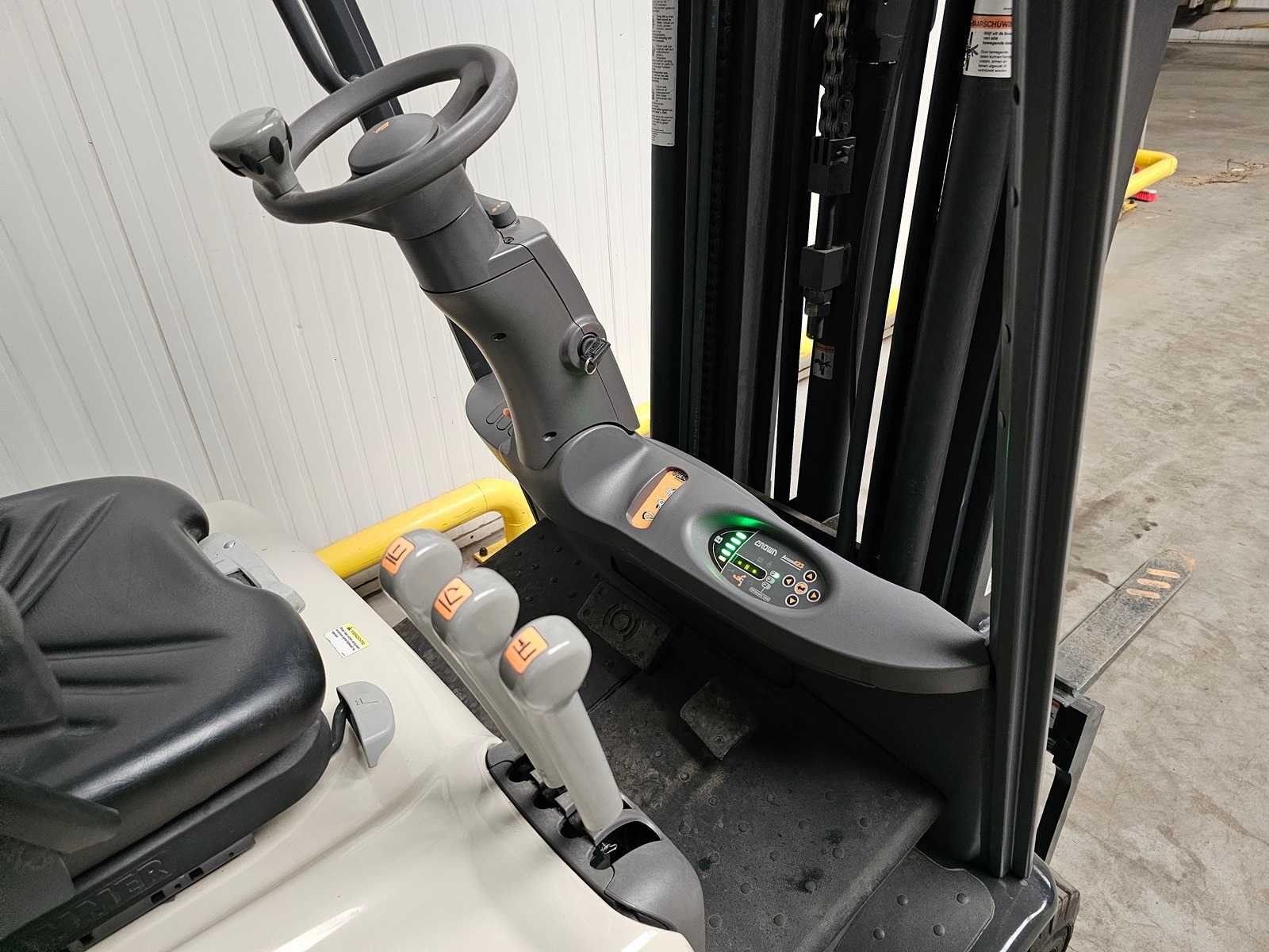 Voorzien van: Side shift, Triplo Mast, Acculader met 380V aansluiting. Nee Merk: Crown Type: SCT6010-1.3 Bouwjaar: 2018 Serienummer: 10090730 Brandstof: Elektrisch Mast: Triplo Soort band: Volrubber banden Aantal wielen: 3 Afgelezen urenstand: 1953 Accu lader: true Side-shift: true Triple mast: true Eigen gewicht: 3440kg Hefvermogen: 1275kg Lepellengte: 1145mm Hefhoogte: 6120mm Vol rubber banden: true Totale afmeting L: 2900mm Totale afmeting Breedte: 1100mm Totale afmeting Hoogte: 2550mm Leveringsvoorwaarden: Geladen op vrachtwagen