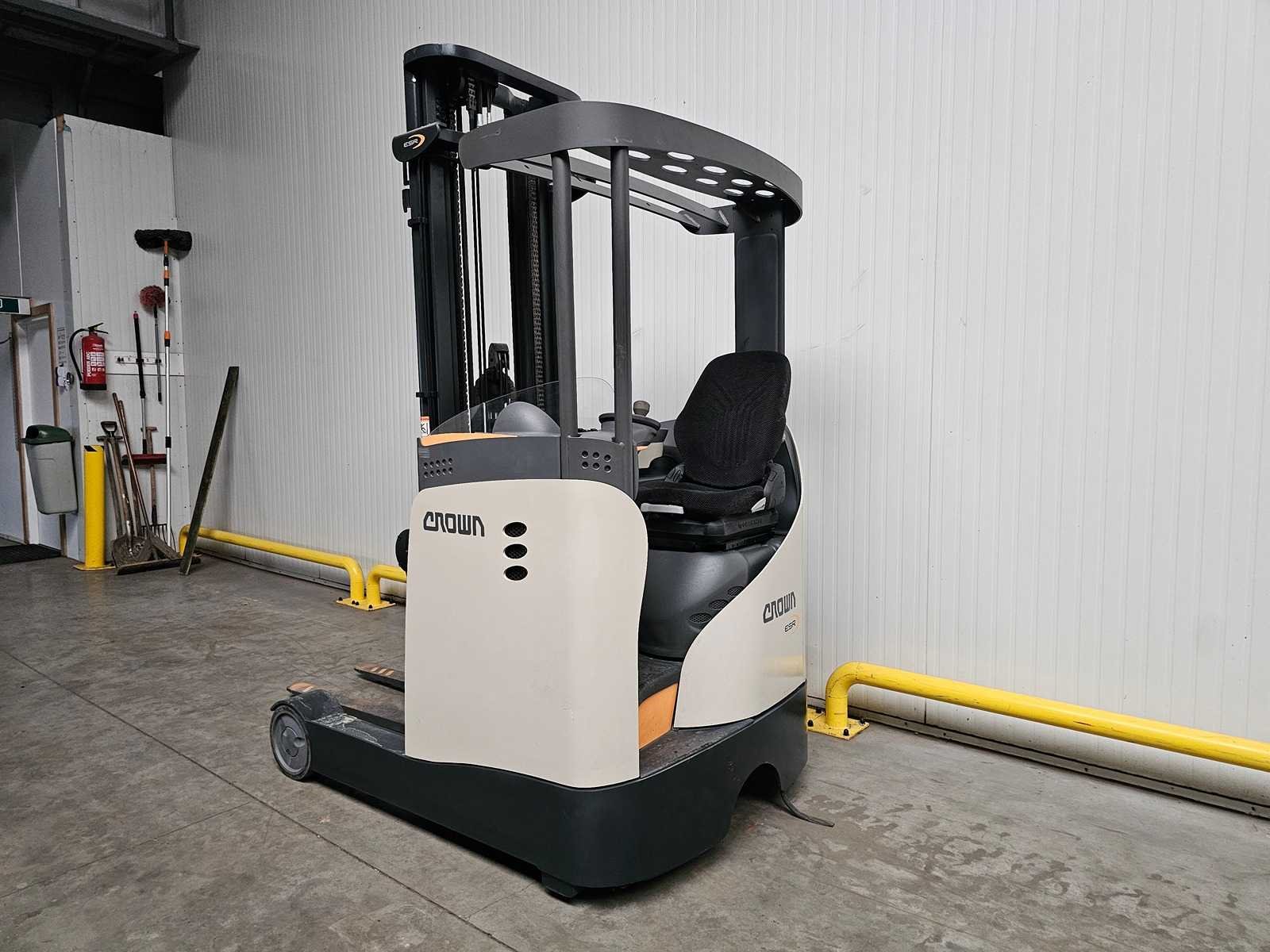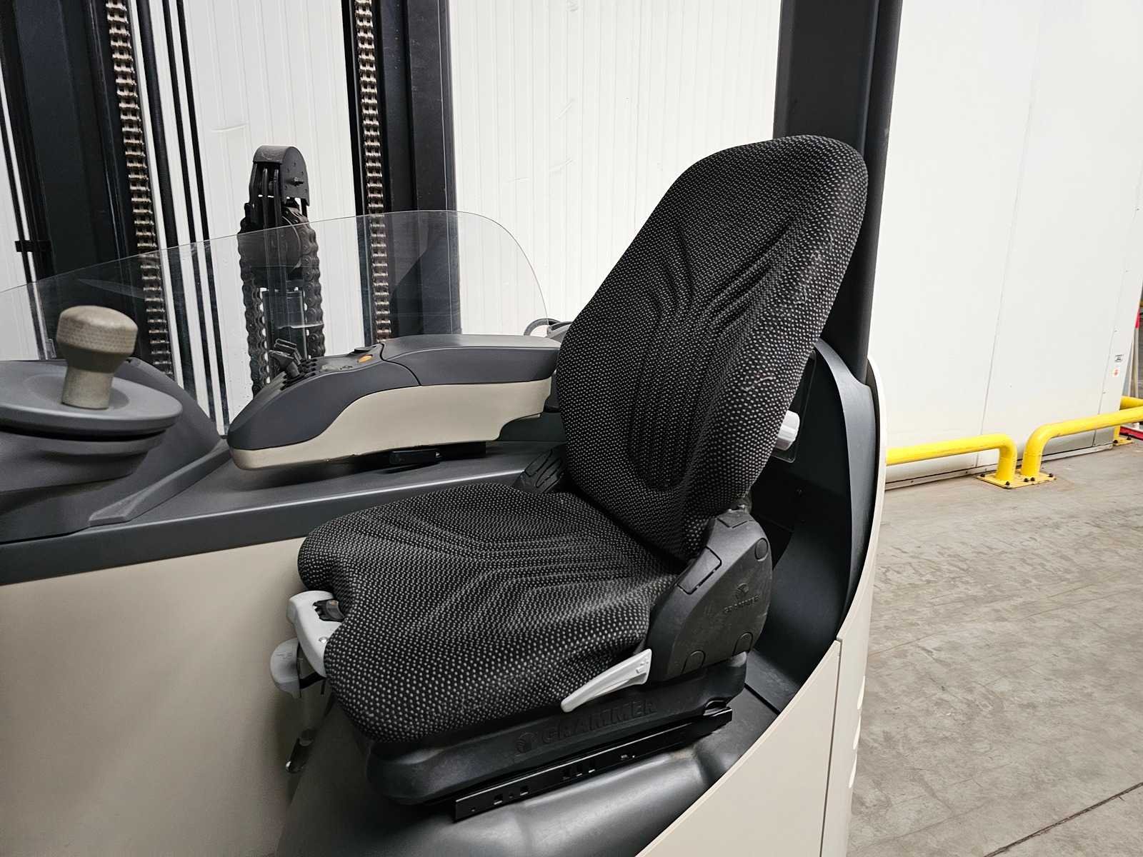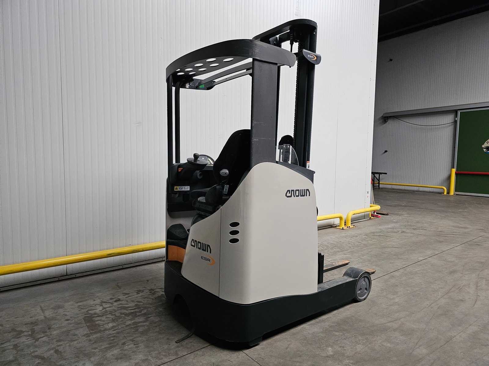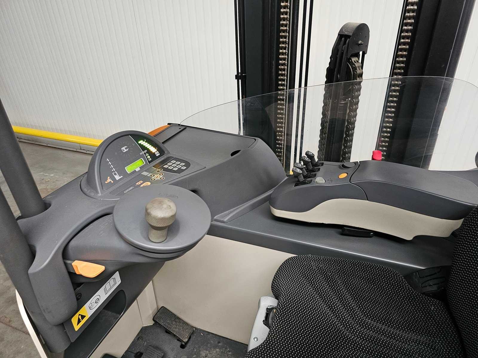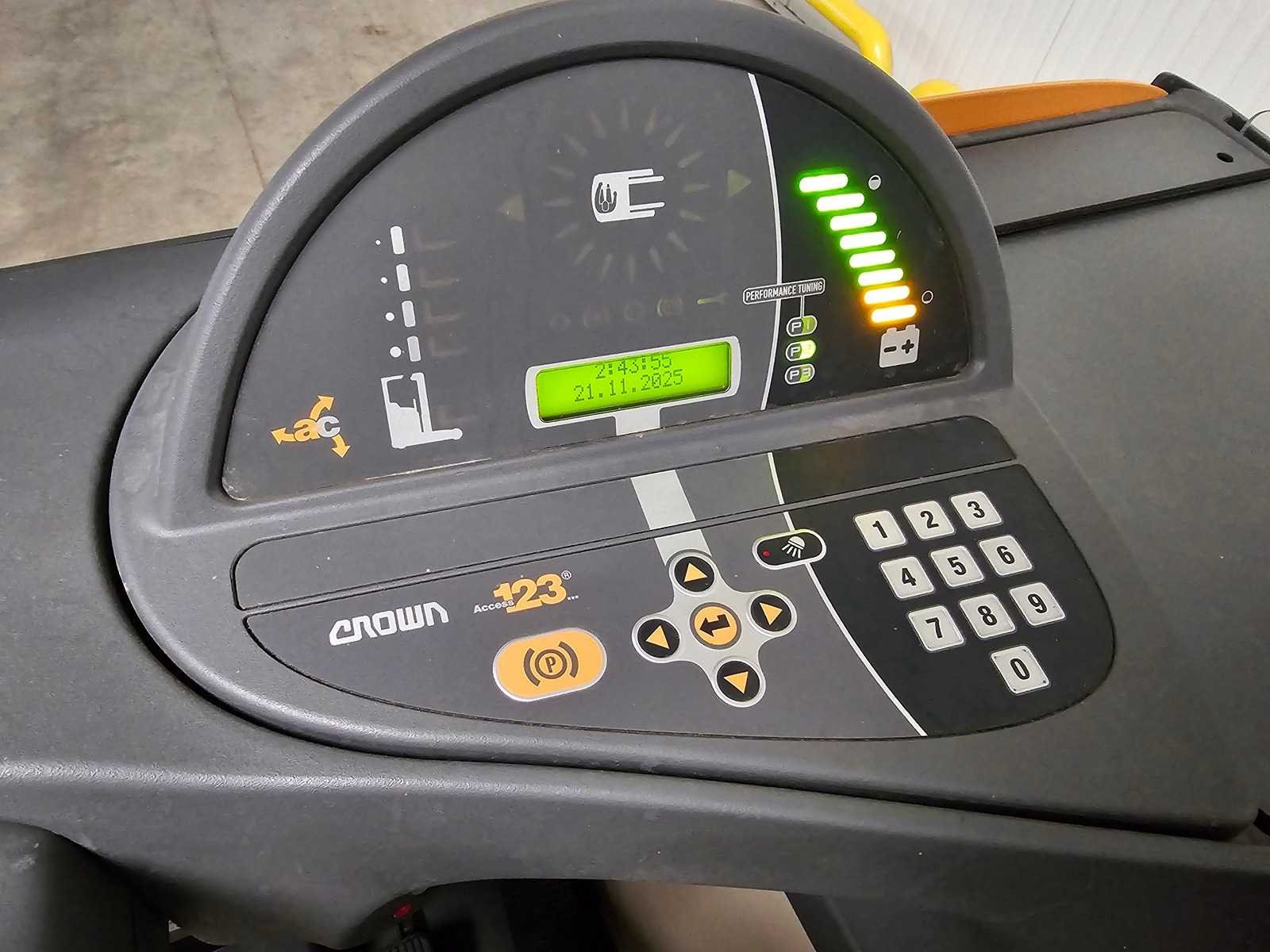 Voorzien van: Side shift, Triplo Mast, Acculader met 380V aansluiting. Nee Merk: Crown Type: ESR 5240-14 Bouwjaar: 2018 Serienummer: 5A234402 Brandstof: Electrisch Mast: Triplo Soort band: Vol rubber Aantal wielen: 3 Afgelezen urenstand: 1631 Accu lader: true Free-lift: true Side-shift: true Triple mast: true Eigen gewicht: 3370kg Hefvermogen: 1400kg Lepellengte: 1145mm Hefhoogte: 6190mm Totale afmeting L: 2400mm Totale afmeting Breedte: 1300mm Totale afmeting Hoogte: 2600mm Elektrisch: true Vol rubber banden: true Leveringsvoorwaarden: Geladen op vrachtwagen