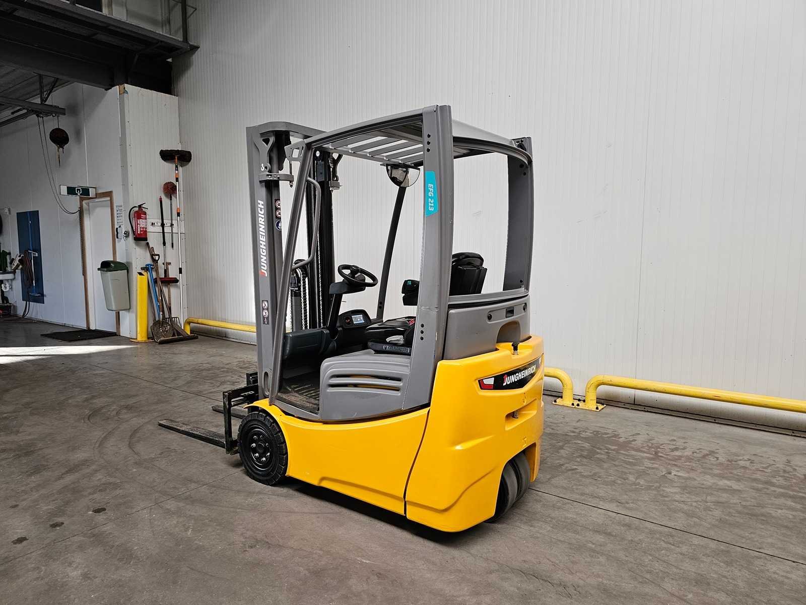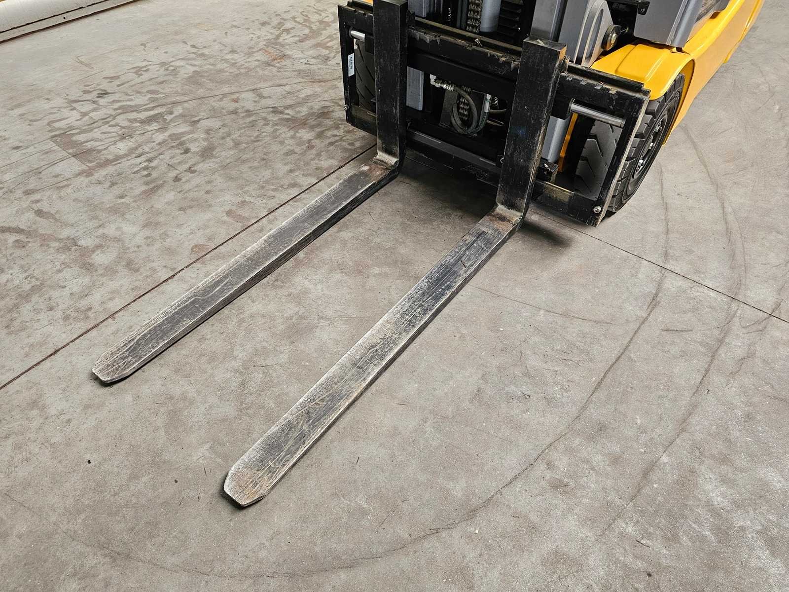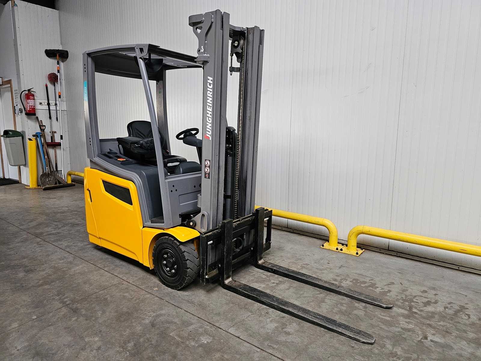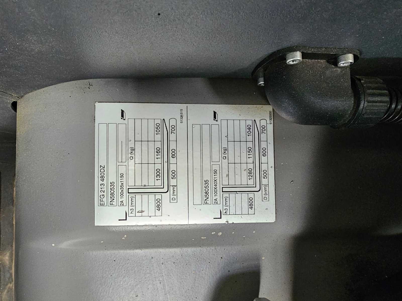 Voorzien van: Side shift, Triplo Mast, Acculader met 380V aansluiting. Nee Merk: Jung Heinrich Type: EFG 213 Bouwjaar: 2018 Serienummer: FN580535 Brandstof: Elektrisch Mast: Triplo Soort band: Volrubber banden Aantal wielen: 3 Afgelezen urenstand: 4800 Accu lader: true Side-shift: true Triple mast: true Eigen gewicht: 3032kg Hefvermogen: 1300kg Lepellengte: 1150mm Hefhoogte: 4800mm Vol rubber banden: true Totale afmeting L: 2900mm Totale afmeting Breedte: 1100mm Totale afmeting Hoogte: 2150mm Leveringsvoorwaarden: Geladen op vrachtwagen