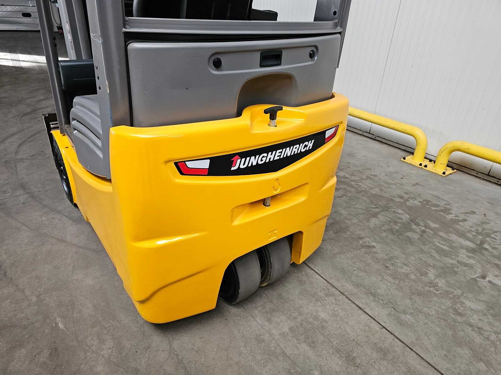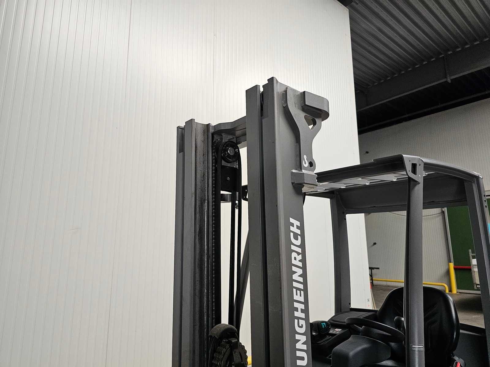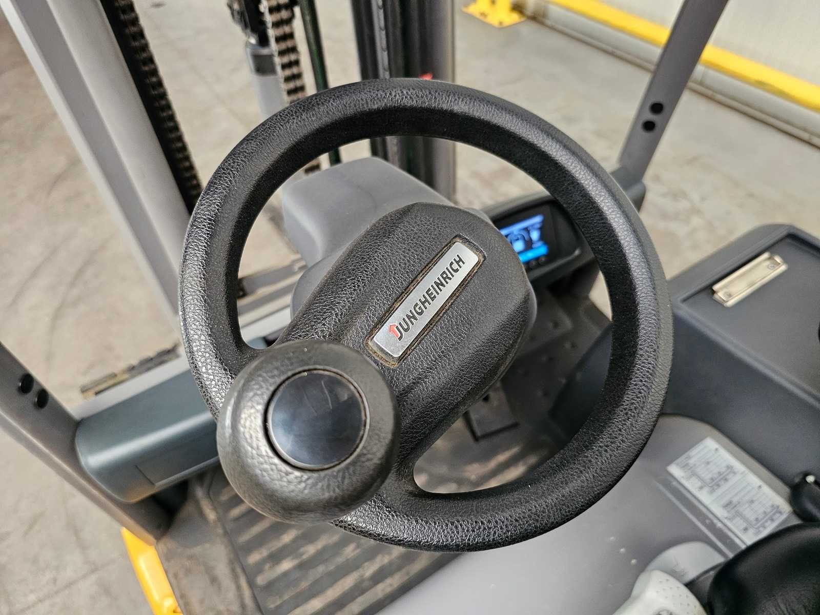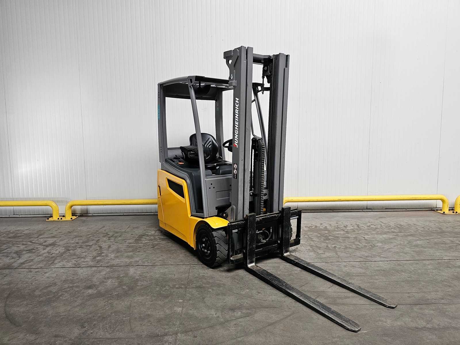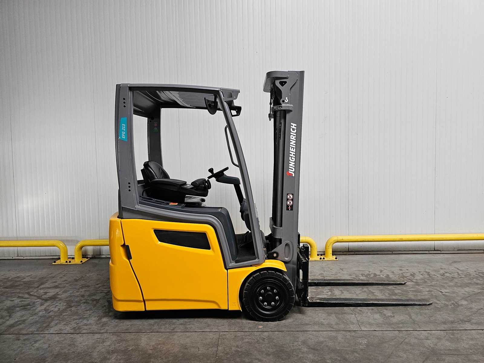 Voorzien van: Side shift, Triplo Mast, Acculader met 380V aansluiting. Nee Merk: Jung Heinrich Type: EFG 213 Bouwjaar: 2018 Serienummer: FN580535 Brandstof: Elektrisch Mast: Triplo Soort band: Volrubber banden Aantal wielen: 3 Afgelezen urenstand: 4800 Accu lader: true Side-shift: true Triple mast: true Eigen gewicht: 3032kg Hefvermogen: 1300kg Lepellengte: 1150mm Hefhoogte: 4800mm Vol rubber banden: true Totale afmeting L: 2900mm Totale afmeting Breedte: 1100mm Totale afmeting Hoogte: 2150mm Leveringsvoorwaarden: Geladen op vrachtwagen