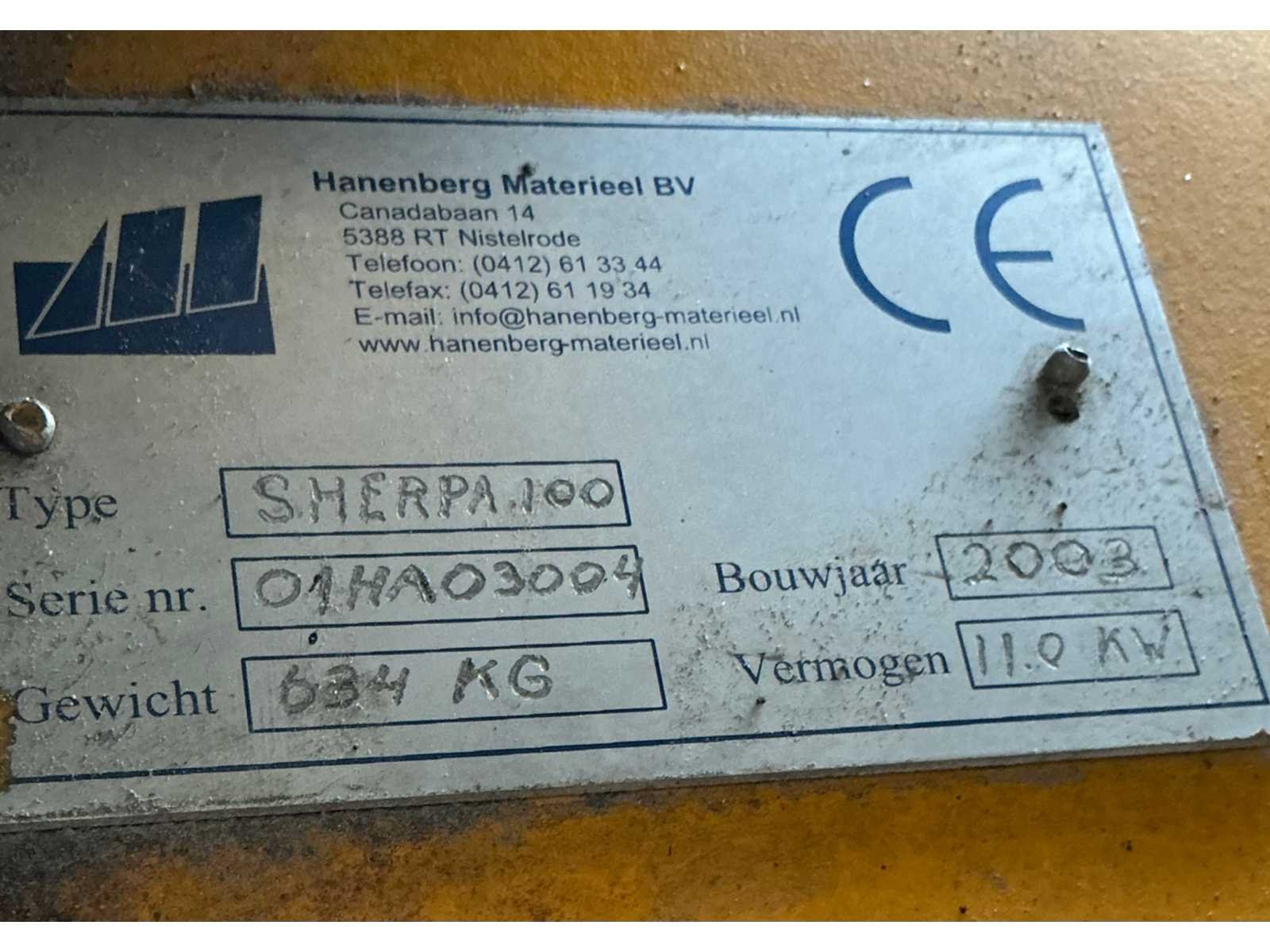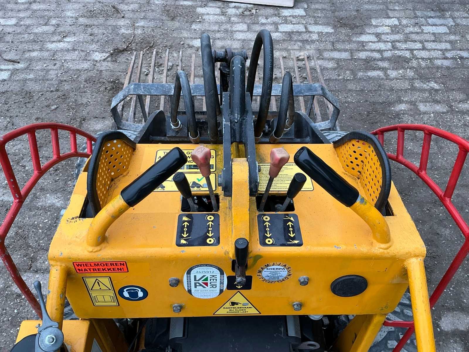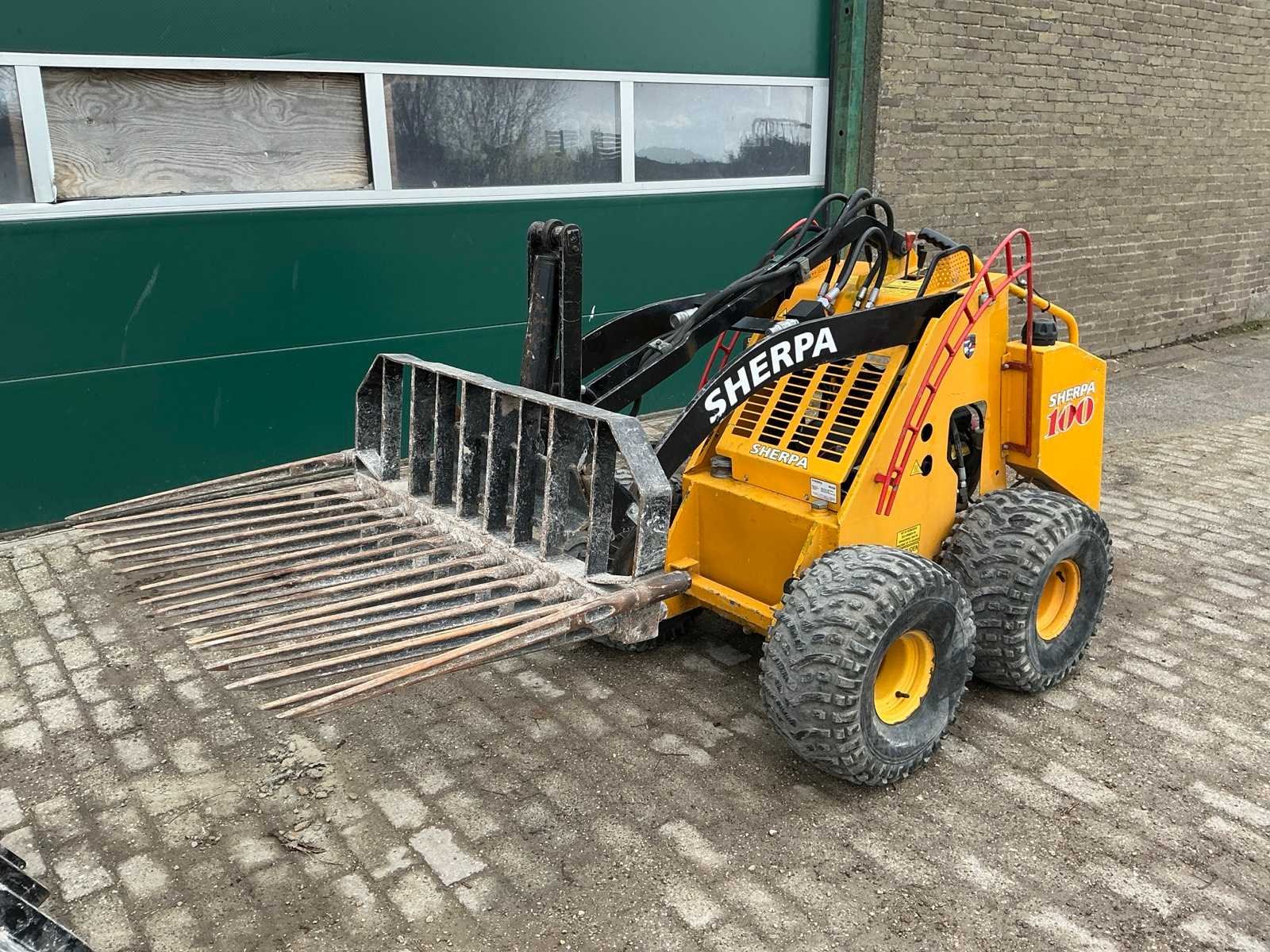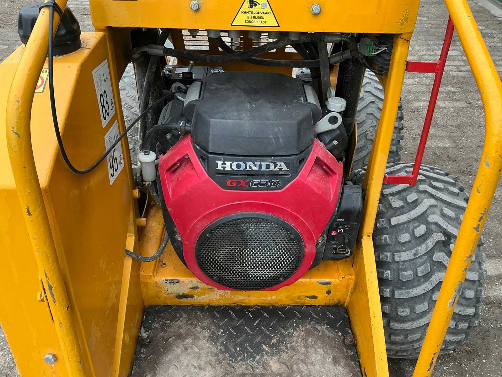 Voorzien: Honda GX630 viertakt 15,5kw benzinemotor met elektrische start, tegelriek, grondbak, luchtbanden, hydrauliekaansluiting. Nee Merk: Sherpa Type: 100 Bouwjaar: 2003 Serienummer: 01HA03004 Merk motor: Honda GX630 Motorvermogen (kW): 15.5kW Aantal cilinders: 2 Brandstof: Benzine Bandenmaat: 22 x 11.00 Graafbak afm. l: 550mm Graafbak afm. b: 1100mm Graafbak afm. h: 400mm Eigen gewicht: 640kg Totale afmeting L: 2400mm Totale afmeting Breedte: 1200mm Totale afmeting Hoogte: 1300mm