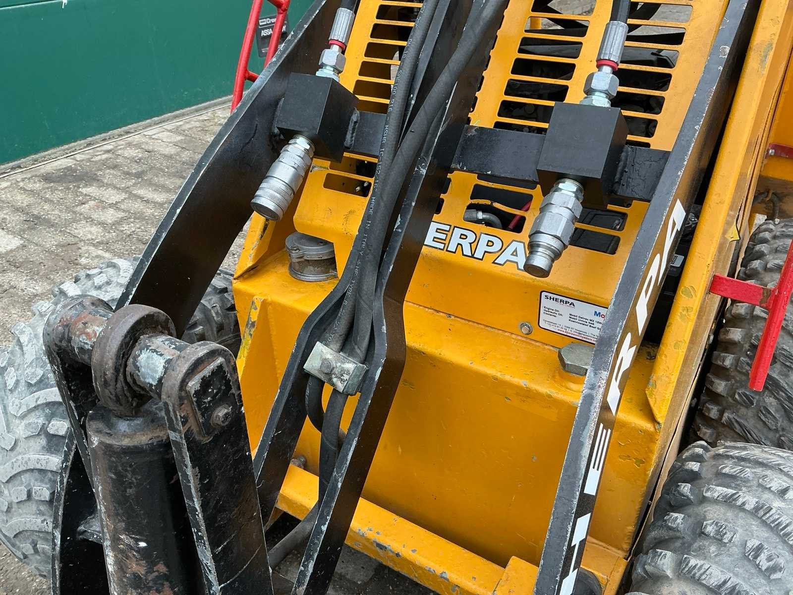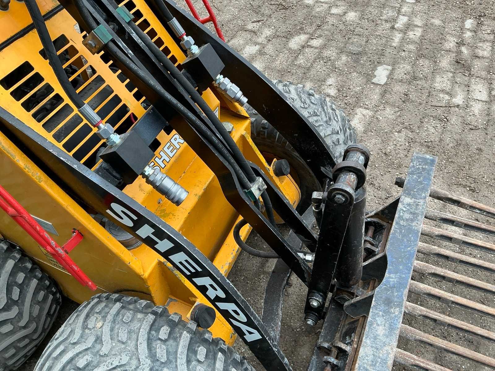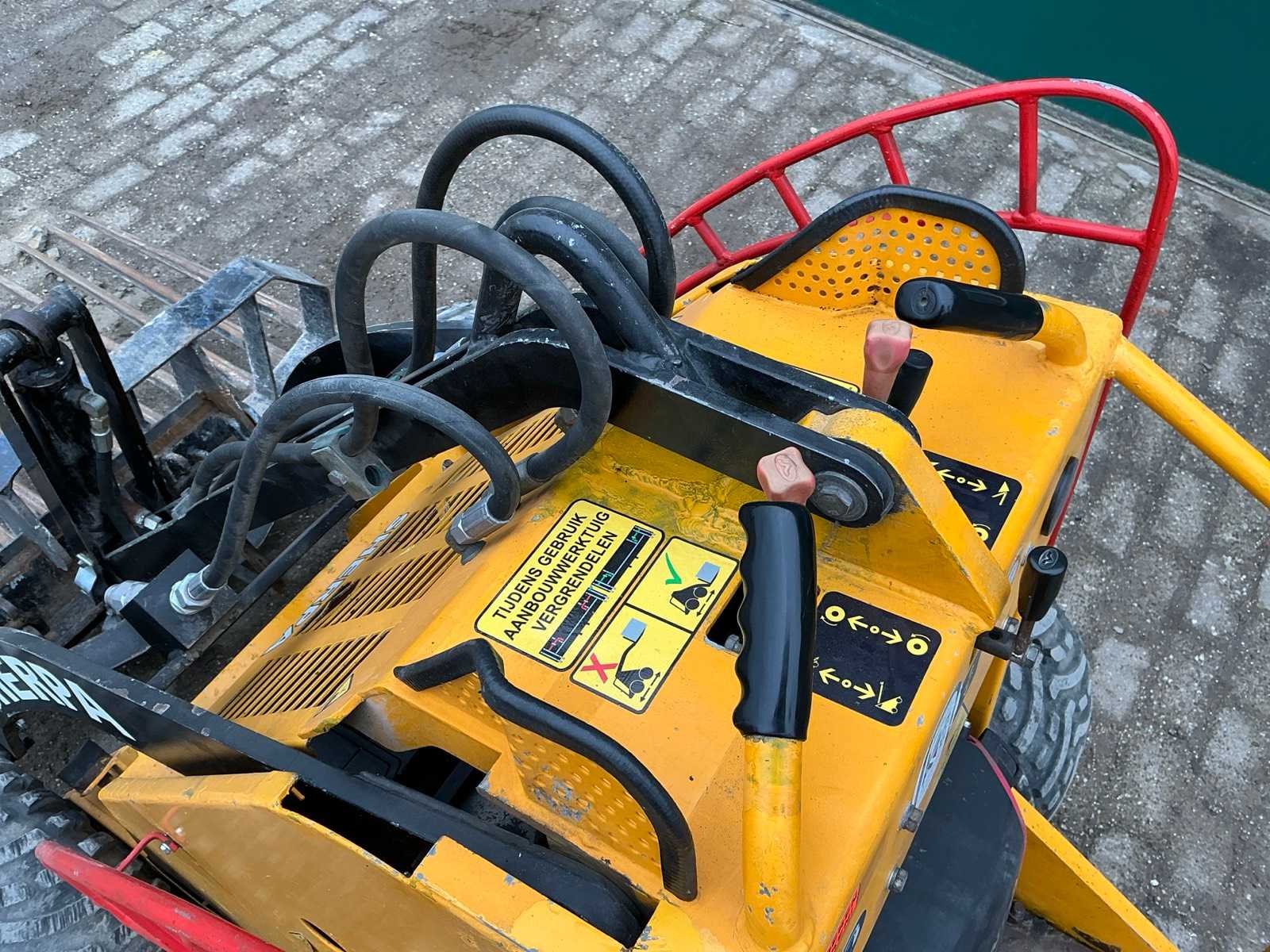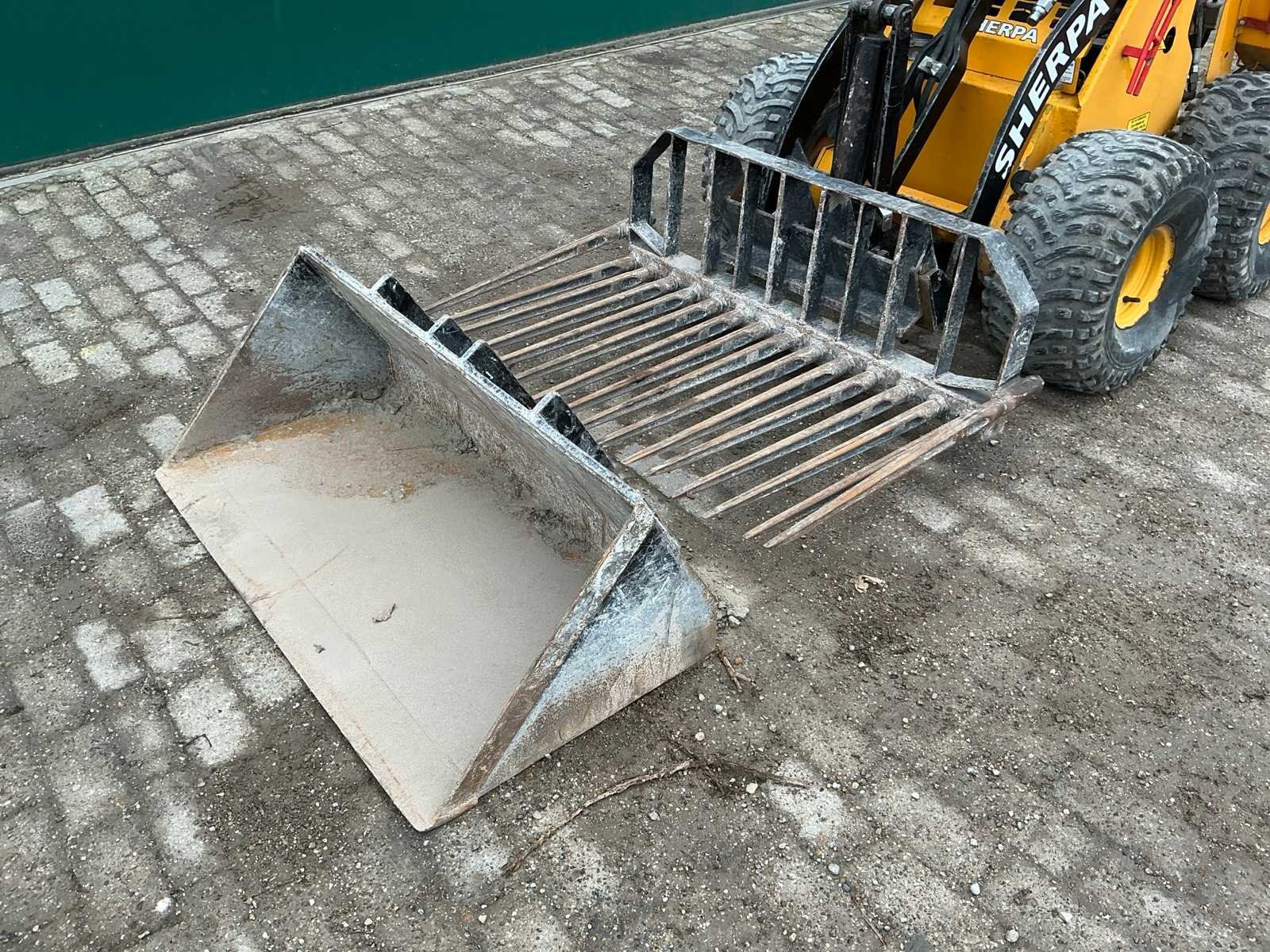 Voorzien: Honda GX630 viertakt 15,5kw benzinemotor met elektrische start, tegelriek, grondbak, luchtbanden, hydrauliekaansluiting. Nee Merk: Sherpa Type: 100 Bouwjaar: 2003 Serienummer: 01HA03004 Merk motor: Honda GX630 Motorvermogen (kW): 15.5kW Aantal cilinders: 2 Brandstof: Benzine Bandenmaat: 22 x 11.00 Graafbak afm. l: 550mm Graafbak afm. b: 1100mm Graafbak afm. h: 400mm Eigen gewicht: 640kg Totale afmeting L: 2400mm Totale afmeting Breedte: 1200mm Totale afmeting Hoogte: 1300mm