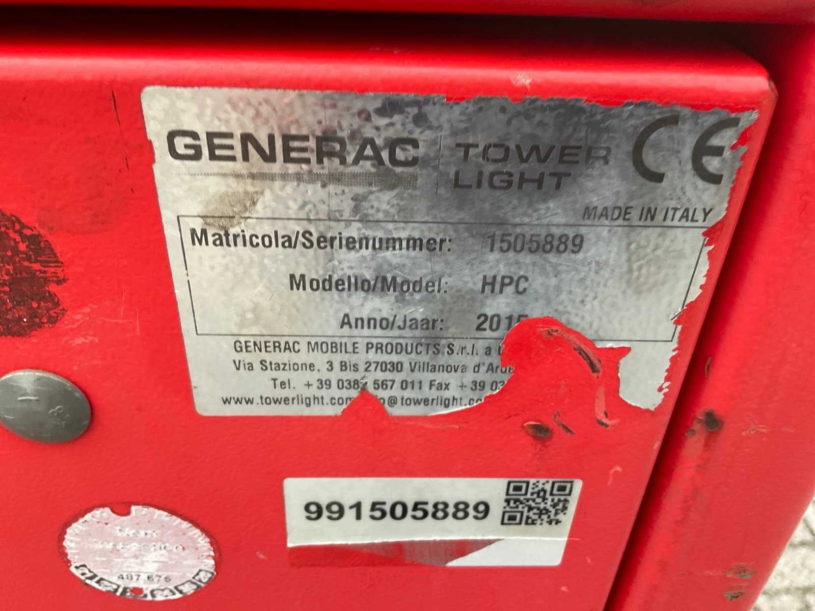 4 x ledlampen. Accu. Pakket werkt niet leeg Nee Merk: Tower light Type: Hpc Bouwjaar: 2015 Serienummer: 1505889 Diesel: true Aantal cilinders: 1 Afgelezen urenstand: 1400 Totale afmeting L: 1250mm Totale afmeting Breedte: 1250mm Totale afmeting Hoogte: 2500mm