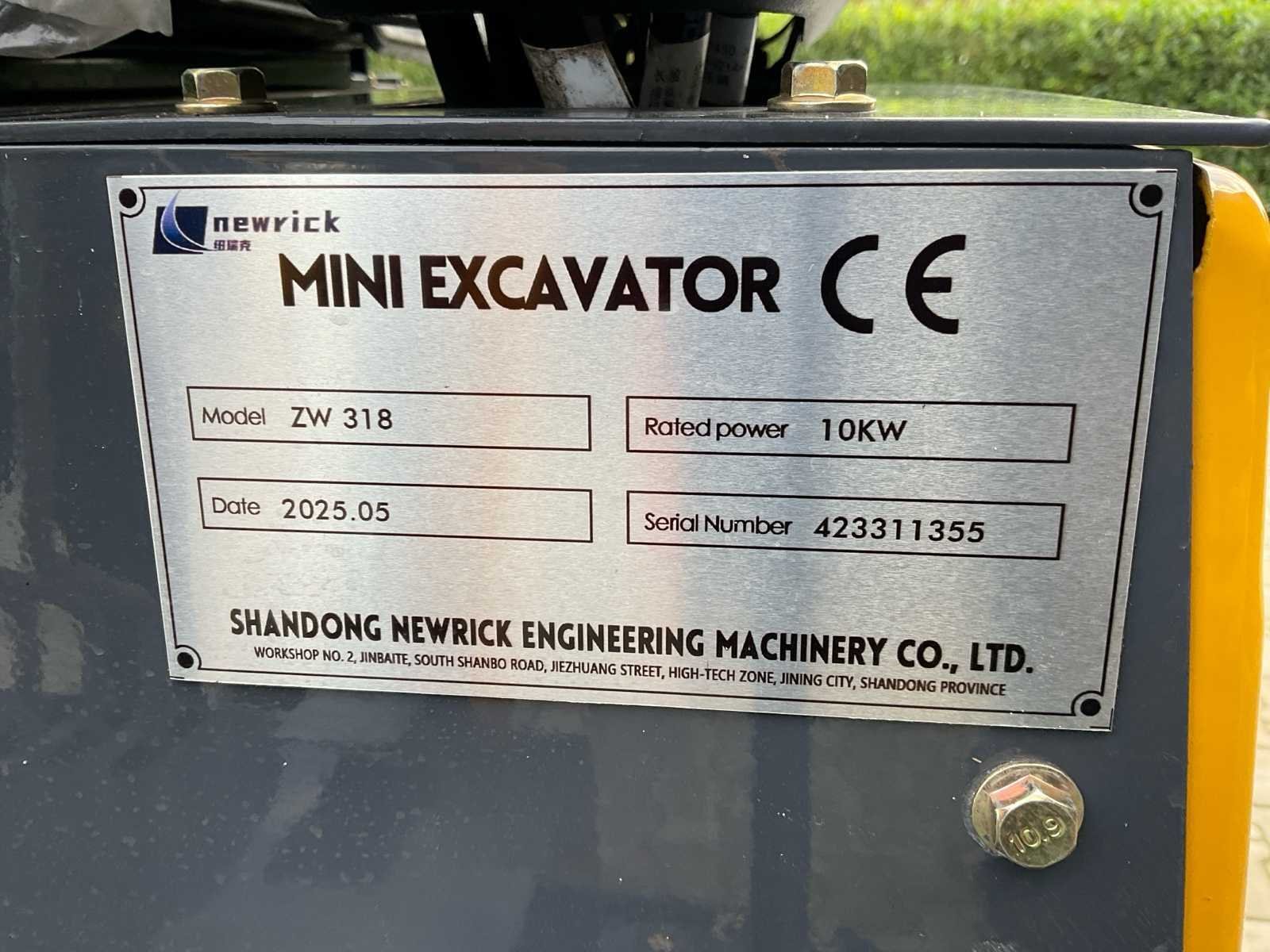 Voorzien van: zwenkgiek, hydraulische duim, graafbak, werkverlichting, zonnedak, Nee Merk: NewRick Type: ZW 318 Bouwjaar: 2025 Serienummer: 423311355 Merk motor: Briggs & Stratton Motorvermogen (kW): 10kW Aantal cilinders: 1 Brandstof: benzine Bedrijfsgewicht: 1800kg Inclusief graafbak: ja Graafbak afm. b: 400mm Rups breedte: 180mm Afgelezen urenstand: 1 Totale afmeting L: 2900mm Totale afmeting Breedte: 1110mm Totale afmeting Hoogte: 2240mm