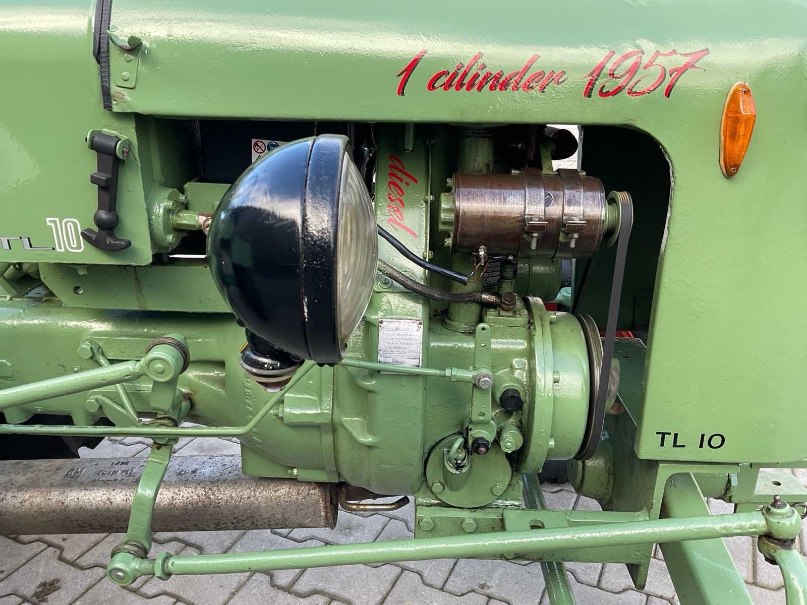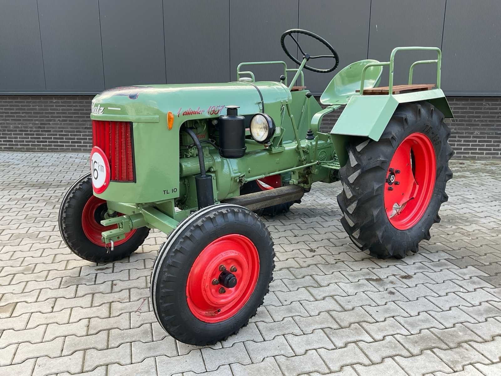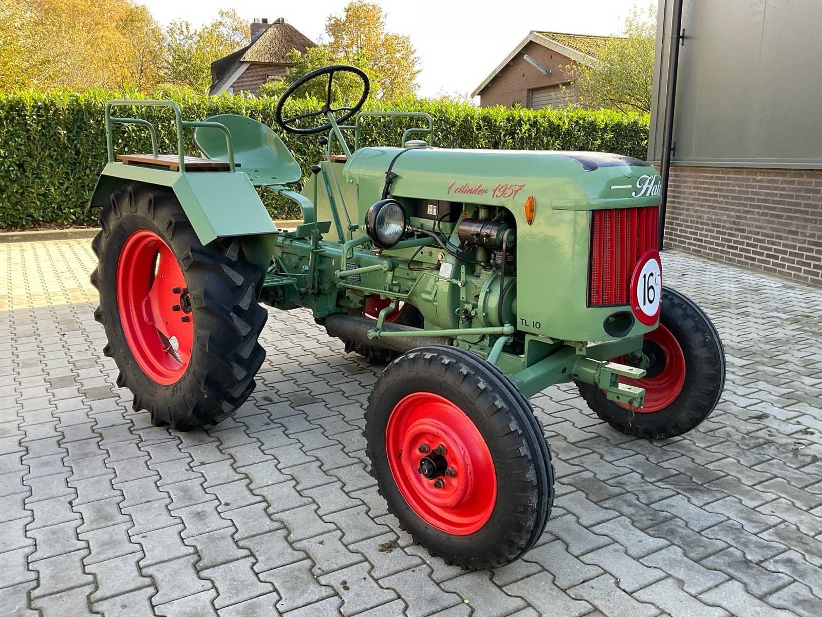 Voorzien van: 10 pk 1-cilinder Hatz motor, aftakas, K50 trekhaak, passagiers zitplaatsen op spatborden, boventrekhaak, recent gereviseerd (motorrevisie, nieuwe banden, nieuwe accu, lakwerk, gloeikop, Nee Merk: Hatz Type: TL10 Bouwjaar: 1957 Serienummer: TL10/2400 Kenteken: TPV18R Bandenmaat voor: BKT 5.00-15 Bandenmaat achter: BKT 11.2-24 Eigen gewicht: 835kg Totale afmeting L: 2620mm Totale afmeting Breedte: 1540mm Totale afmeting Hoogte: 1550mm Datum eerste toelating: 1957-06-30