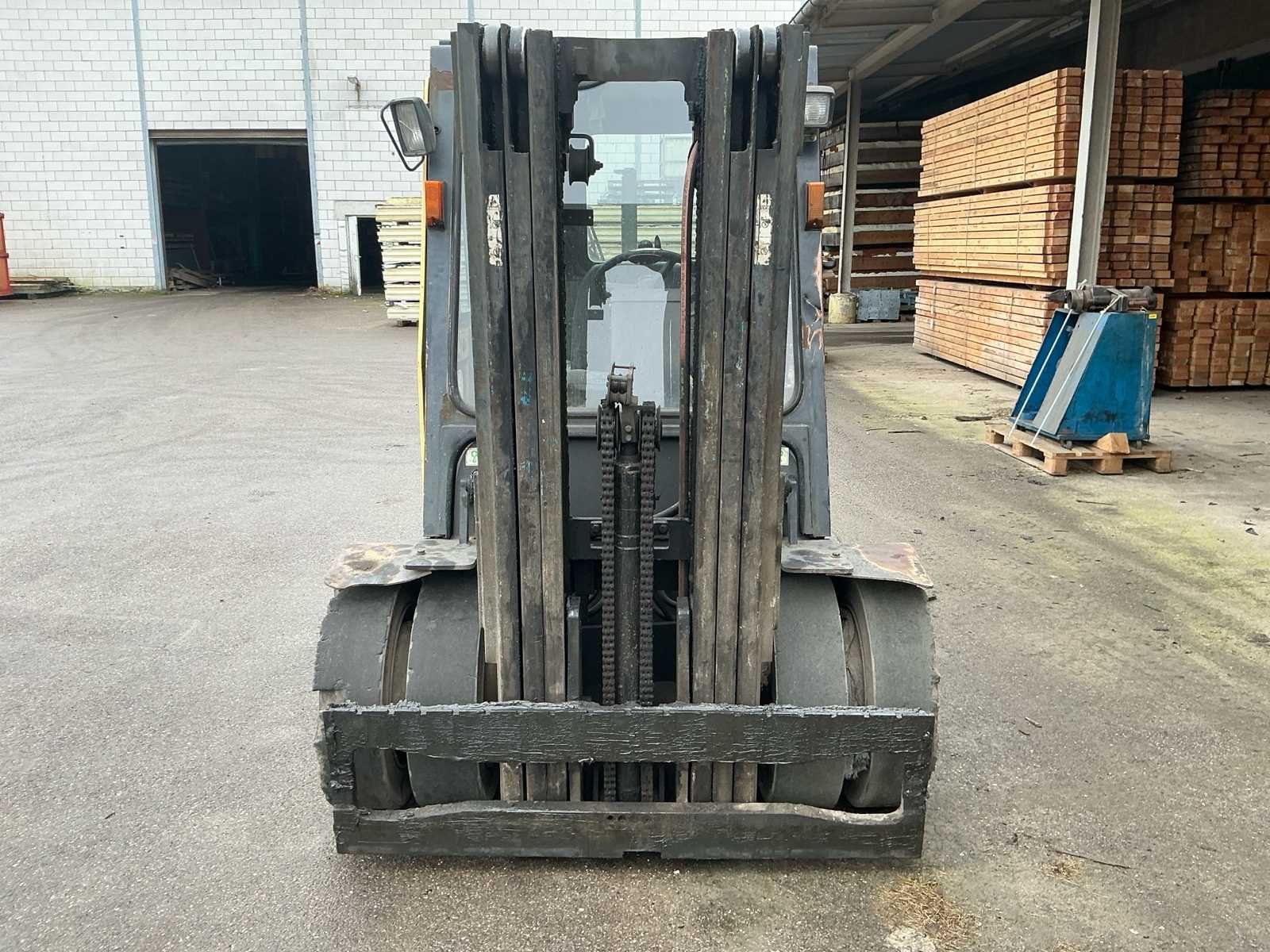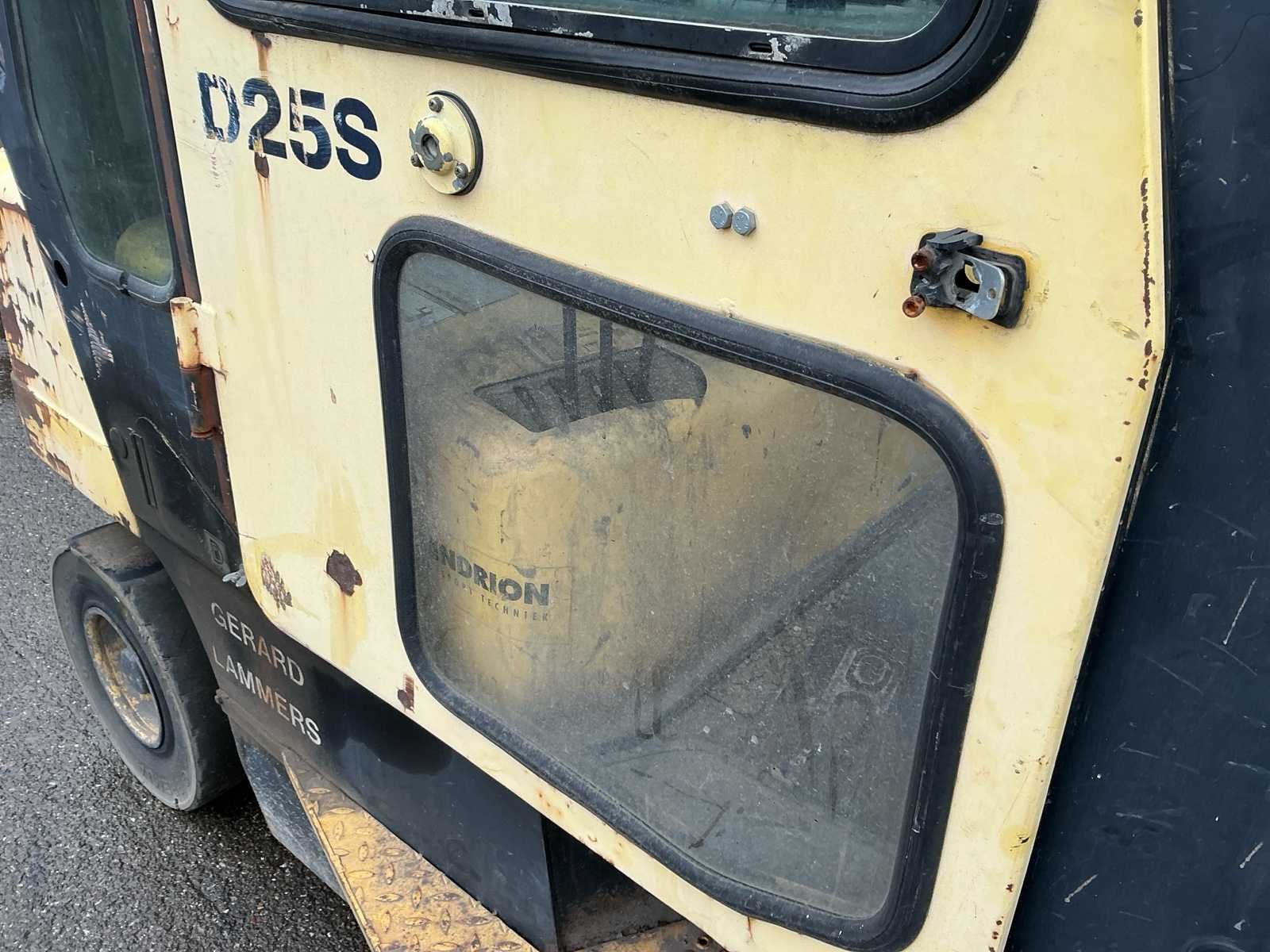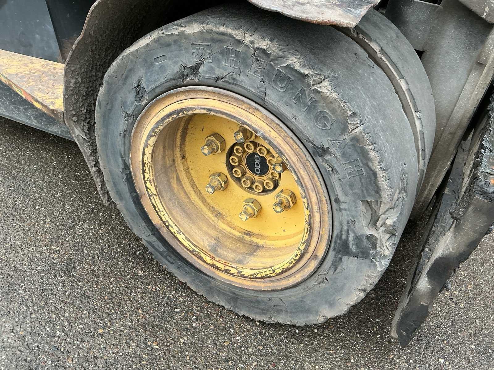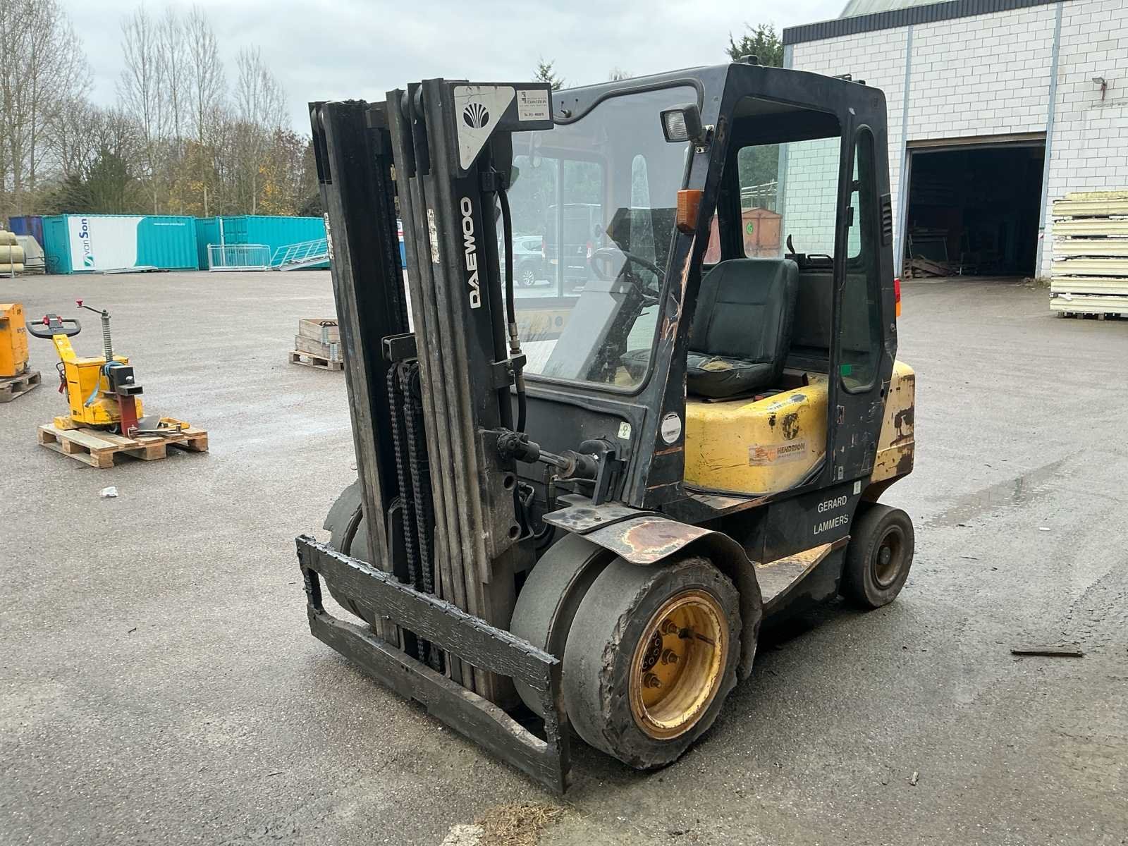 Nee Merk: Daewoo Type: D25S Serienummer: 90-01795 Brandstof: Diesel Mast: Triple Soort band: Volrubber Aantal wielen: 6 Afgelezen urenstand: 7785 Free-lift: true Triple mast: true Hefvermogen: 2500kg Max. hefhoogte: 4290mm Vol rubber banden: true Totale afmeting L: 2400mm Totale afmeting Breedte: 1600mm Totale afmeting Hoogte: 2150mm Diesel: true