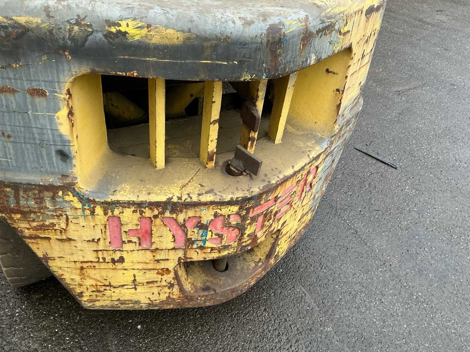 Nee Merk: Hyster Type: H3.00XL Bouwjaar: 1992 Serienummer: C177B12826N Brandstof: Lpg Mast: Duplex Soort band: Volrubber Aantal wielen: 4 Afgelezen urenstand: 4979 Duplex mast: true Eigen gewicht: 4640kg Hefvermogen: 2390kg Max. hefhoogte: 4150mm Vol rubber banden: true Totale afmeting L: 2630mm Totale afmeting Breedte: 1100mm Totale afmeting Hoogte: 2700mm LPG: true