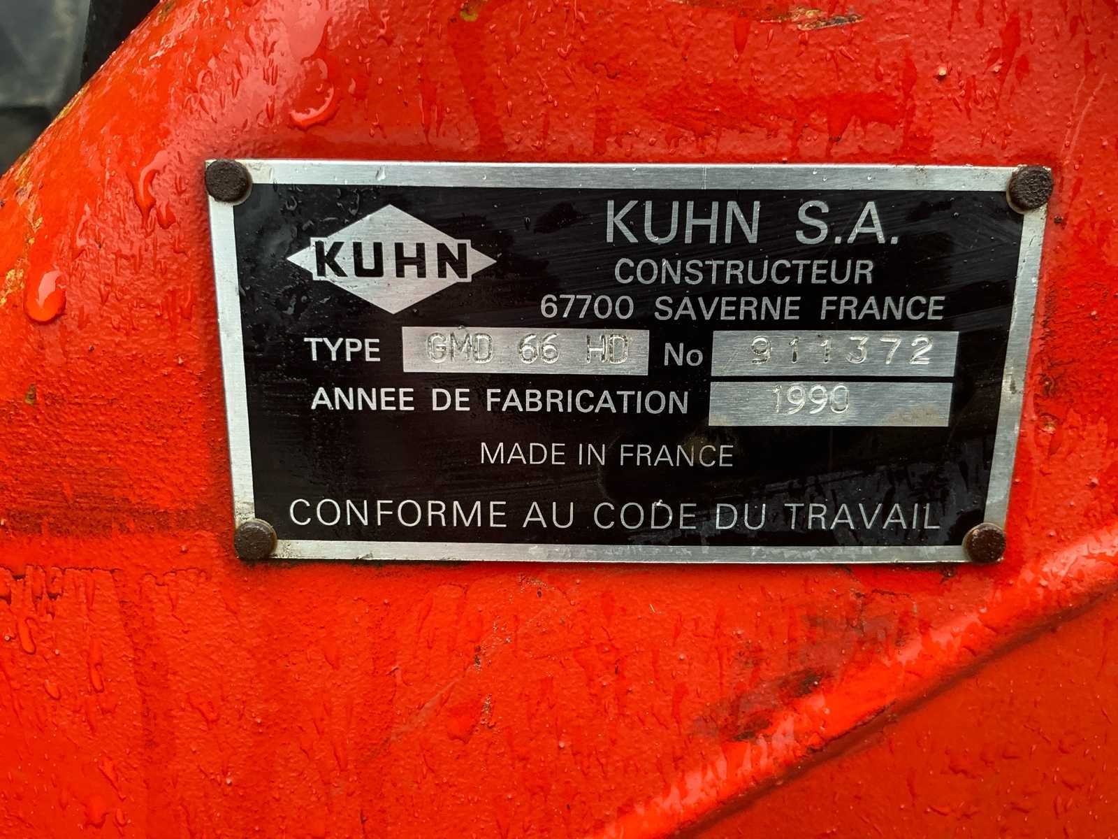 Hydraulisch opklapbaar, met aftakas. Nee Merk: Kuhn Type: GMD 66 HD Bouwjaar: 1990 Serienummer: 911372 Werkbreedte: 2100 Totale afmeting L: 3700mm Totale afmeting Breedte: 1100mm Totale afmeting Hoogte: 1300mm