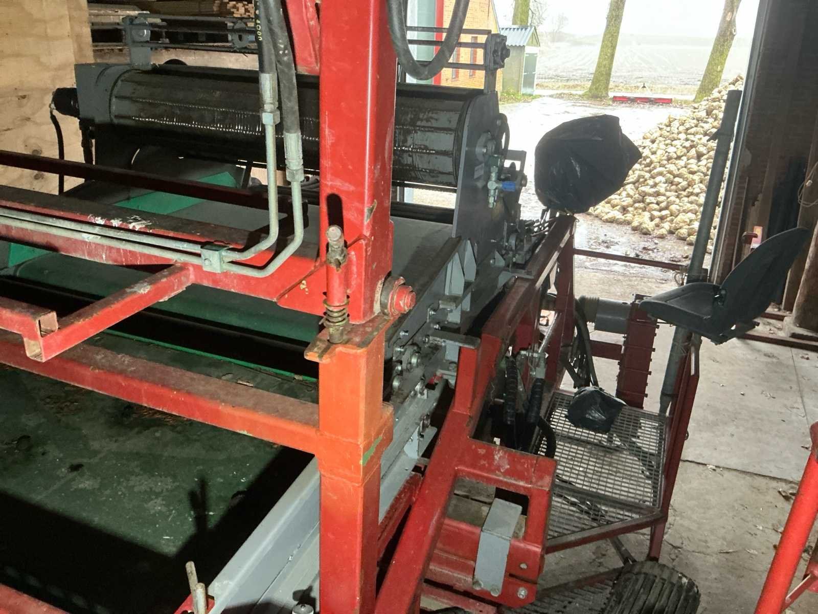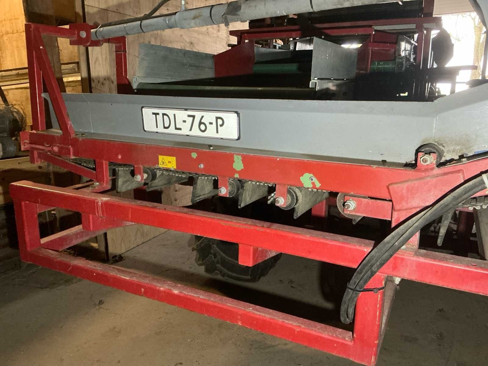 Voorzien van; 1 X hydraulisch aangedreven Wielmotor; 10 Hydromotoren; Enkelas;hydraulisch Gestuurd; Gestuurde as met automatische rechtstelling e; Reserve wielmat; Reserve borstel; snelheid rooimat automatisch gestuurd door rijsnelheid of handmatig; mechanische Vijzel; - In de tekst toevoegen achter Enkelas “hydraulisch uitschuifbaar” hydraulisch aangedreven elevator; Hydraulisch aangedreven netreiniging met borstel; Hydraulische vlakstelling en diepteregeling; Twee hydraulische pompen door aftakas aangedreven Nee Merk: H. Vlaming Type: P201028 Bouwjaar: 2010 Werkbreedte: 1500mm Spoorbreedte: 3250mm Totale afmeting L: 8500mm Totale afmeting Breedte: 3000mm Totale afmeting Hoogte: 3250mm