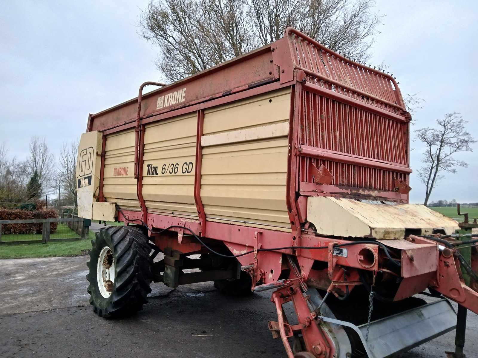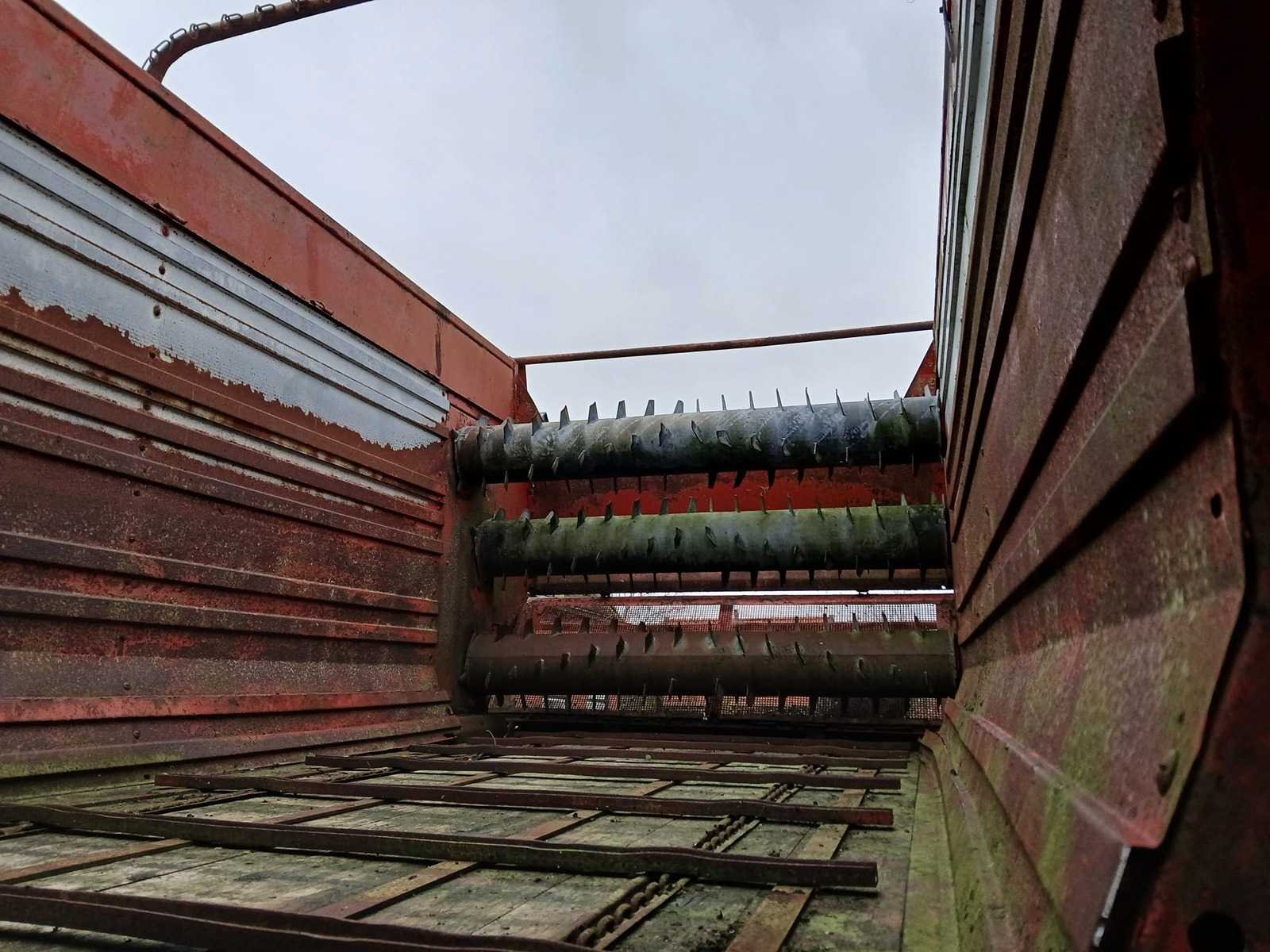 Voorzien van bodemketting; horizontale uitwerp/doseerwalsen ; tandemonderstel; bedieningskast.; pickup breedte 1500mm Nee Merk: Krone Type: Titan 6/36 GD Bouwjaar: 1990 Serienummer: T6/36305532 Met onderstel: true Bandenmaat: 500/50-17 Maximaal aantal messen: 36 Verdeelwals: true
