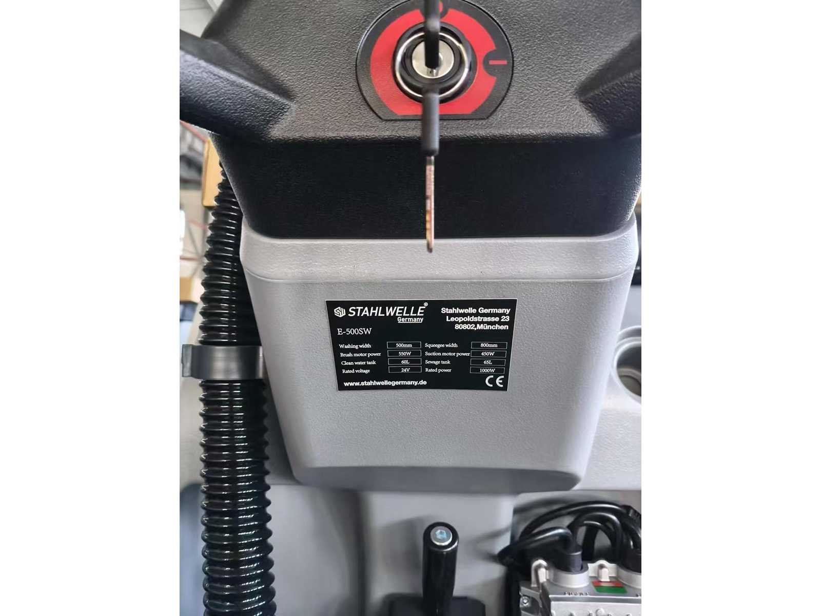 Voorzien van: De Stahlwelle E-500SW schrobzuigmachine heeft een schrobbreedte van 500 mm, een zuigmond van 800 mm, een borstelmotor van 550 W, een zuigmotor van 450 W, een totaalvermogen van 1000 W, een schoonwatertank van 60 liter, een vuilwatertank van 65 liter en werkt op een 24V-accusysteem. Nee Merk: STÄHLWELLE Type: Germany E-500SW Bouwjaar: 2024 Vermogen: 1000W Zakloos: true Nat/droog zuiger: true