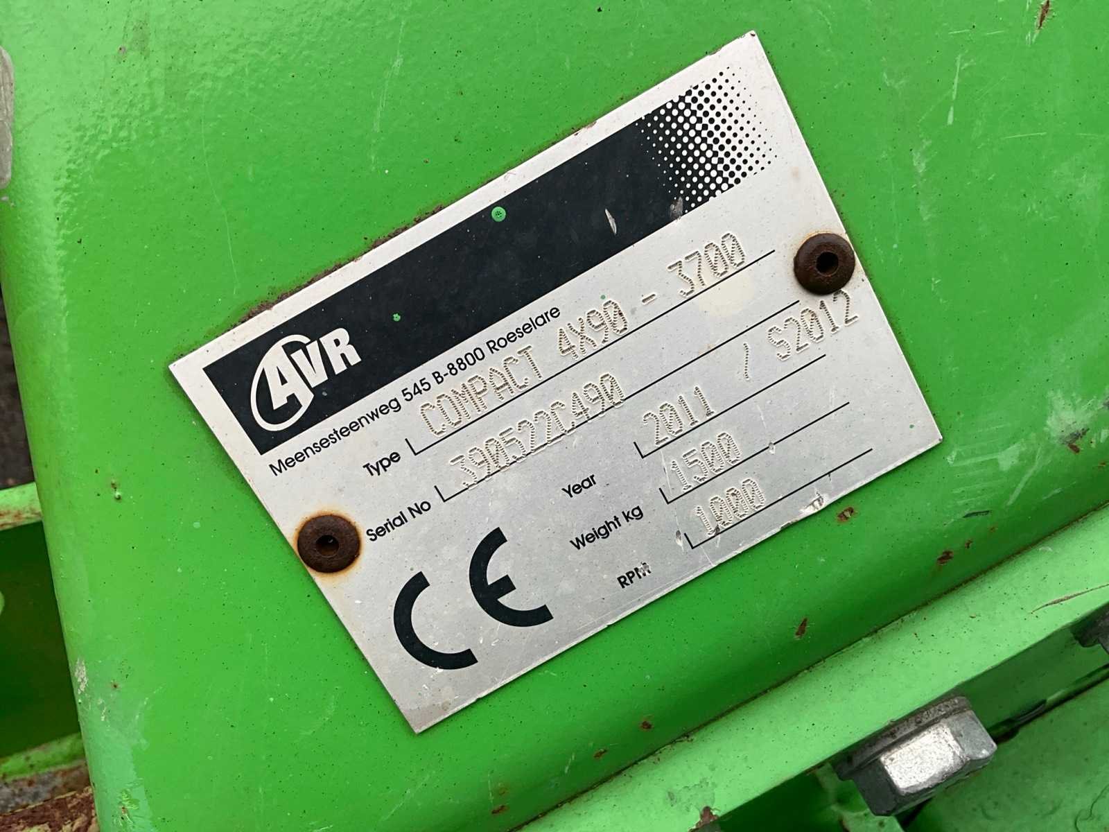 Voorzien van nieuwe Wiedia haken Benodigd PTO snelheid 1000 rpm; Nee Merk: AVR Type: Compact 4x90 - 3700 Bouwjaar: 2011 Serienummer: 390522C490 Werkbreedte: 3700mm Eigen gewicht: 1500kg Totale afmeting L: 3900mm