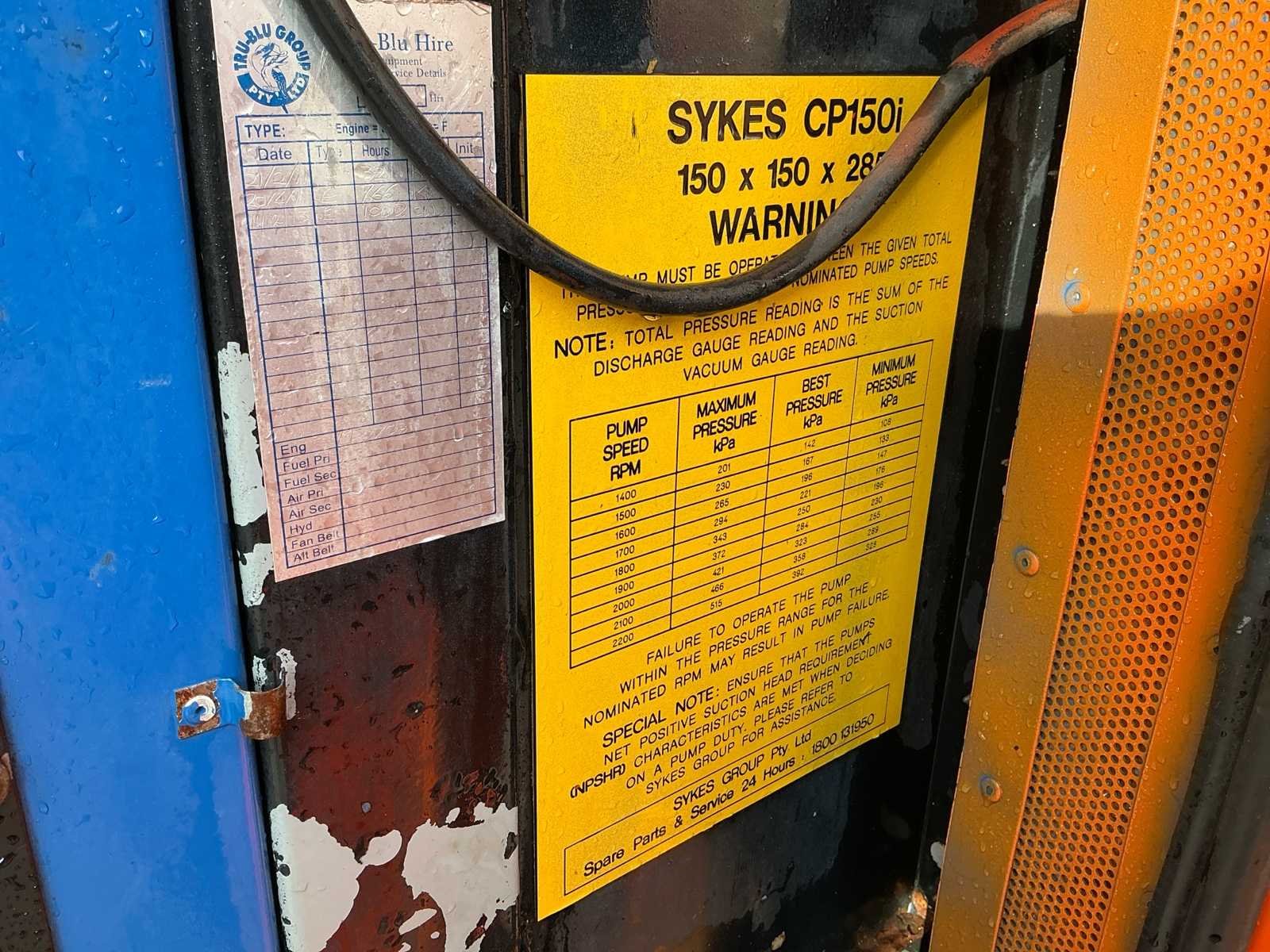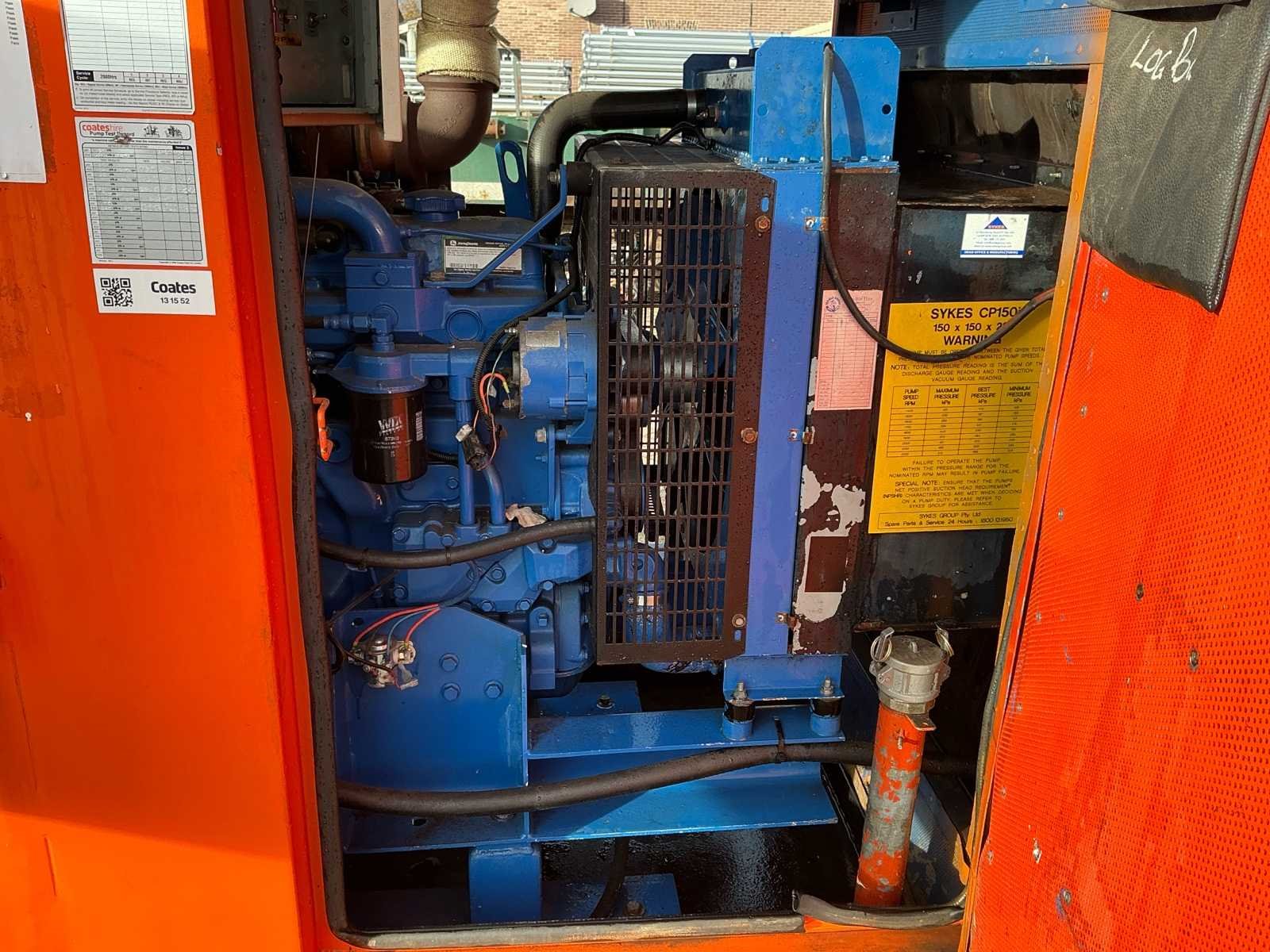 Voorzien van; John Deere CD404500, 4 cilinder diesel, Sykes pomp, geluids dichte behuizing, Nee Merk: Sykes Type: CP150i Bouwjaar: 2009 Serienummer: 0921975-1 Totale afmeting L: 3200mm Totale afmeting Breedte: 1100mm Totale afmeting Hoogte: 1900mm
