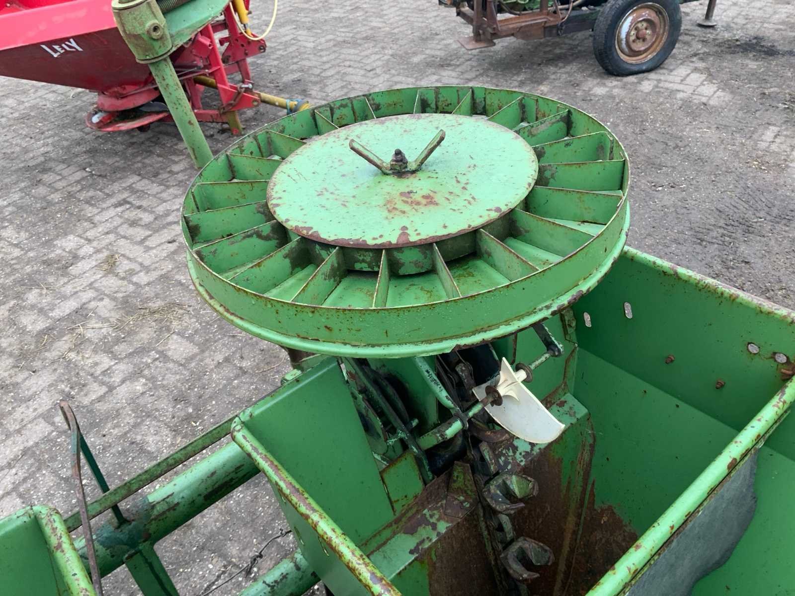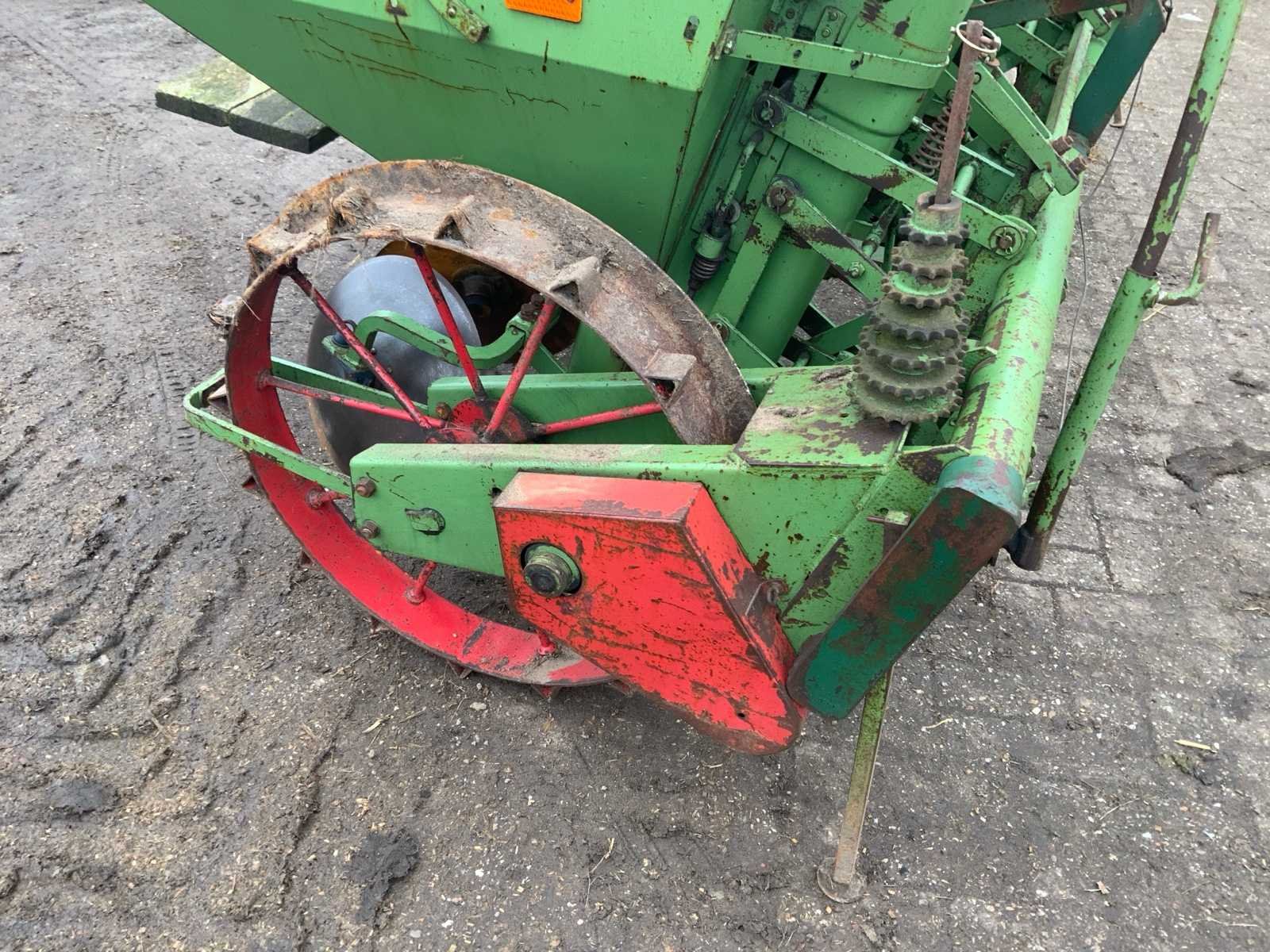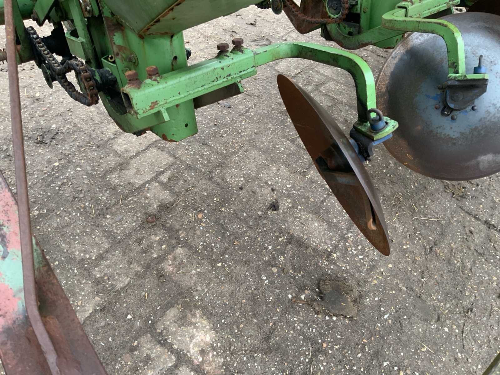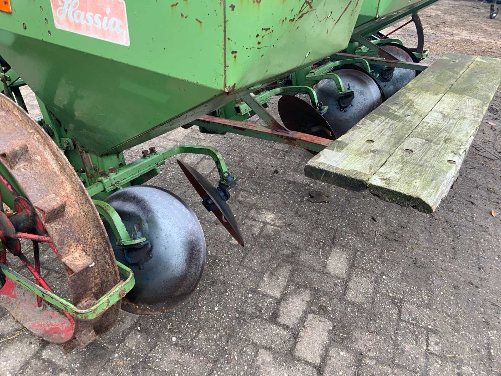 Aantal rijen 4 Rijafstand ca. 70–75 cm (instelbaar) Werkbreedte ca. 3,0 meter Aandrijving Mechanisch via landwiel met kettingoverbrenging Zaaisysteem Mechanische doseerschijven (per rij-unit instelbaar) Zaaitankinhoud per rij ±75 kilo Bouwjaar Circa jaren 1970-1980 Er ontbreekt 1 schijf Nee Merk: Hassia Werkbreedte: 3000mm Aantal rijen: 4 Rijenafstand: 750mm Totale afmeting L: 3400mm Totale afmeting Breedte: 2350mm Totale afmeting Hoogte: 1500mm